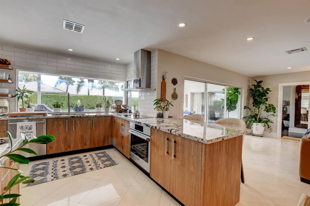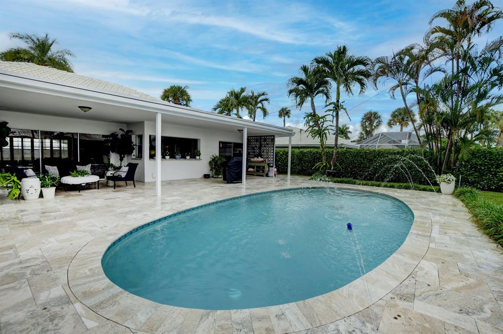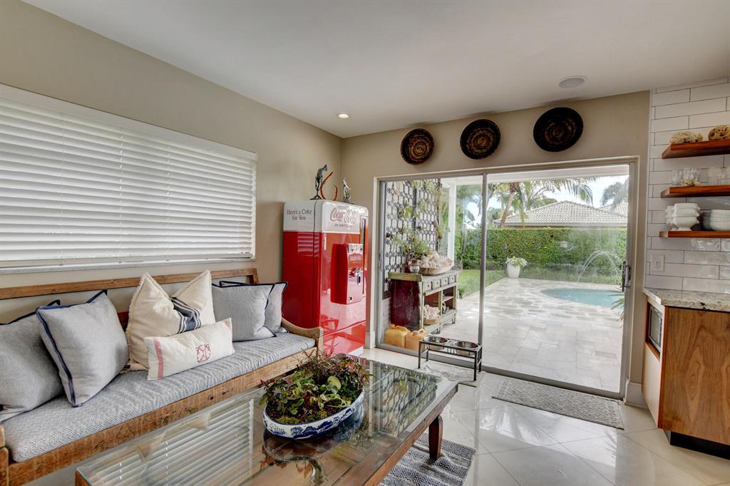 Immaculate single family home in the highly sought after community of Camino Gardens. Home boasts 2 bedrooms and 2 full baths PLUS a den that can be easily converted to 3rd bedroom, 1 car garage and space to park 2 cars on the paver driveway, hurricane panel shutters on all windows and security front doors. Light filled interior with view of east facing beautifully landscaped back yard with travertine pavers on pool deck and sitting area as well as custom pool lighting and indoor/outdoor speaker system. Gorgeous custom walnut kitchen and bar that is open to living room for an open concept feel. All ages and pets welcome. Home is located 2 miles to the ocean and 2 miles to downtown Boca, Mizner Park and tons of restaurants and cultural activities.