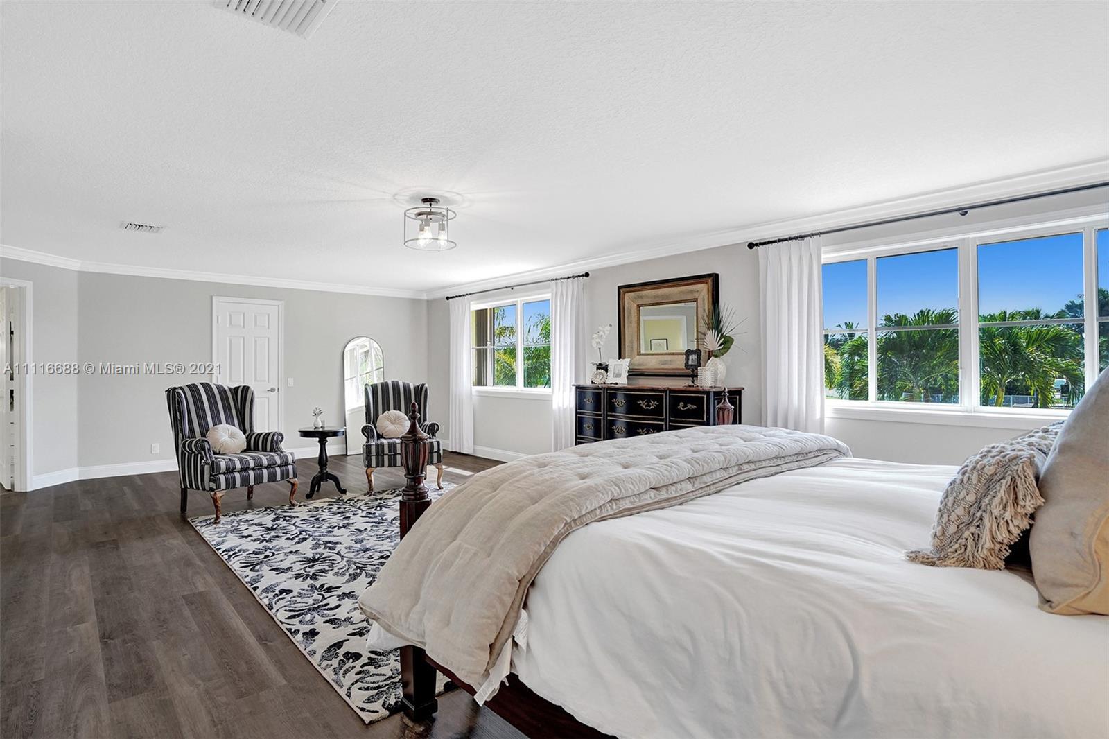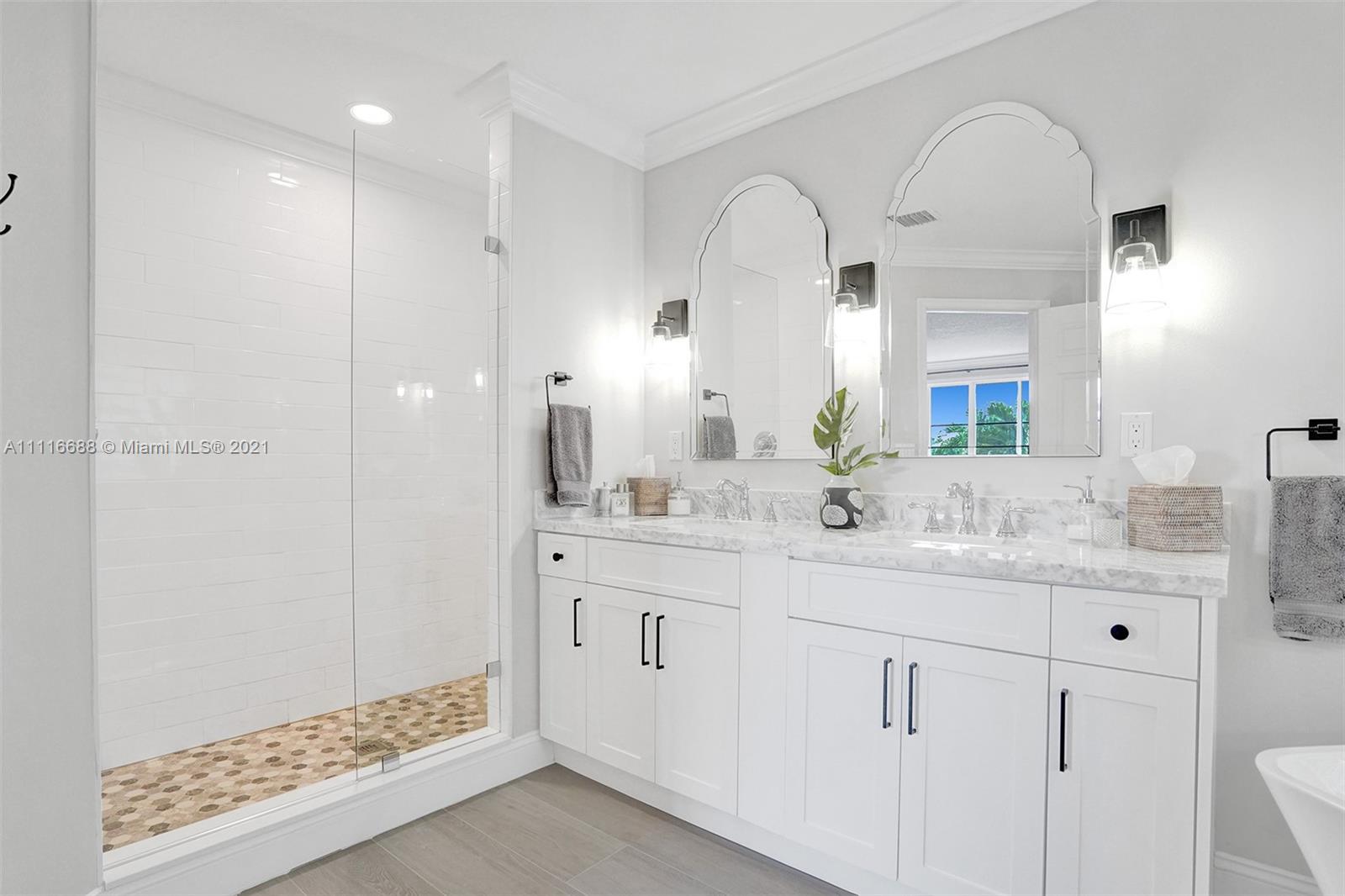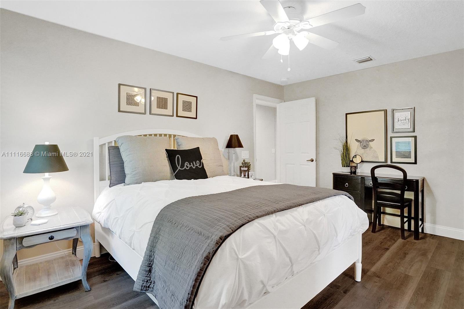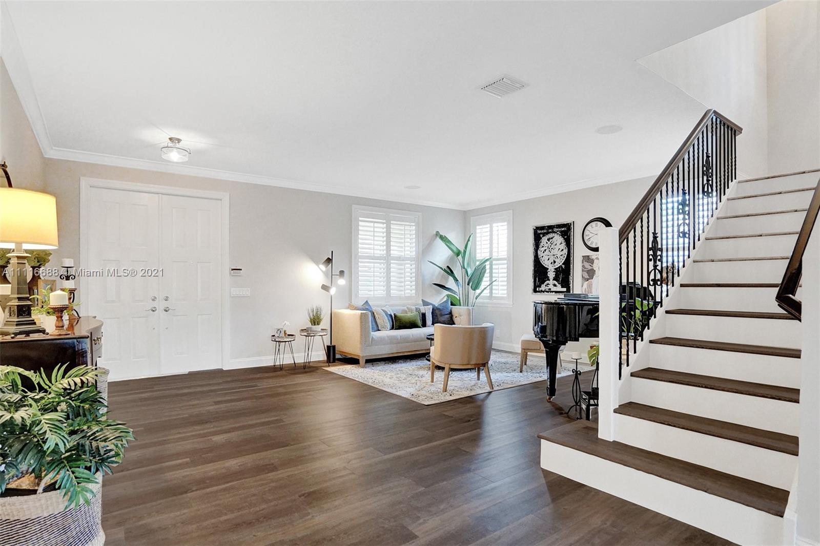 RENOVATIONS GALORE IN THIS SPACIOUS HOME. ENJOY YOUR SOUTHERN EXPOSURE FROM YOUR PRIVATE FULLY FENCED TROPICAL LANDSCAPED WATER LOT WITH A HEATED POOL/SPA. EXPANSIVE PAVER PATIO WITH OVERHANG. MODEL CONDITION HOME RIGHT OUT OF HGTV. NEW FLOORING THROUGHOUT THE ENTIRE HOUSE. WHITE KITCHEN WITH QUARTZ COUNTERTOPS, STAINLESS STEEL APPLIANCES, CENTER ISLAND, AND MORE. EXTENSIVE CROWN MOLDINGS, FULL BED/BATH FIRST LEVEL. OVERSIZED MASTER BEDROOM WITH NEW OWNER'S BATH, COMPLETE WITH VESSEL TUB, CUSTOM WHITE CABINETS, MARBLE COUNTERTOPS AND GRAND SHOWER. CUSTOM LIGHT FIXTURES, PLANTATION SHUTTERS, WALK TO COMMUNITY PARK AND SOCCER FIELD.