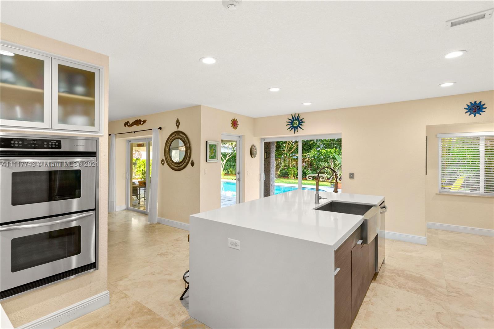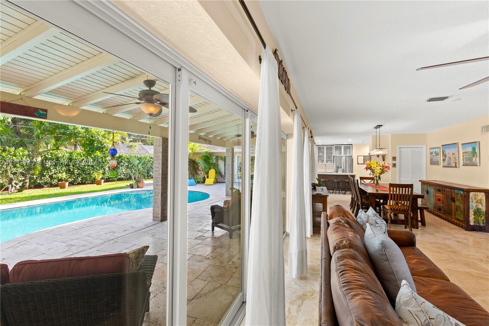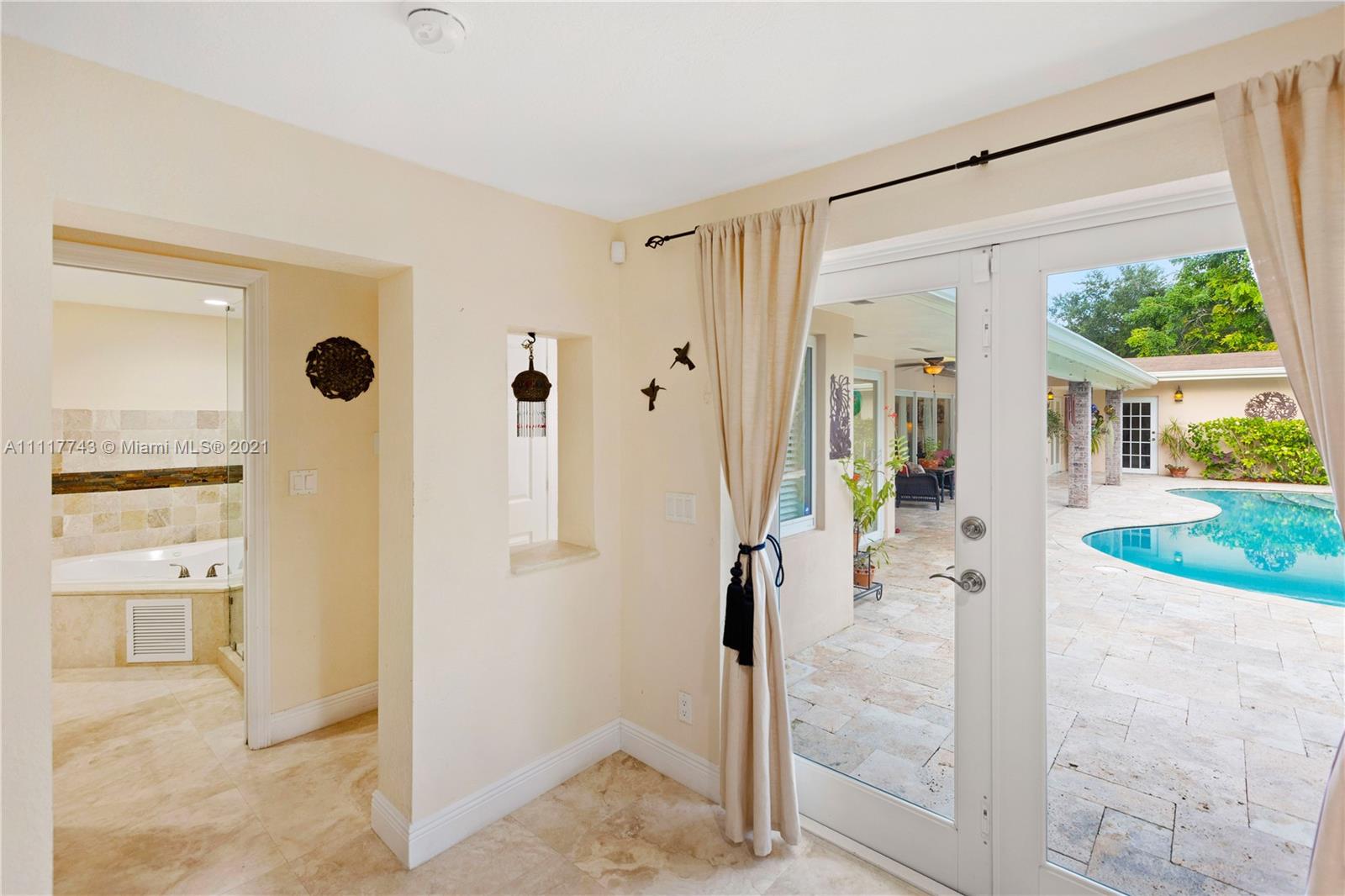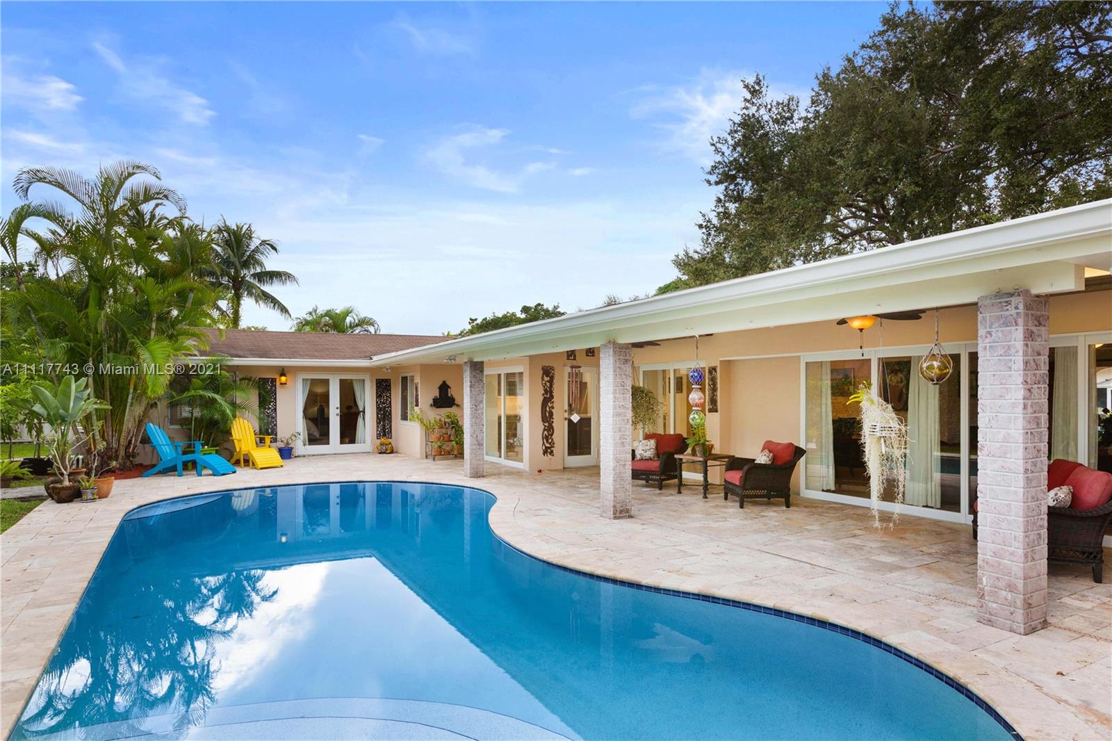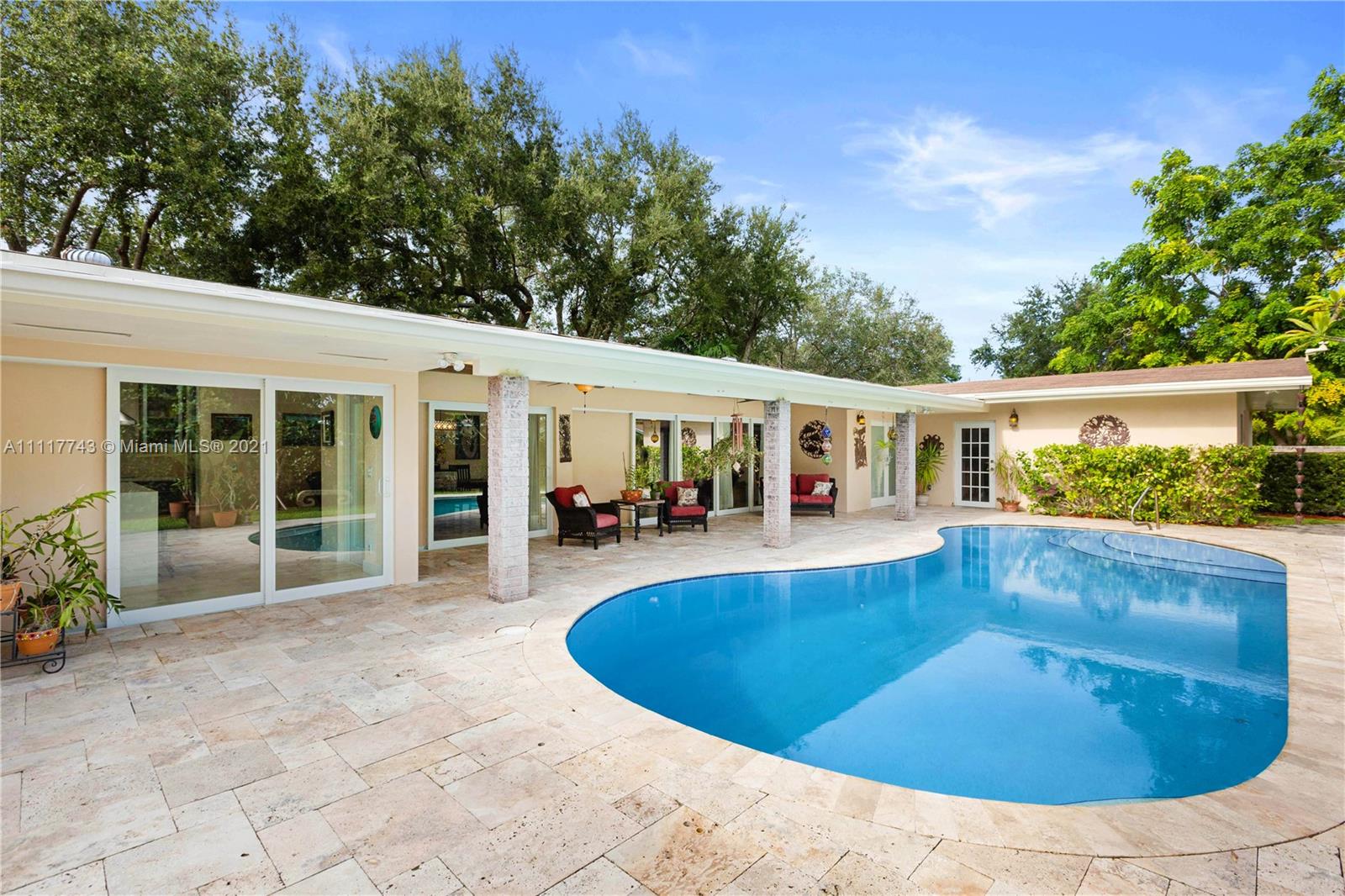 Spacious Pinecrest Retreat. 4-bedroom, 2.5 bath plus 1-1, guesthouse, built around a beautiful pool, patio and garden. Updated electrical and plumbing, travertine floors, impact windows and doors, and tremendous closet space throughout. This home offers beautiful spaces with relaxing natural light throughout. Large master bedroom suite overlooking the pool, updated kitchen with quartz countertops. Fabulous living and dining spaces with enormous sliding glass pocket doors that make the pool and living areas one. Gated with a two car garage, and plenty of room for a boat, RV, or both. This could easily be your forever home.