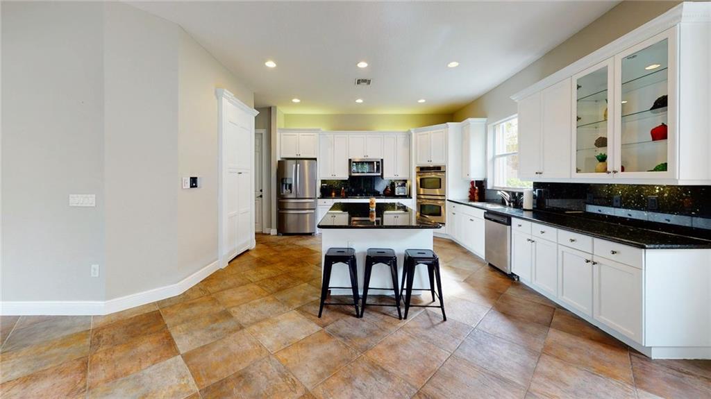 Large and well taken care gem in the Sunset Falls. It is move-in ready with a great backyard to enjoy a day by the pool. 3 Garage spaces and driveway parking. Master bedroom has 3 closets with a separate one for your shoes. This beautiful house has all you need to live confortable each bedroom has a bathroom closely. The kitchen has stylish stainless steel apliances with a double oven. Open concept to a large family room that communicates to a covered screened patio with access to the pool. Perfect for entertaining and enjoying good company. One bedroom and full bathroom in the ground floor.