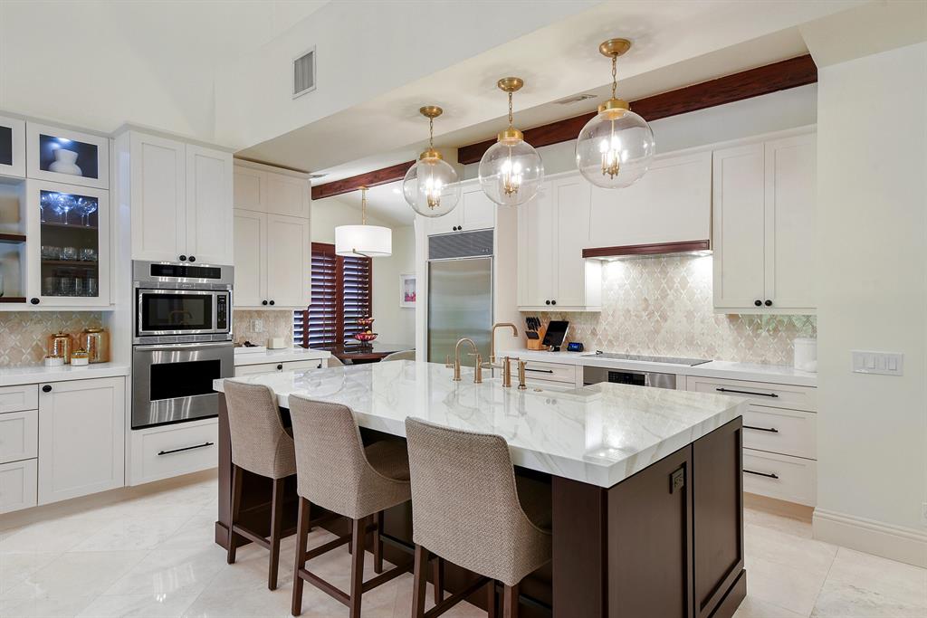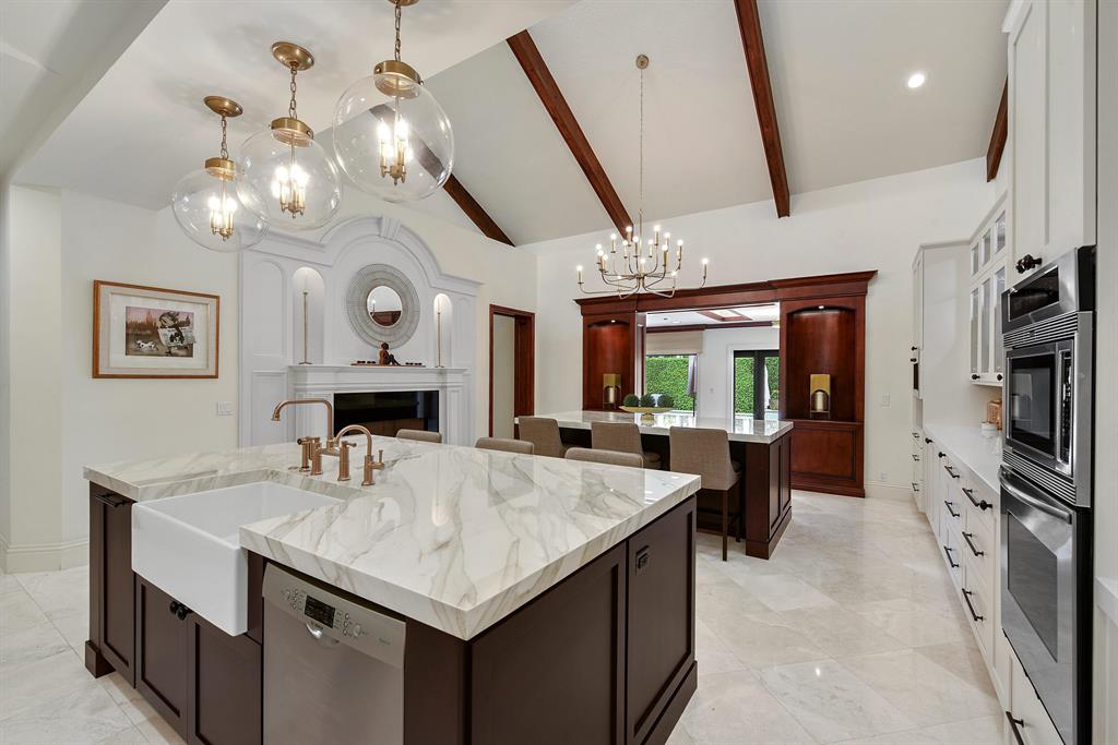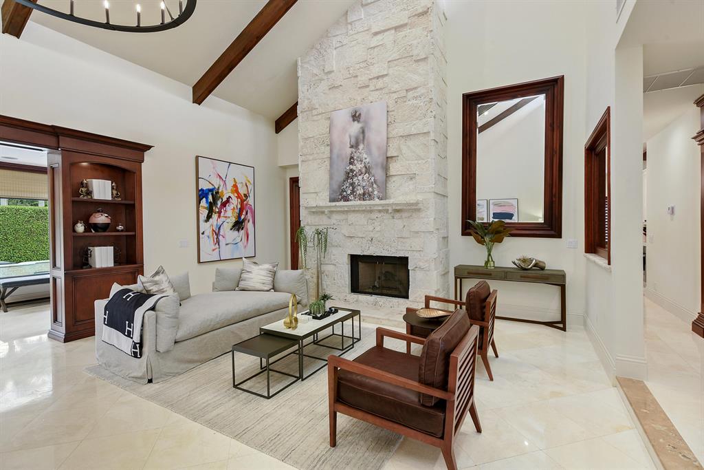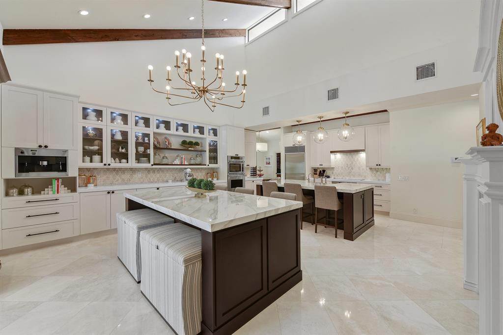 This magnificent designer-appointed 4 BR/5.5 Bath estate boasts the finest appointments, making this move in ready, classically styled, contemporary pool home, perfect for all tastes. The residence features a beautifully paneled theatre/media rm. w/ stadium seating, remodeled gourmet kitchen w/ large double islands, high end stainless steel appliances, custom cabinetry and casual dining spaces. The inviting formal living rm w/ soaring ceilings & beautiful natural wood built ins, decorative wood ceiling beams & classic natural coral fireplace is ideal for entertaining or family gatherings.. The Florida room provides space for 2 offices w/ panoramic views. The sizeable master bedroom suite features wood floors, tasteful floor-to-ceiling built-ins, custom designed, spacious closets, & shared