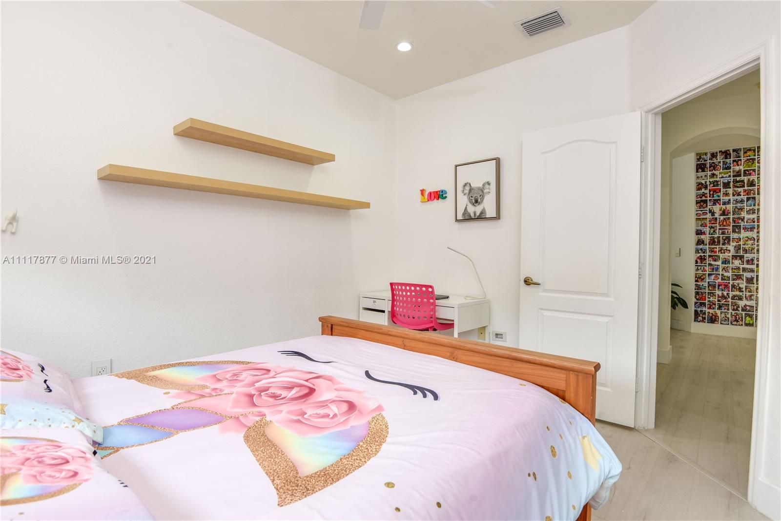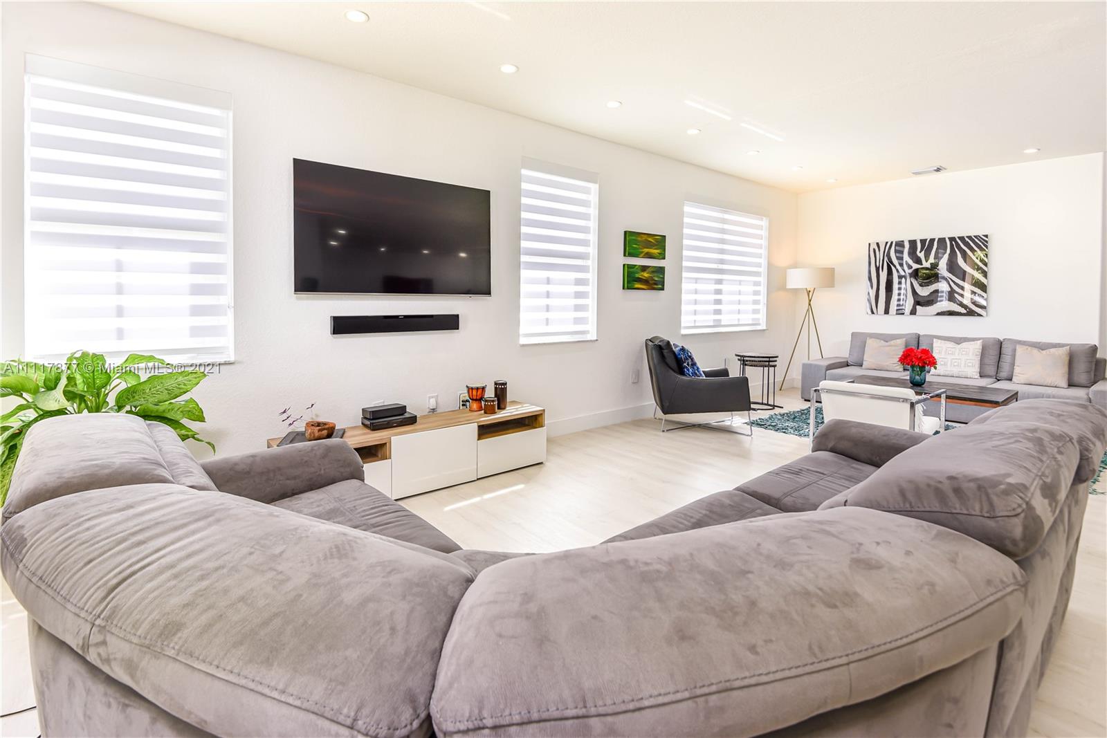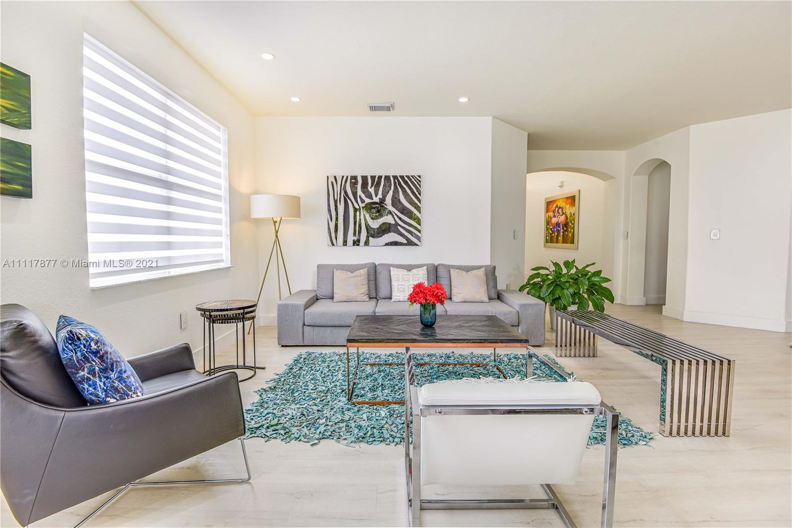 No other House like this one. Click on the Video. Very Desirable One Story Totally upgraded, Open concept, Single Family Home in Doral. Move-in ready. Huge lot with almost 7,000 Sq Ft perfect for a pool and entertainment. Very private home with Doral Legacy Park on the back. 4 Beds, 3 Full Baths, 2 Car Garage + 2 spaces on the driveway with an electric car station. Gourmet Kitchen with a big island, quartz countertop, black SS appliances with separate glass stove and oven, waterproof laminated floor in living area, bedrooms and kitchen, porcelain floor on the bathrooms. Custom-made closets in all the bedrooms, almost new Air Conditioner. High hat led lights in all the house. Front-loaded washer and dryer. Buyer has to pay $ 2,600 for Association Resale Capital Contribution at Closing.
