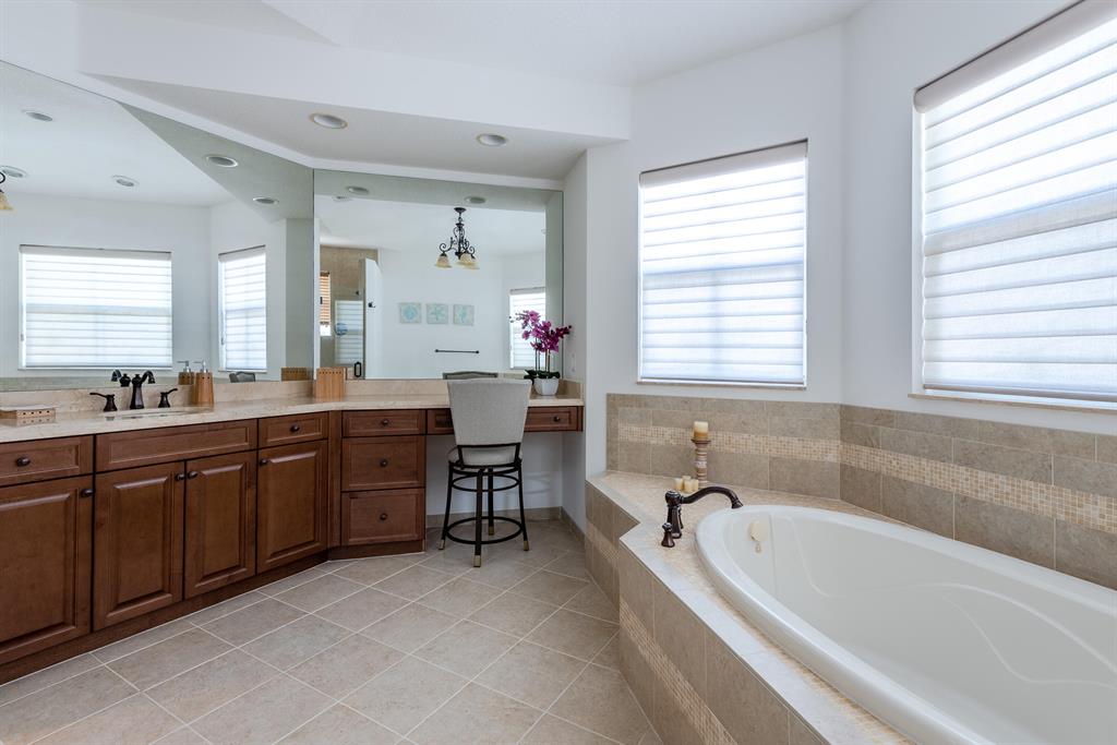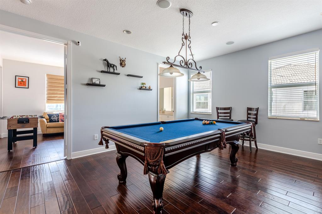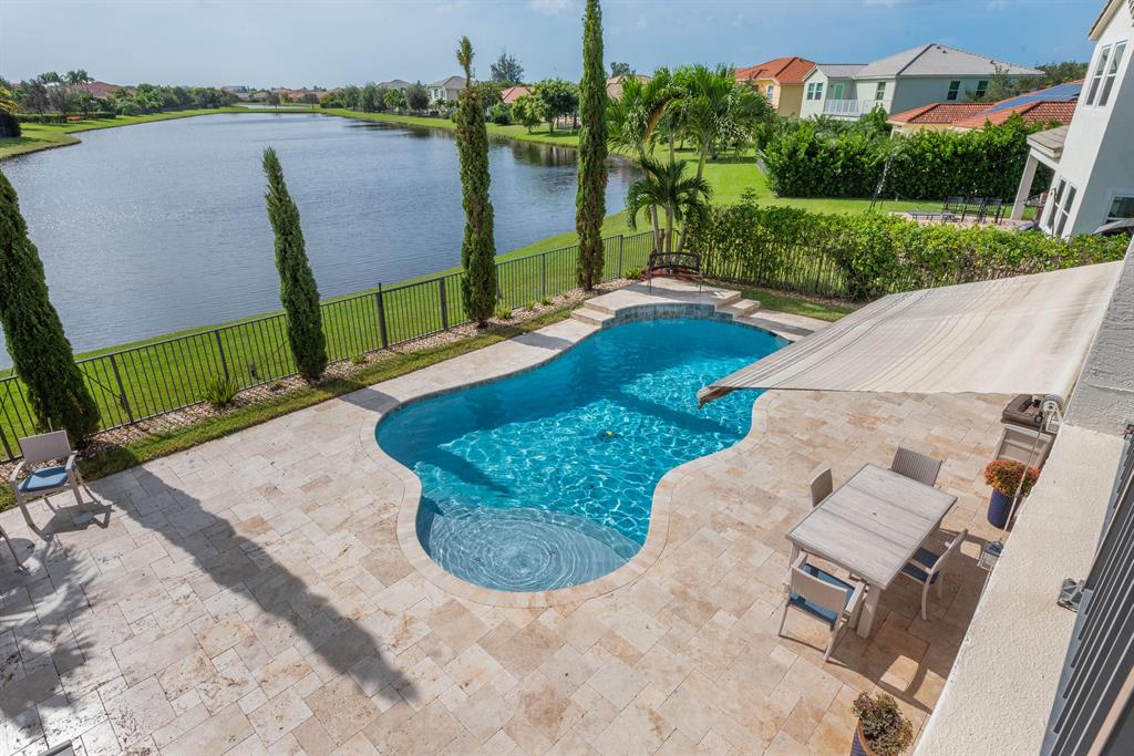 LARGEST MODEL IN PORTOSOL!!This is one of a kind home sitting on a large lake view with a beautiful pool and cabana bathroom, ready to entertain all your family and guest. This home features over 300k in upgrades. Impact windows, Wi-Fi surround sound system throughout the house & patio, crown molding, Inlays title downstairs & Engineered hardwood floors upstairs, coffered & cathedral ceilings, panoramic view, butler's pantry, custom murphy bed and much more! The open concept gourmet Kitchen features granite countertops, lighted stone backsplash, double oven, stainless steel appliances & a walk-in pantry! . This immaculate home has 5 bedrooms and 5.5 bathrooms, with a huge entertaining family room with a bar area upstairs that can be easily converted into a 6th. bedroom. The