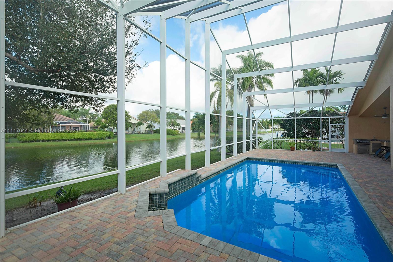 This impeccable 6 bed 4 bath home is one of only 50 custom estates in Brookside Grove & is perfectly placed on a spacious 15,000 sqft waterfront lot w/ large paver driveway & 3 car garage. The front entry is lushly landscaped & leads you to your double door entry. Once you enter your greeted by the captivating pool, waterview & vaulted ceilings & natural light. Split floor plan. The south side of the home features, owners suite & en-suite bath, 6th Bedroom, Cabana bath & huge laundry room. Main living area is open & airy w/ a spacious family room, formal dining, large kitchen that is overlooking the breakfast nook & family room all with incredible views of the water. Paver pool deck w/ screen enclosure. Outdoor Shower. Summer Kitchen. 3 ACs. Low HOA. Walkable to schools, parks & more!