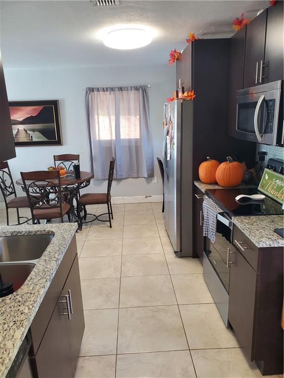 BEAUTIFULLY UPDATED 3 BEDROOM 2 BATH HOME WITH UPGRADED KITCHEN WITH STAINLESS STEEL APPLIANCES, GRANITE COUNTERTOPS, BATHROOMS UPDATED, TILE THRU OUT. LARGE STORAGE ROOM IN THE BACK. HUGE PRIVATELY FENCED YARD, NEW ROOF REPLACED A FEW YEARS AGO. CLOSE TO SHOPPING, SCHOOLS TRANSPORTATION AND HIGHWAYS. NO HOA NO RESTRICTIONS!! FHA AND VA FINANCING OK. SELLER WILL LEAVE TRAMPOLINE IF BUYER HAS KIDS AND WANT TO KEEP IT.