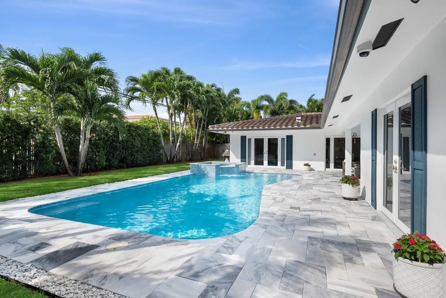 Stunning and meticulously maintained Coral Ridge Country Club residence located on a quiet street. No stone has been unturned. 3 bedrooms, 2 baths, pool, 2 car garage, split floorplan. Covered outside lanai allows for enjoying the newly remodeled, sparkling pool and spa. Bright, cheerful and elegant kitchen opens up to the dining area. Built in shelving in family room. Inside laundry room. French doors to the outside pool area from all living areas, master bedroom and guest room. Cabana bath to the outside. Impact windows and doors. Roof 2009. Lush, professional landscaping surrounds entire property.