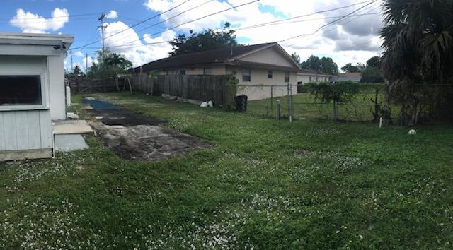 Over a 1/4 acre lot! 3 bedroom 2 bath home with covered patio conveniently located near shopping, restaurants and the Palm Beach International airport. Covered parking and a big driveway that runs the entire frontage of the property giving you plenty of room for an RV and a Boat or 10 cars. Truly a car and truck Lover's dream. Completely update with tile flooring in all house. New kitchen, new roof 2017, A/C and water heater 2016, new stainless steel appliances 2020. The third bedroom and second bath has an outside entrance and it could be used as a rental if you wish. Huge back yard. Measures are estimated and all information deemed reliable but not garanteed.