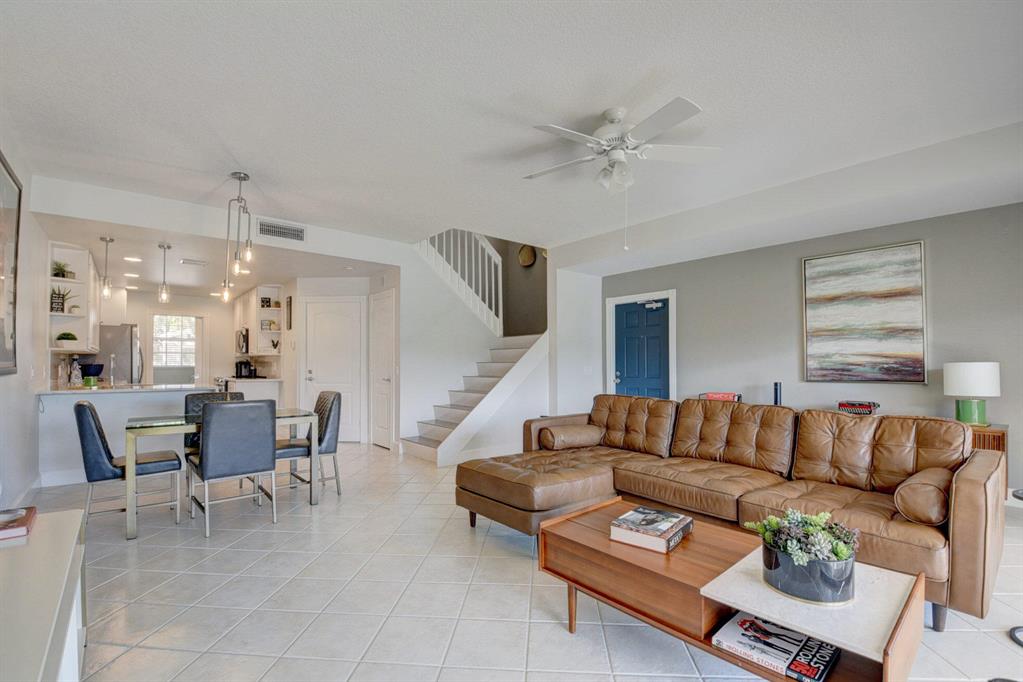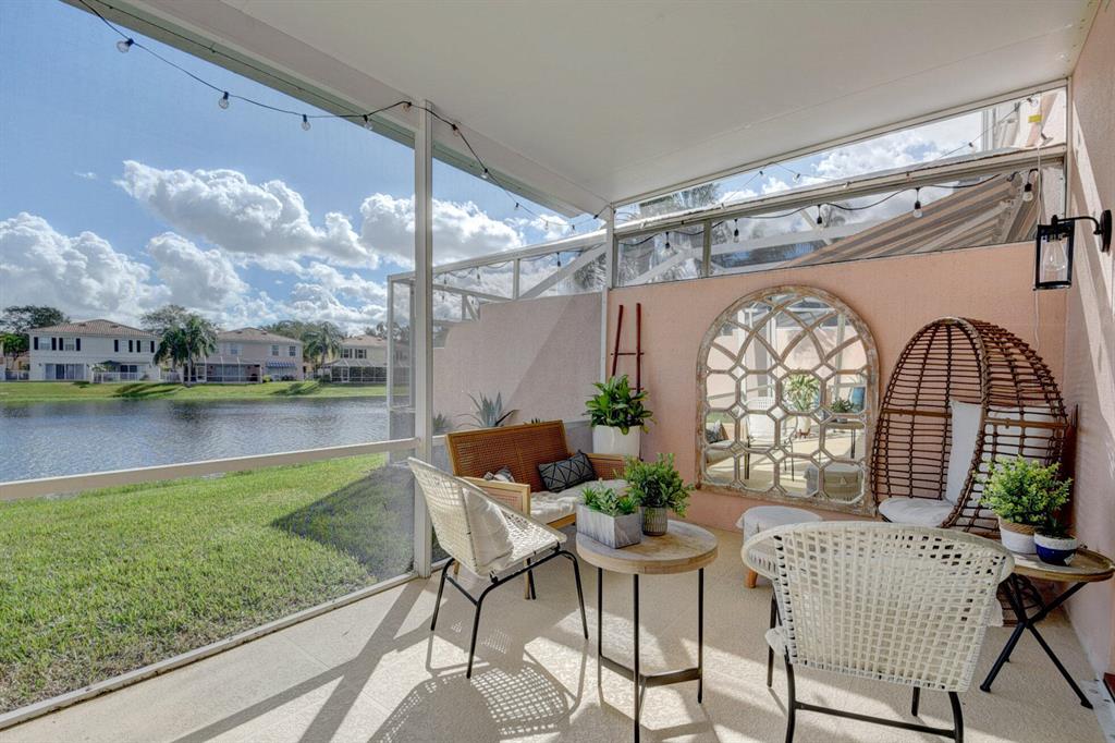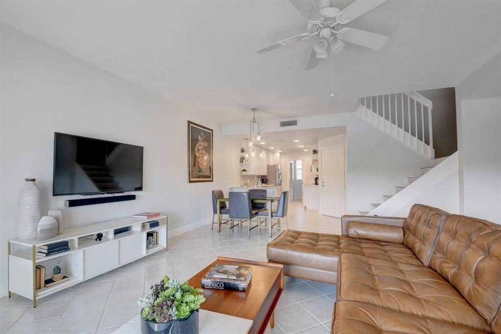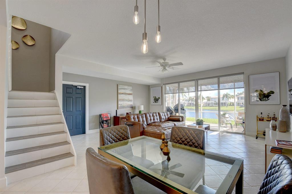 Spectacular lake views and Florida sunshine await you in this beautifully renovated 3 bedroom, 2.5 bath townhome, equipped with 1 car garage nestled in the resort style community of Riverwalk. Meticulously maintained by the owner, this open floor plan features knock down ceilings (no popcorn), new interior paint, neutral ceramic tile downstairs with new wood plank tile floors on staircase and throughout the entire 2nd floor. Stunning new kitchen with 42'' cabinets, sparkling Quartz counter tops, extended Quartz backsplash, stainless steel appliances, pendant lighting and more! Owners designed a unique walk-in wine room off the kitchen with custom tile and built-in shelving. 1st floor also boasts separate laundry room with tons of storage and laundry sink, and downstairs powder room.