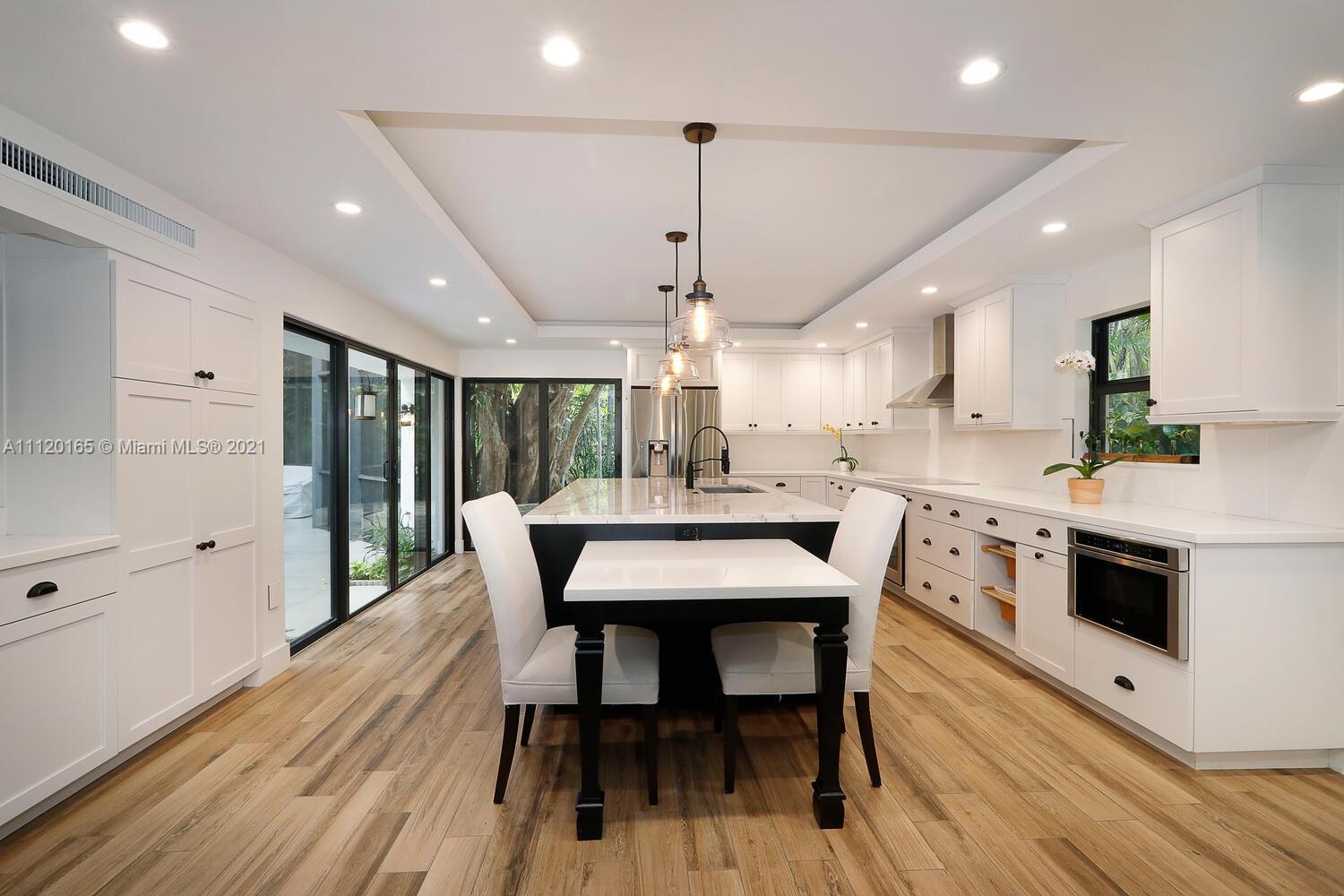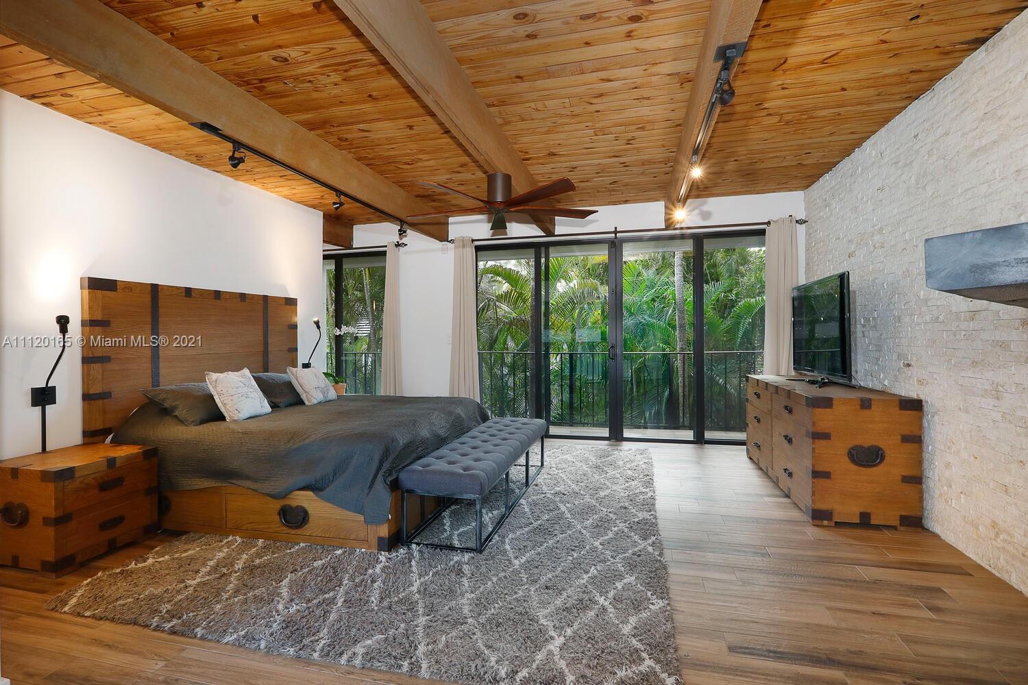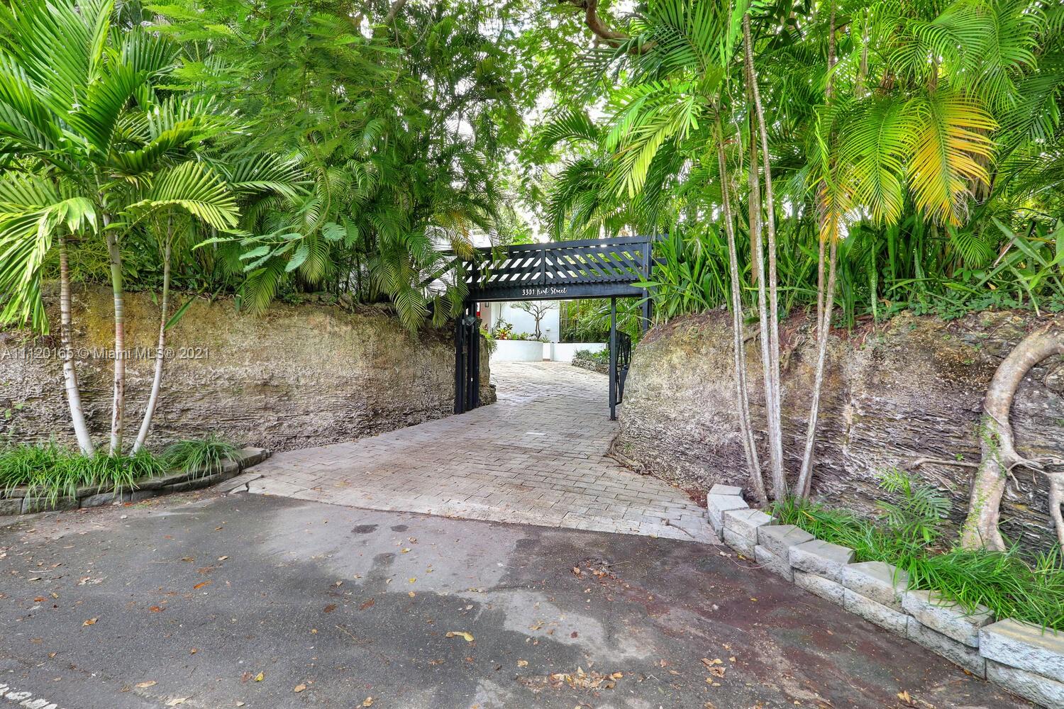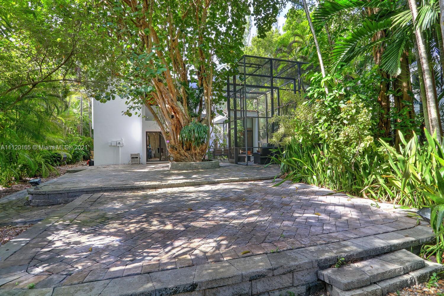 Unique modern-style home designed by the renowned architect, Hernando Acosta. Surrounded by lush tropical garden & set high on the Silver Bluff Ridge (22 ft. above sea level). The impressive, gated entry is framed w/massive coral rock formations & opens to a bricked motor court. Light-filled interior spaces w/ high, wood-beamed ceilings overlook the expansive double-height screened terrace for year-round outdoor living & entertaining. New custom kitchen (2017) features lacquered wood cabinetry, quartz countertops, high-end appliances & large center island. Recent updates: 2 new HVAC systems, water heater, wood-plank style porcelain tile flooring, updated bath & impact glass throughout the home. Additional features: fireplace, wine cellar & 2CG. Walk to bayfront parks & the Grove village.