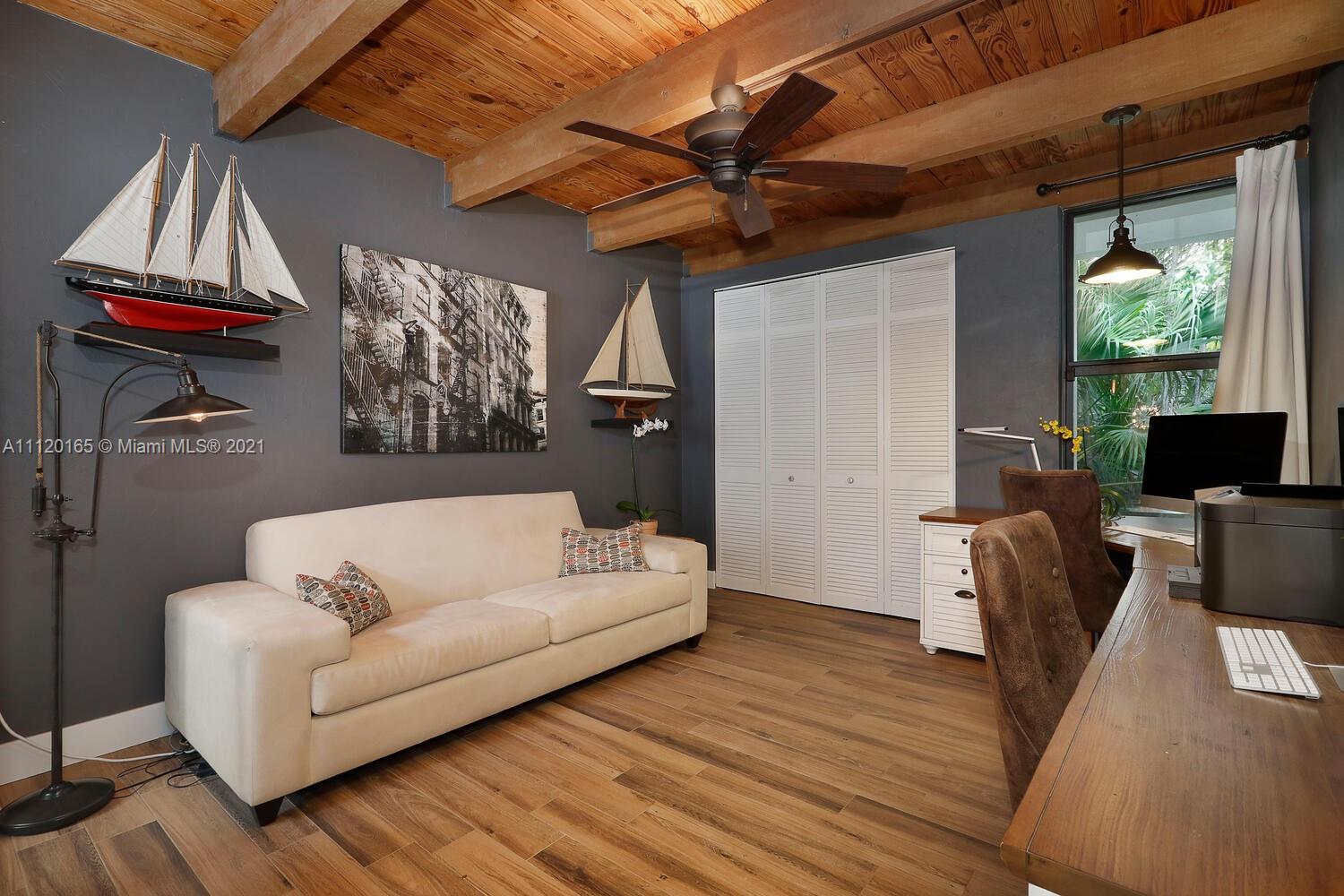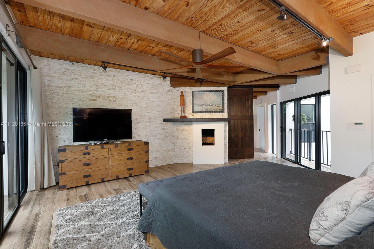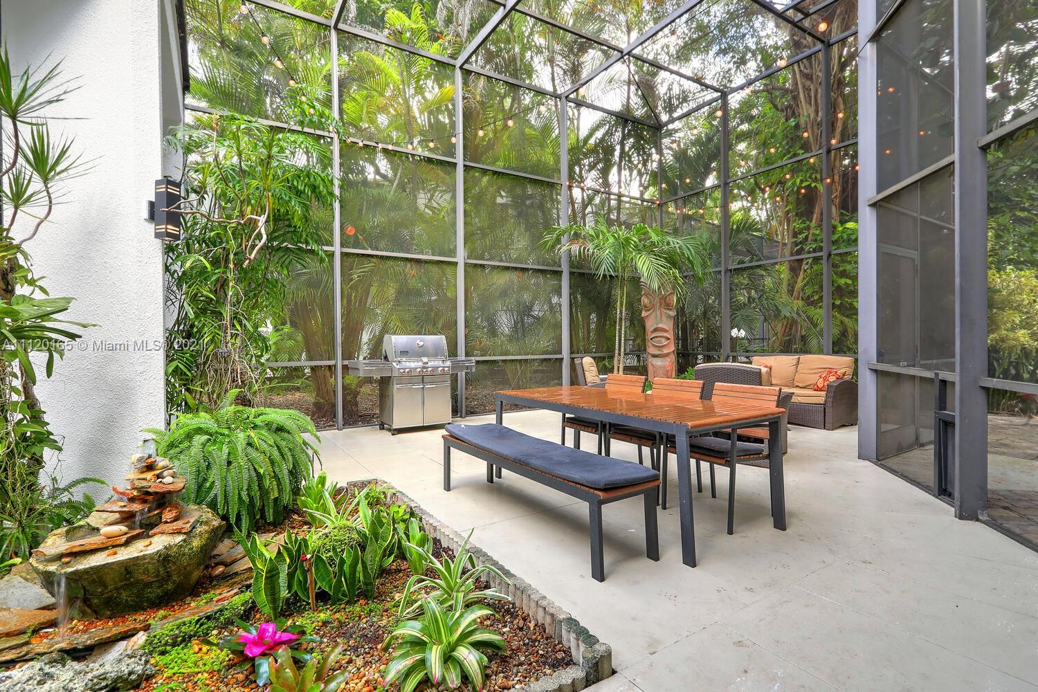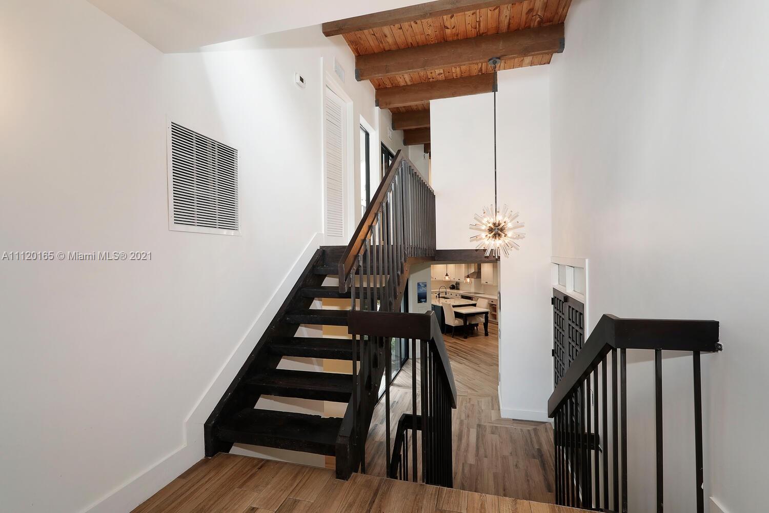 Unique modern-style home designed by the renowned architect, Hernando Acosta. Surrounded by lush tropical garden & set high on the Silver Bluff Ridge (22 ft. above sea level). The impressive, gated entry is framed w/massive coral rock formations & opens to a bricked motor court. Light-filled interior spaces w/ high, wood-beamed ceilings overlook the expansive double-height screened terrace for year-round outdoor living & entertaining. New custom kitchen (2017) features lacquered wood cabinetry, quartz countertops, high-end appliances & large center island. Recent updates: 2 new HVAC systems, water heater, wood-plank style porcelain tile flooring, updated bath & impact glass throughout the home. Additional features: fireplace, wine cellar & 2CG. Walk to bayfront parks & the Grove village.