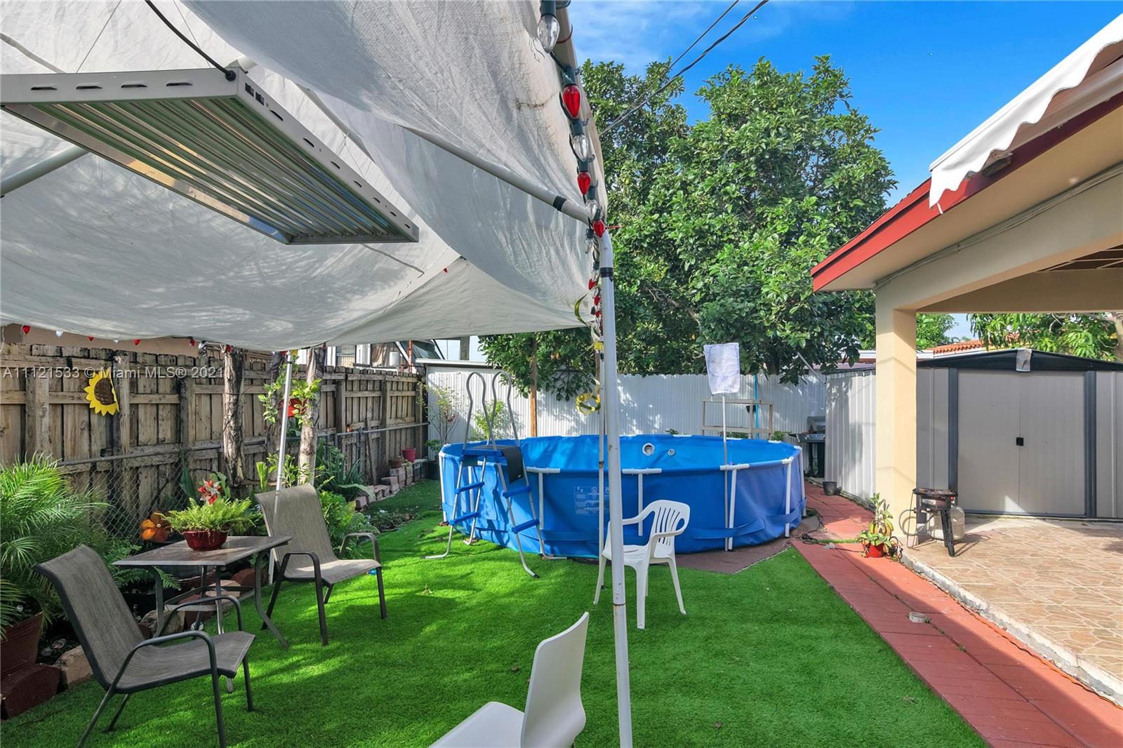 • Exterior Feature:Fence, FruitTrees, Lighting, Patio, StormSecurityShutters