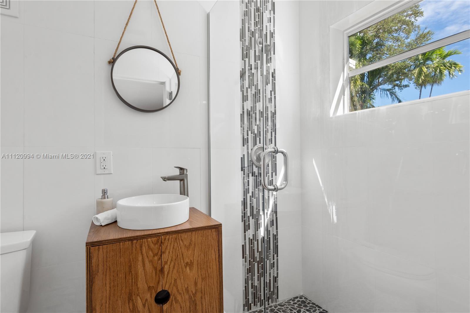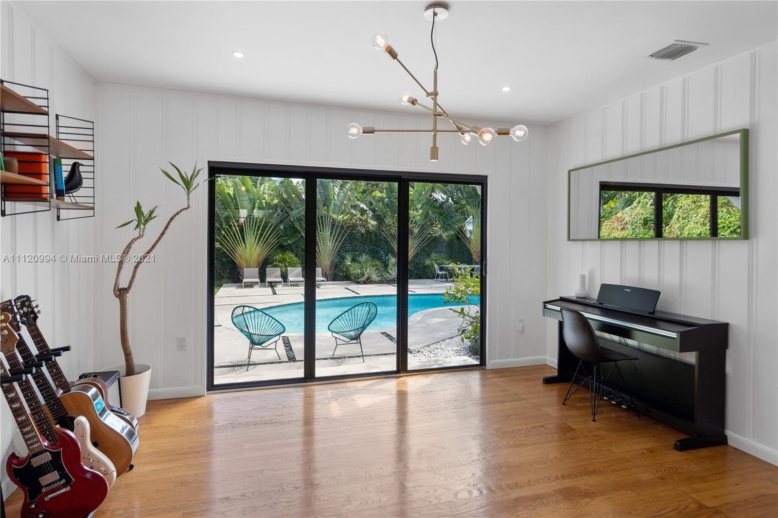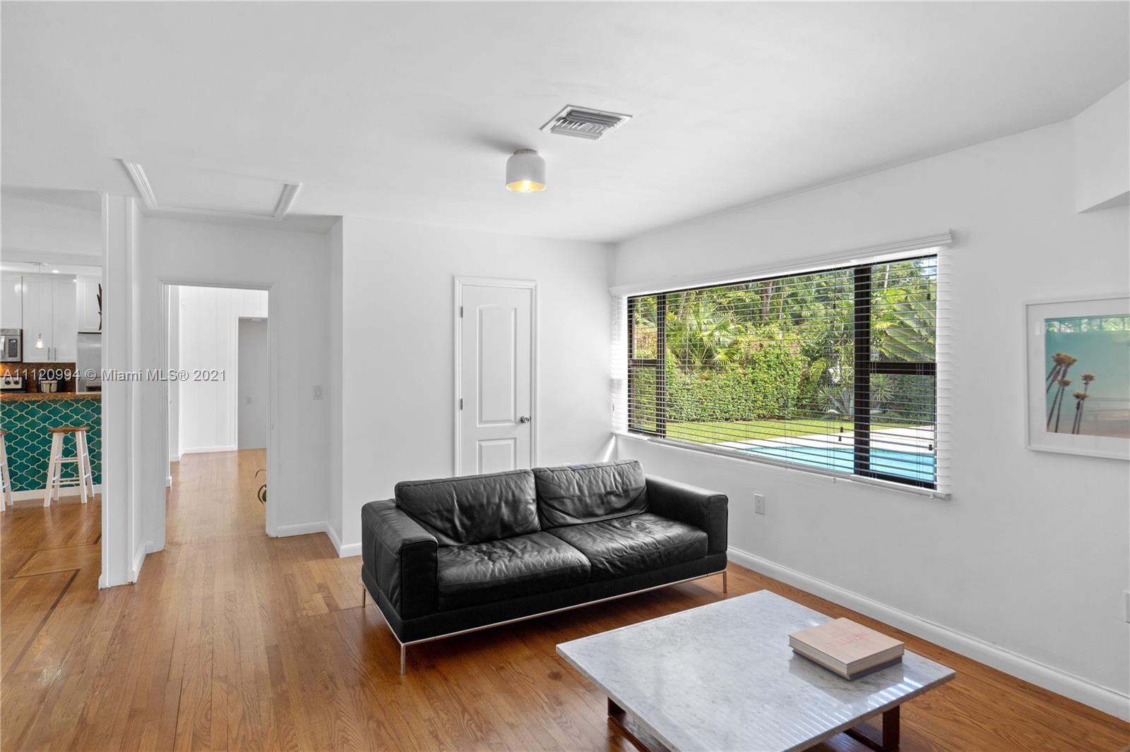 Relax and entertain in this updated 3 bed - 3 bath house in one of the best neighborhoods of Miami Shores! This charming house sits on a 9,600 sq ft lot and features hardwood floor throughout, an open & split floor plan, an updated kitchen with stainless steel appliances, 3 modern bathrooms and a laundry room. The large & bright dining and living room with new impact sliding door overlooks a large tropical backyard with pool that offers great privacy. The spacious master bedroom has direct access to the pool area. The property is centrally located near private and public schools, a golf course, grocery stores, restaurants, and just a few minutes from major entertainment areas & the beach. The property is not in a flood zone (1/10).