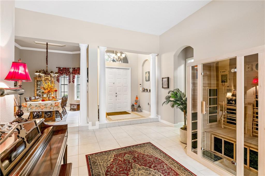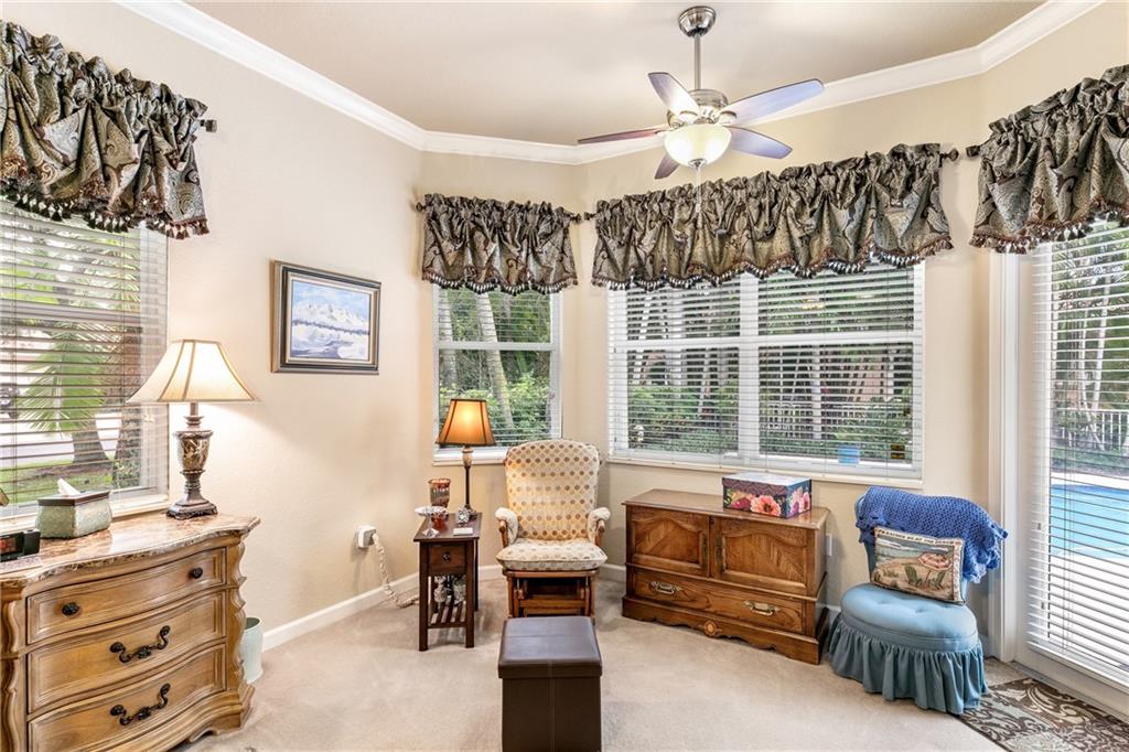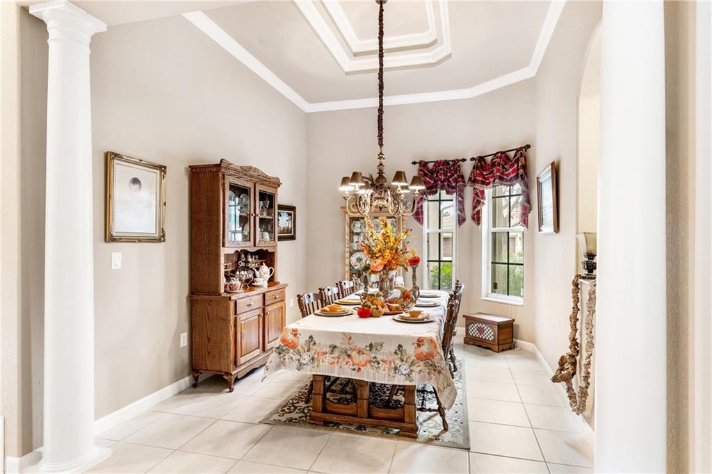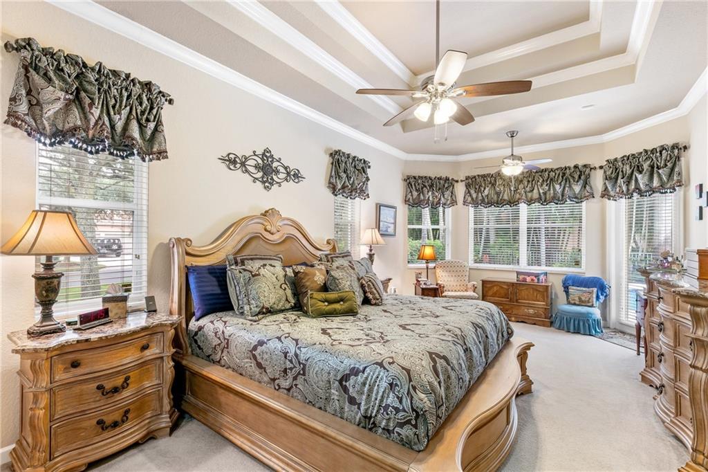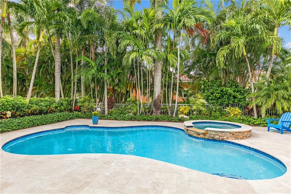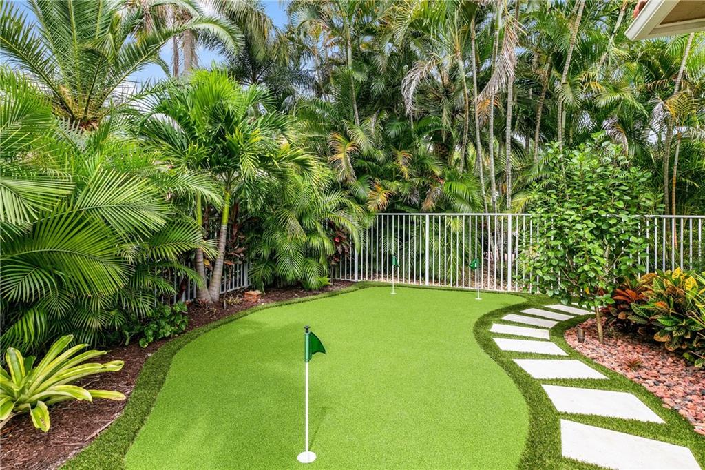 Estate style pool home w putting green & custom poolside BBQ on private, landscaped corner lot w 2019 roof and updates throughout. Triple split bedroom layout, volume ceilings, raised foyer, formal living/dining, spacious eat-in kitchen w newer appliances & induction cooktop opens into large family room. Huge Master Suite/bath w walk-in closets. Newly refreshed resort style yard w pro-caliber practice putting green, new resurfaced diamond bright pool w travertine deck, new pool pump, new heater & spa. Covered patio with retractable sun shade. Newer AC, exterior paint. Buyer pays one time $790 capital contribution at closing.