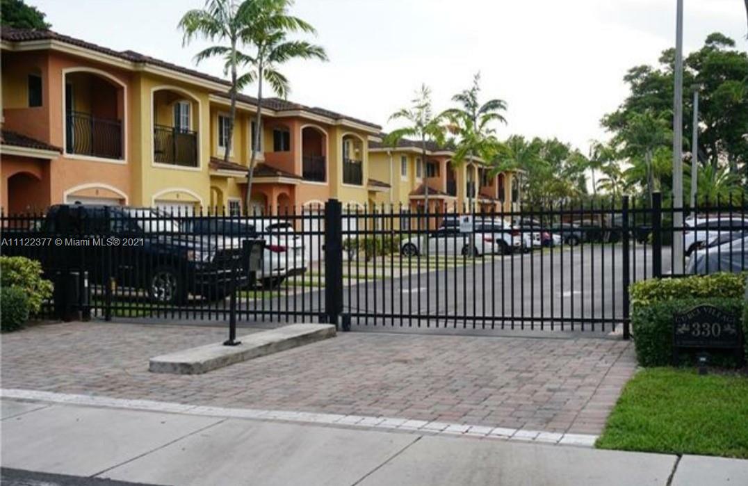 Beautiful townhouse centrally located in Hallandale Beach, west of US1, just minutes from the beach, shopping, Casino and. This gated community features 3bedrooms, 2 1/2 bathrooms, granite countertops with wood cabinets. Master bedroom features a remodeled walk-in closet, master bathroom with dual sinks, shower and tub, Sitting balcony on master. Spacious 2nd and 3rd bedroom. Laundry room with extra space for storage. Outdoor patio with an upgraded seating area . Automatic garage space equipped with built- in closets for storage and 2 outdoor parking spaces. Condo features a pool with seating area plus a large play area. All windows and doors are impact proof. Alarm system installed throughout the house. Equal Housing Opportunity.
