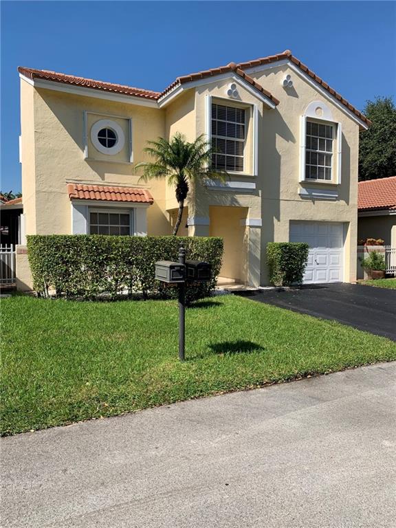Very neat and well maintained single family home in Weston with one car garage and double driveway. Flexible floor plan allows ground floor to be used as either a great room with a formal dining room, or living room, dining area and family room. Breakfast bar in kitchen. Vaulted ceilings throughout. Master suite features large walk-in closet and his and her sinks in master bath. Second bathroom has a bath tub. Half bath downstairs for use by guests. Large roofed and screened 13x19 patio, perfect for parties, family functions or as a quiet retreat. Good sized privacy fenced backyard with room for swing set, or for dogs to run. Newer A/C system. 2010 roof. Beautiful community swimming pool. Quarterly HOA fee includes mowing of front yard. Top rated schools.