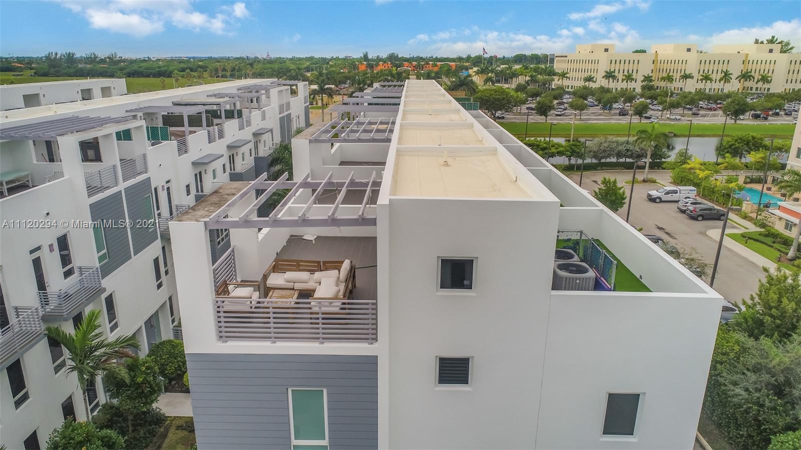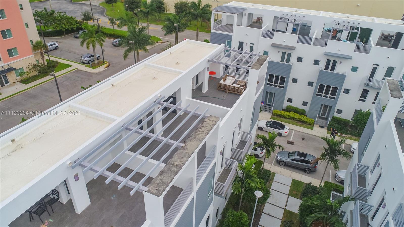 Stunning 3 story townhouse with rooftop terrace 4bd/3.5 located in the gated community of Contempo. Unit features 1 bedroom on the main floor with a full bath. Great for older siblings or inlaws. High ceilings, open kitchen with walk in pantry, stainless steel appliances and dining space. Half bath on main living area makes it easy for guest and keeps your main baths private. On the third floor you will find 3 bedrooms with 2 full baths, large master bedroom with walk in closet and a stand alone tub+ shower. Enjoy family fun on your roof top terrace with outdoor kitchen, great views of our south Florida sunsets! Also across the street from Dorals newest largest park, DORAL CENTRAL PARK (currently under construction)! Do not miss out on this opportunity!