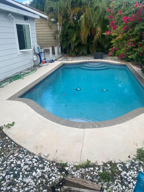 Great starter home for any family, features a beautiful pool and yard perfect for entertaining. 3 bed 2 bath home with ceramic flooring in living areas and newer laminate flooring in the bedroom, Updated bathroom with stand up shower. Reinforced siding is only 5 years old. Stainless steel appliances, and newer washer and dryer. Brand new Impact windows. LOW HOA!!! A-Rated Schools!