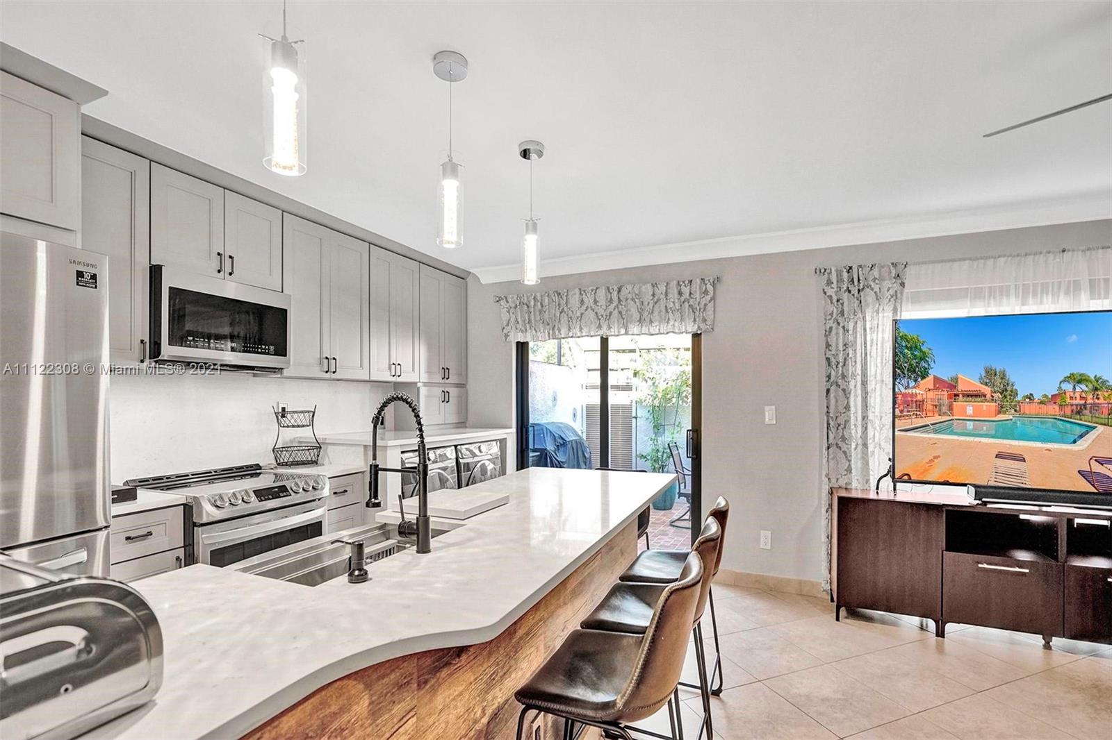 Exceptional 3 bedroom, 2 and a half bath, corner townhome located in Villas East in Pembroke Pines! Features include stunning, open concept kitchen with quartz countertops, stainless steel appliances, custom cabinetry and work spaces. First floor living areas feature, custom lighting, crown molding/trim, accent walls and open floor plan with excellent storage space and half bath. 2nd floor features large master bedroom with ensuite bath and walk in closet, spacious 2nd and 3rd bedrooms with oversized closets and large hall bathroom. New Impact windows and slider and New AC installed in 2018! Entertain to your hearts content in this spacious, tastefully remodeled townhome...this home will not disappoint!