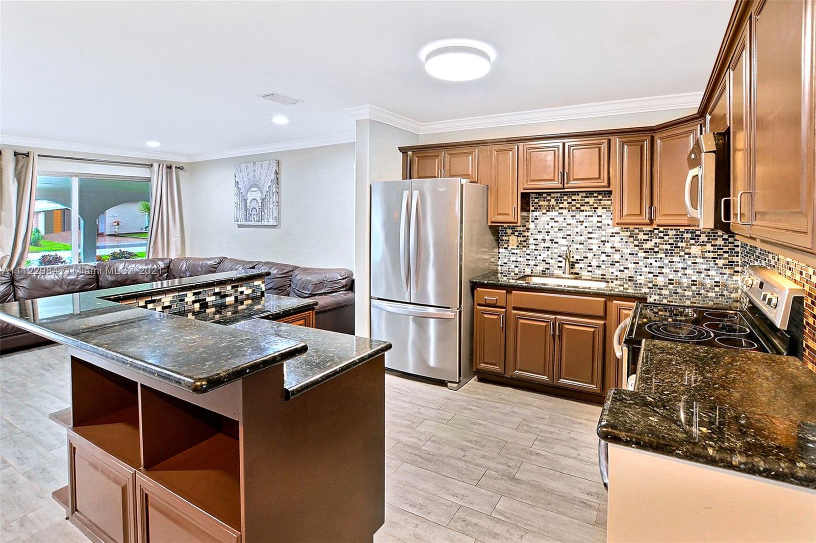 SPECTACULAR 3 BED 2 BATH PEMBROKE PINES POOL HOME HAS BEEN REMODELED FROM TOP TO BOTTOM COMPLETE W ALL IMPACT WINDOWS & DOORS, NEW AC, NEW METAL ROOF IN 2017. CURB APPEAL ABOUNDS FROM TASTEFULLY CURATED LANDSCAPING, TO CRISP MODERN EXTERIOR, FROM AN INVITING CIRCULAR DRIVEWAY. OPEN CONCEPT LIVING AT ITS FINEST SHOWCASES A GORGEOUS KITCHEN COMPLETE WITH GRANITE COUNTERS, TILE BACKSPLASH & NEWER STAINLESS APPLIANCES. CROWN MOLDING AND RECESS LIGHTING. STUNNING MODERN FLOORS THROUGHOUT LEAD TO AN ENTERTAINERS PARADISE IN THE BACKYARD. A LARGE PATIO AREA, POOL WITH WATERFALL FEATURE, AND PALM TREES LINE THE PRIVATE GATED BACKYARD TO CREATE YOUR VERY OWN PARADISE. CONVENIENT DEDICATED LAUNDRY ROOM HAS A VIEW OF THE BACKYARD. ALL IN CLOSE PROXIMITY TO RESTAURANTS, SHOPS & THE TURNPIKE. NO HOA.