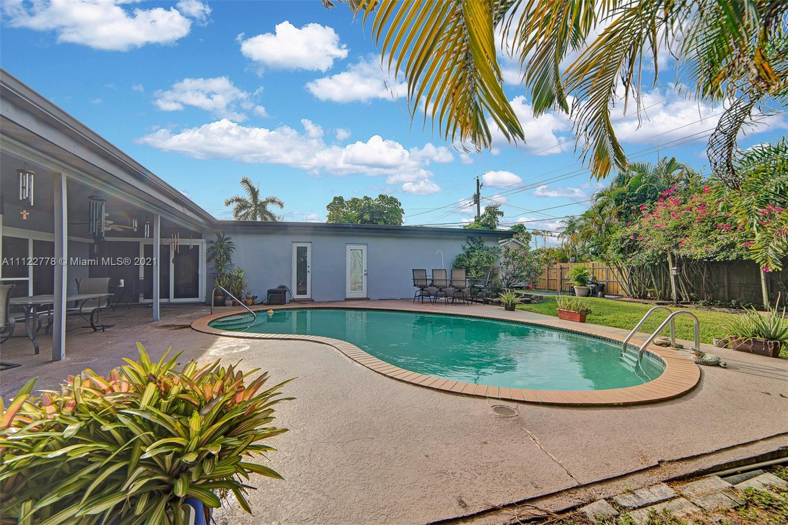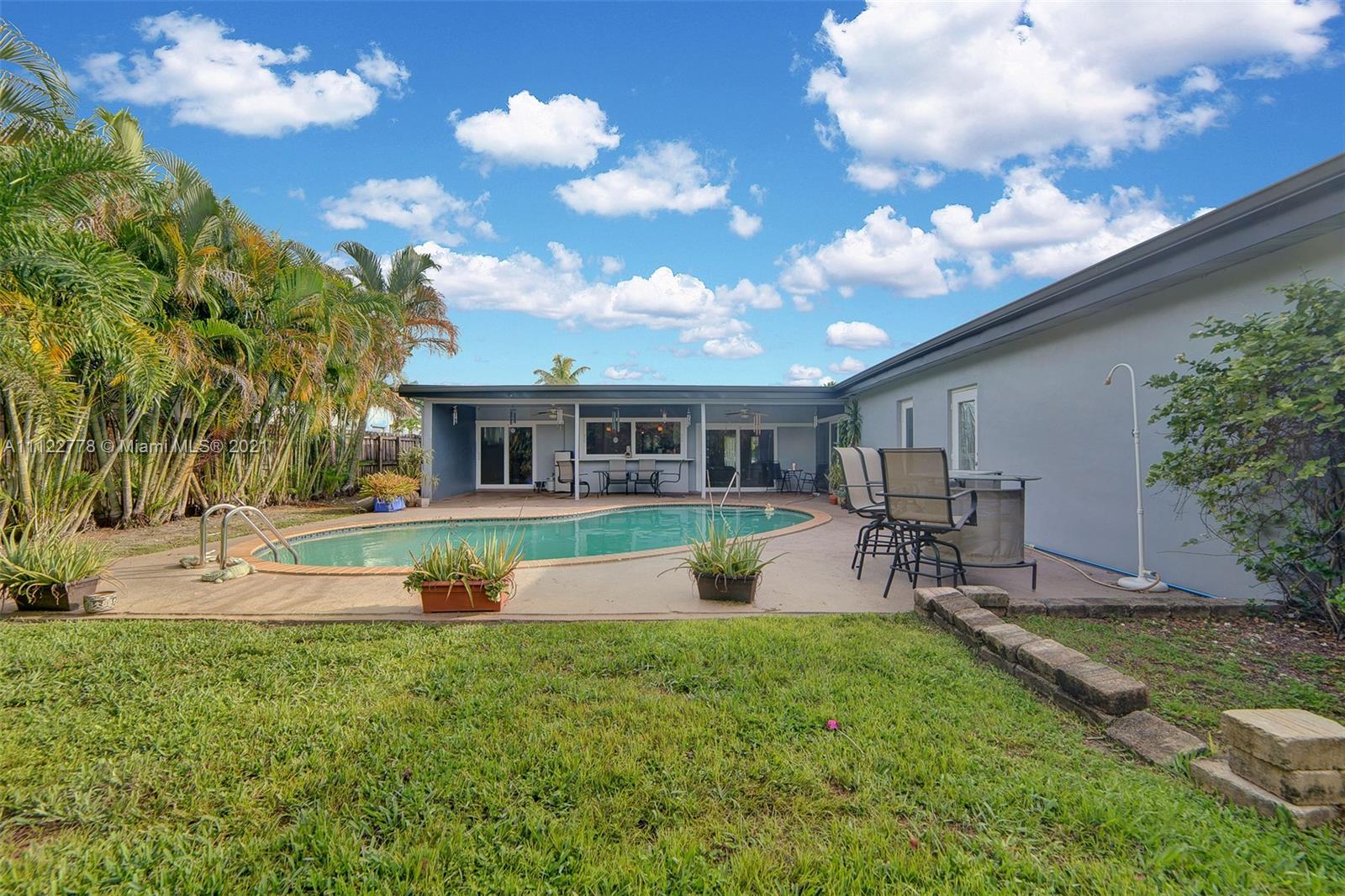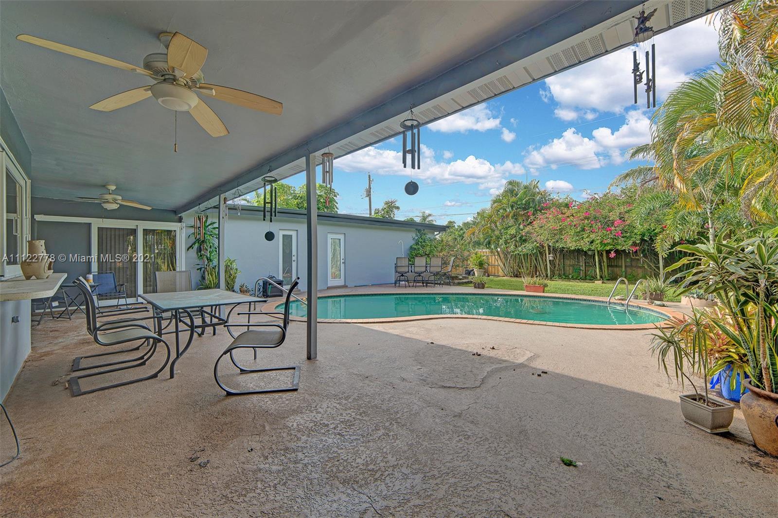 Perfect Tropical Home is waiting for you! Bright sunlit home with natural light in every single room. An open floor plan wisely carves space for a full dining room and an out-cove perfect for a playroom or office. The main suite has ample closet space and full bath with combined tub & shower. The two bedrooms let in tons of light and are smartly laid to optimize space. Most notable is the expansive kitchen area with a sunny breakfast nook. Great for early breakfasts or holiday baking this kitchen area is the heart of the home and leads to your private fenced in pool and garden. The pool area has a concrete patio surrounded by a large yard space for kids, family, pets and entertaining. Make your South Florida dream home a reality today! Contact listing agent for video tour!
