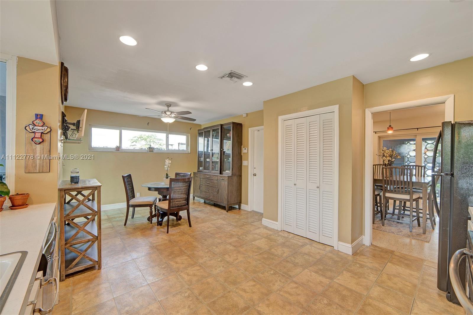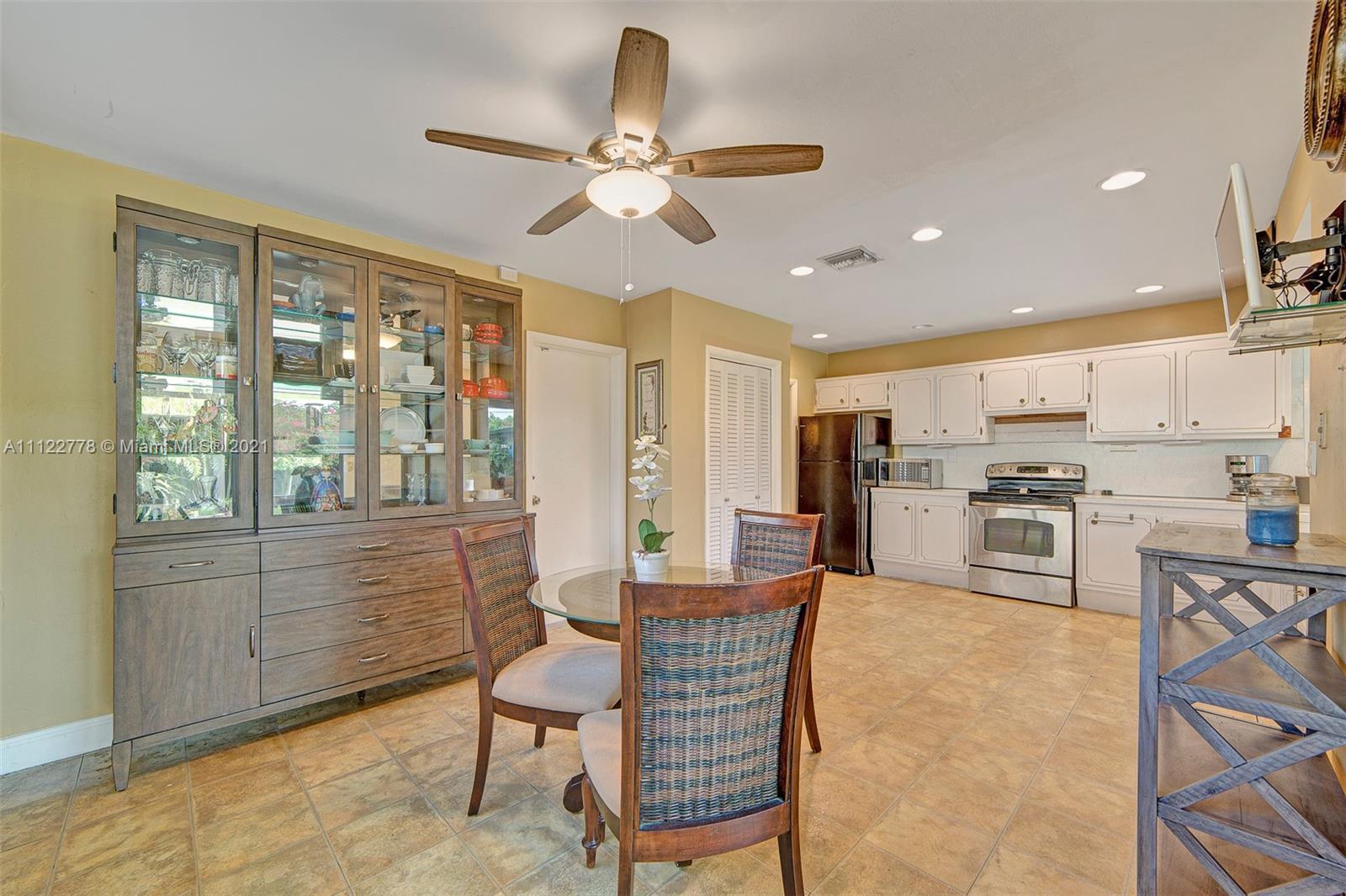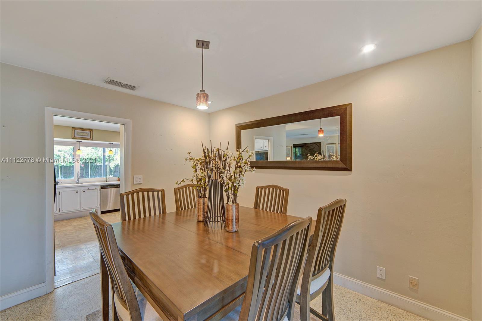 Perfect Tropical Home is waiting for you! Bright sunlit home with natural light in every single room. An open floor plan wisely carves space for a full dining room and an out-cove perfect for a playroom or office. The main suite has ample closet space and full bath with combined tub & shower. The two bedrooms let in tons of light and are smartly laid to optimize space. Most notable is the expansive kitchen area with a sunny breakfast nook. Great for early breakfasts or holiday baking this kitchen area is the heart of the home and leads to your private fenced in pool and garden. The pool area has a concrete patio surrounded by a large yard space for kids, family, pets and entertaining. Make your South Florida dream home a reality today! Contact listing agent for video tour!
