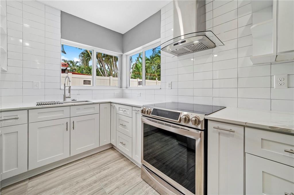 Nestled in the beautiful and charming historic Poinsettia Heights, this newly remodeled gem features an airy and bright entertainer’s kitchen with recessed LED lighting, oversize subway tile backsplash, quartz countertop, spacious cabinets and floor to ceiling pantry, stainless steel appliances. Gorgeous new tile floor throughout the home. 2017 Roof. NO HOA.New hurricane impact windows and doors, new electrical, electric hot water heater, newer A/C. The primary bedroom features a fabulous walk-in shower with designer accents. Create your own outdoor oasis in the huge backyard. Plenty of room for storage in the carport and shed. Located close to shopping (Whole Foods, Best Buy), entertainment and A rated school districts. Highly sought after east Fort Lauderdale neighborhood.