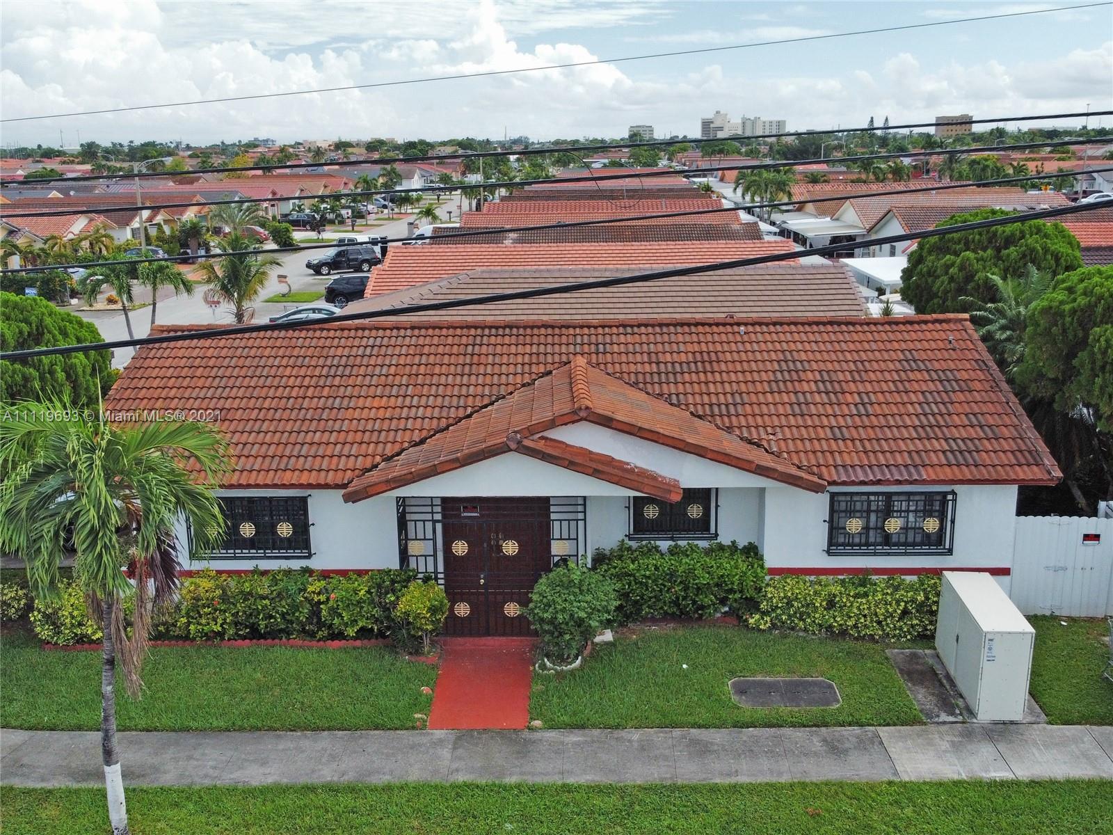 Beautiful corner lot, one-story house in the family-oriented community of Hialeah. This is a 3-bedroom, 2-bathroom home with white tile throughout. Cozy kitchen overlooking the patio and side entrance. Large garage, very close to schools and major roadways. This property is being sold AS IS.
