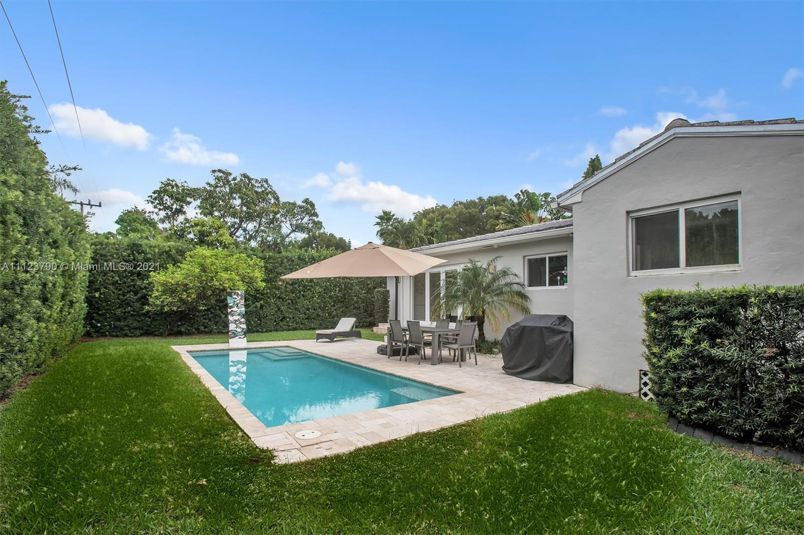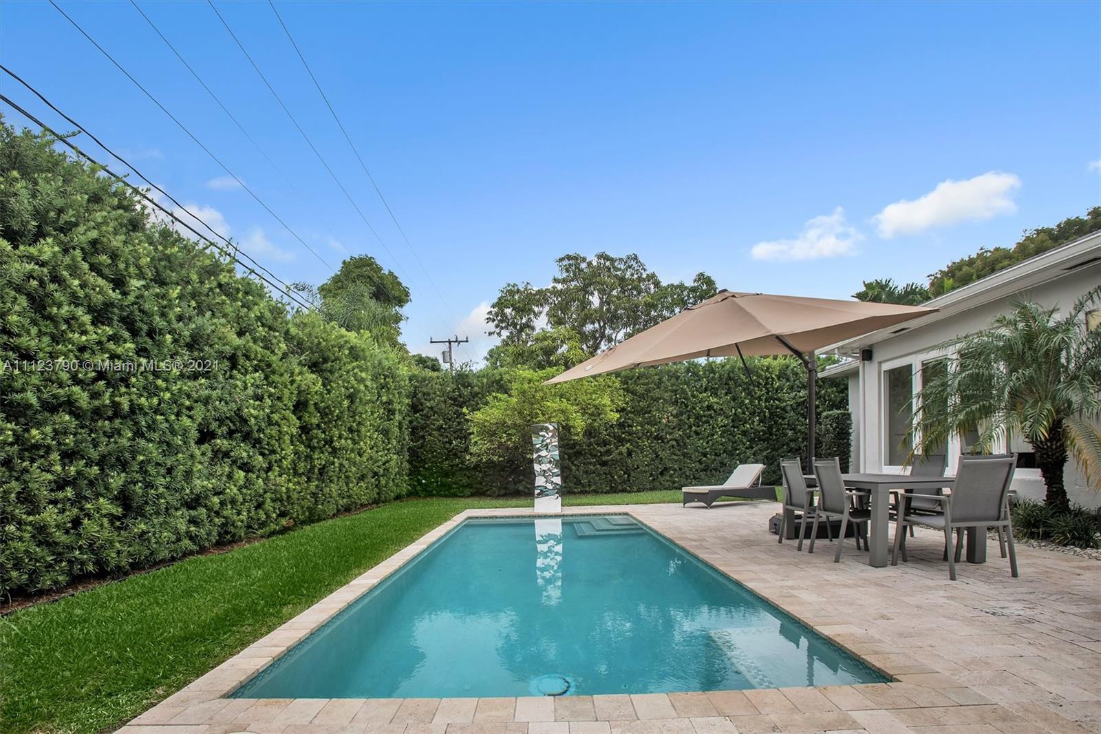 Fully-renovated 3 bedroom 2.5 bathroom bungalow in the heart of coveted Morningside. Updated by the current owner in 2015/2016, this home features new plumbing, electrical, kitchen, impact windows and doors, roof (which is still under warranty) and a/c units. It also has great outdoor space with a very private and hedged backyard, a new pool and green area. The one-car garage can be easily converted into a master suite or additional living space as the home NOT locate within a flood zone.