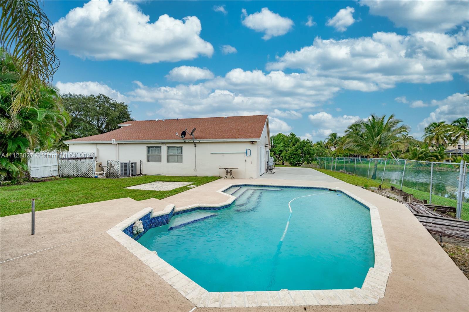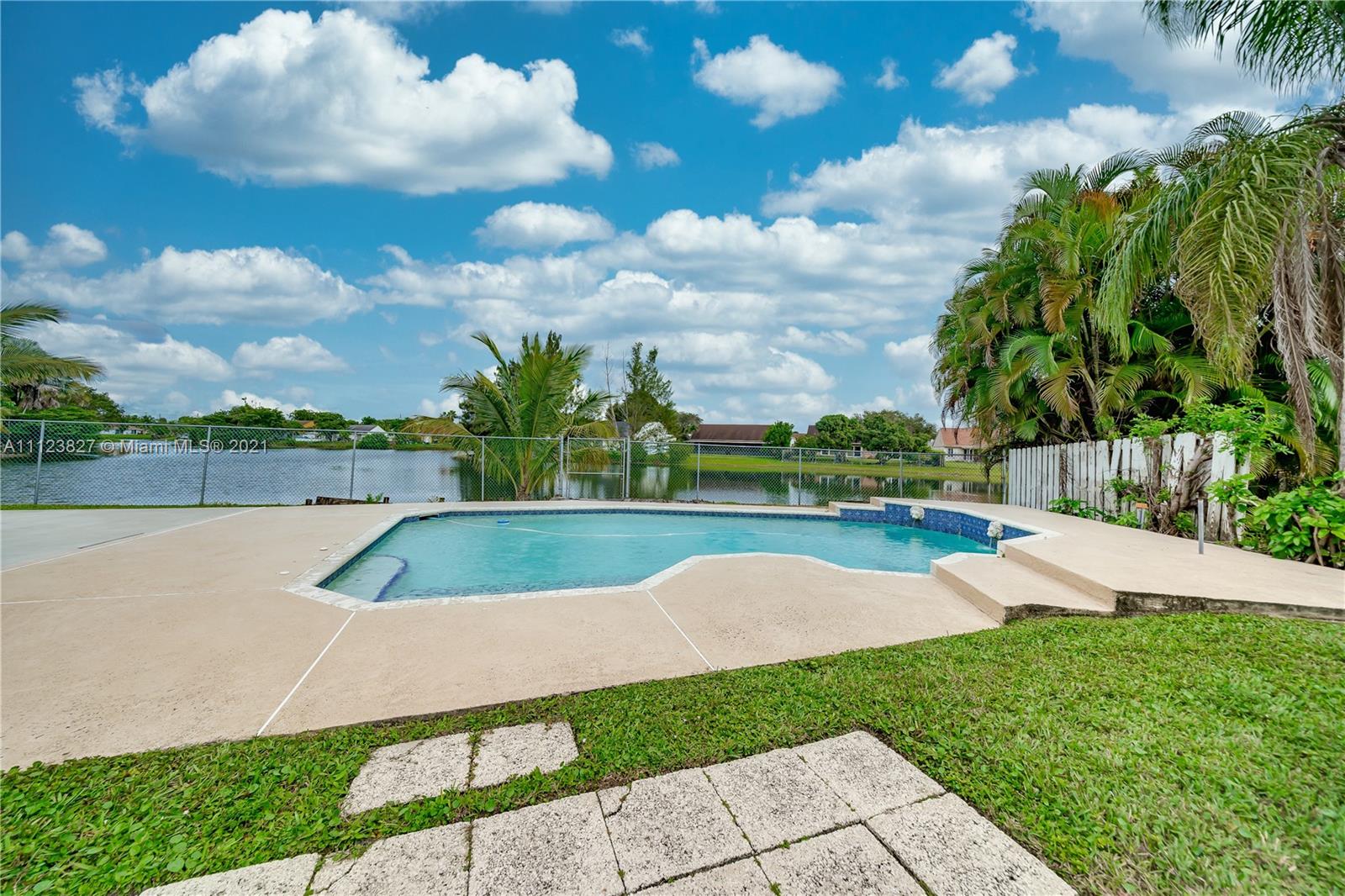This is the one you have been waiting for! Location, Location, Location. Welcome home to River Run! This 3 bedroom and 2 bathroom home sits on an OVERSIZED corner, pie shaped lot with stunning views of the water, gorgeous pool and still plenty of room to roam. The interior features dramatic vaulted ceilings and a very open floor plan. There is a formal living and dining area, as well as a large kitchen which opens up to the family room. Roof is from 2019. Full hurricane protection! All this needs is some cosmetic updates to suit your personal style and taste.