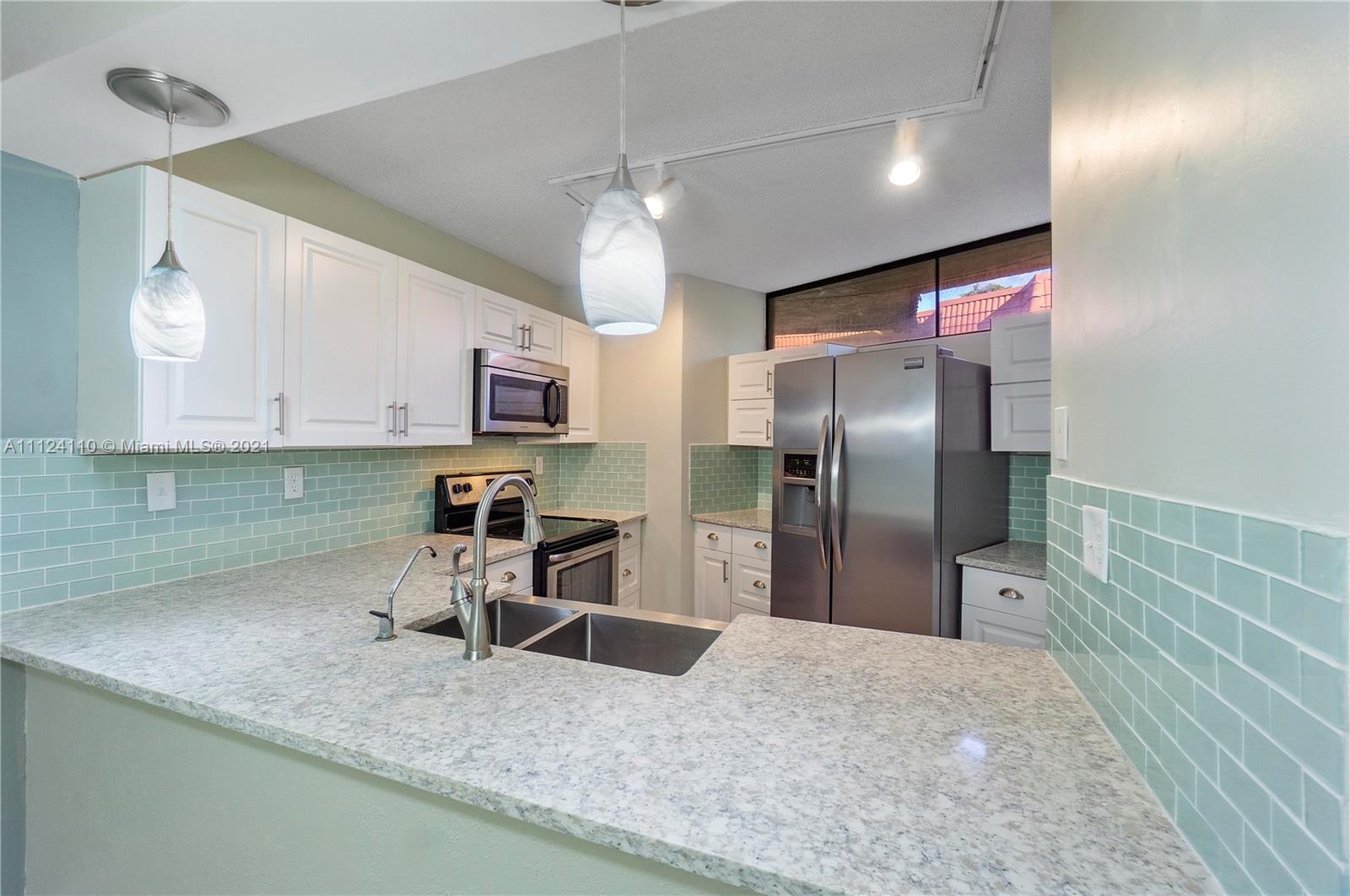Charming 2 Bed/2.5 Bath courtyard townhome in beautiful Boca Rio North. Bedroom suites are located upstairs with sliding door access to the patio/balcony. Upgraded contemporary kitchen with quartz counters and stainless steel appliances. Ceramic tile throughout. The private fenced courtyard is the perfect spot for family and pets. Full size washer and dryer. The HOA includes building insurance, roof and exterior maintenance. Community pool, hot tub, fitness center, sauna, tennis & racquetball courts and a clubhouse/recreation room and lake-side walking paths. A-Rated schools. Pets welcome. No renting first 2 years.