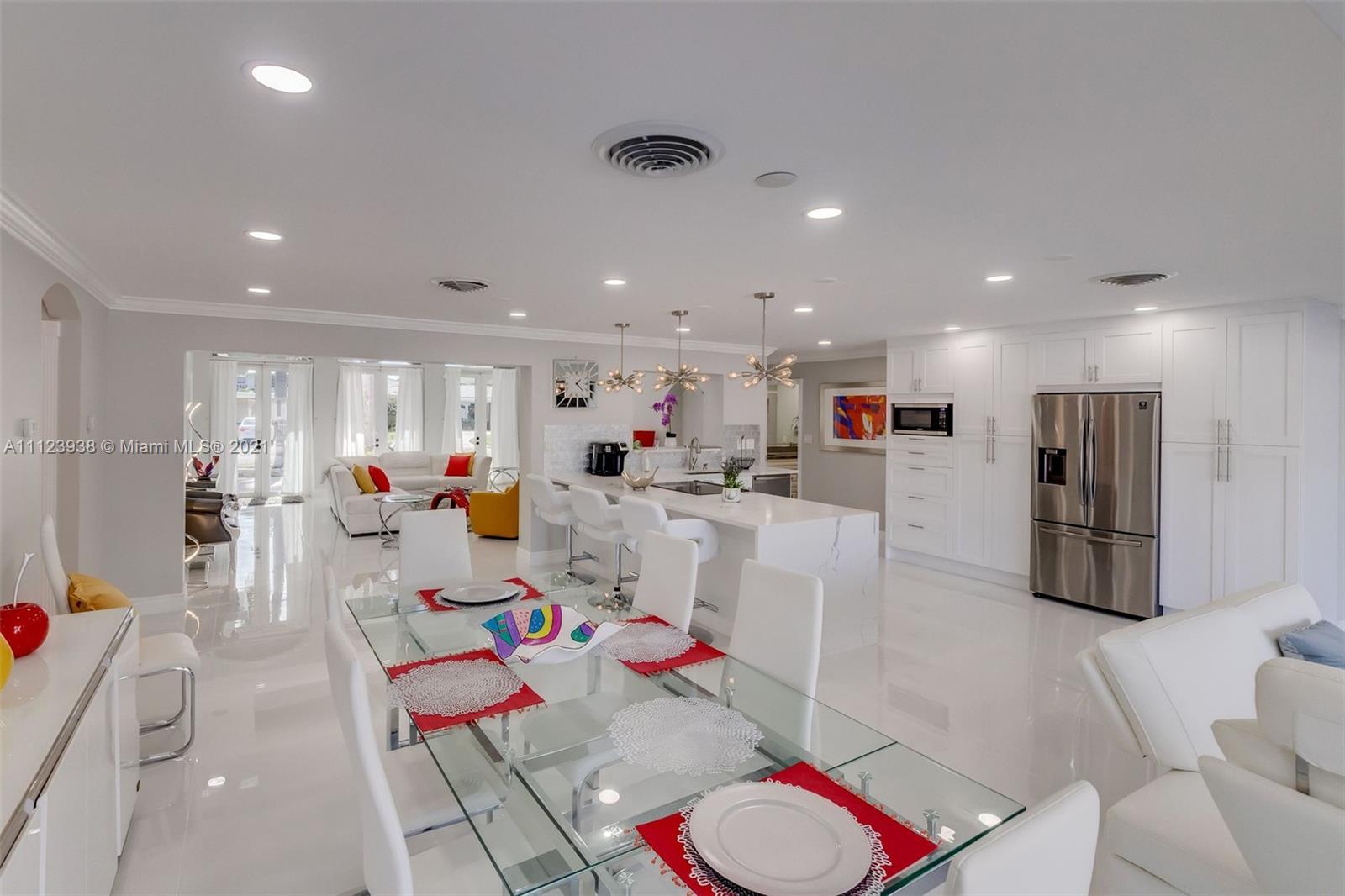 Completely renovated Amazing designer home !!! Seller spared no expense 4 bedroom 2 full bath 2 car garage extreme high end finishes wood cabinetry quartz countertops stainless steel appliances wine fridge huge custom closet custom zebra blinds open concept gleaming white tile flooring thru-out BOATERS DREAM!! Waterfront with ocean access. This property features a 70-foot boat dock, including a boat lift. saltwater pool with tiki hut travertine pool deck one level with huge living area.