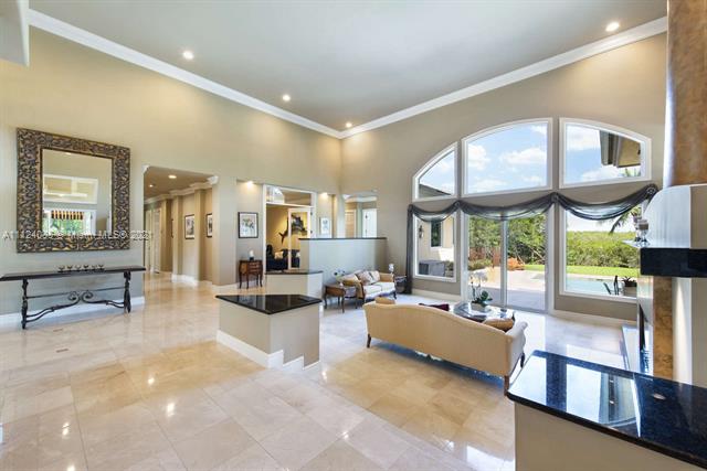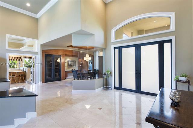 Privacy, security, and ocean access in this one-of-a-kind Coral Gables estate situated at the end of the road on one of the largest lots in the prestigious guard-gated Hammock Oaks. An entertainer's dream! This bright single-story home with attached three car garage has an open floor plan with 20ft ceilings, custom millwork, and marble and Brazilian Teak flooring throughout. It is a 5/5 plus office, zoned for Pinecrest schools, and features wet bar, 300 bottle wine cooler, and dedicated laundry room. Step outside any of the home's custom hurricane resistant doors to enjoy the summer kitchen, oversized saline pool with jacuzzi, and 65ft deeded seawall and dock with weatherproof composite decking, water, and electricity. Truly a boater's paradise with access to Biscayne Bay in minutes!