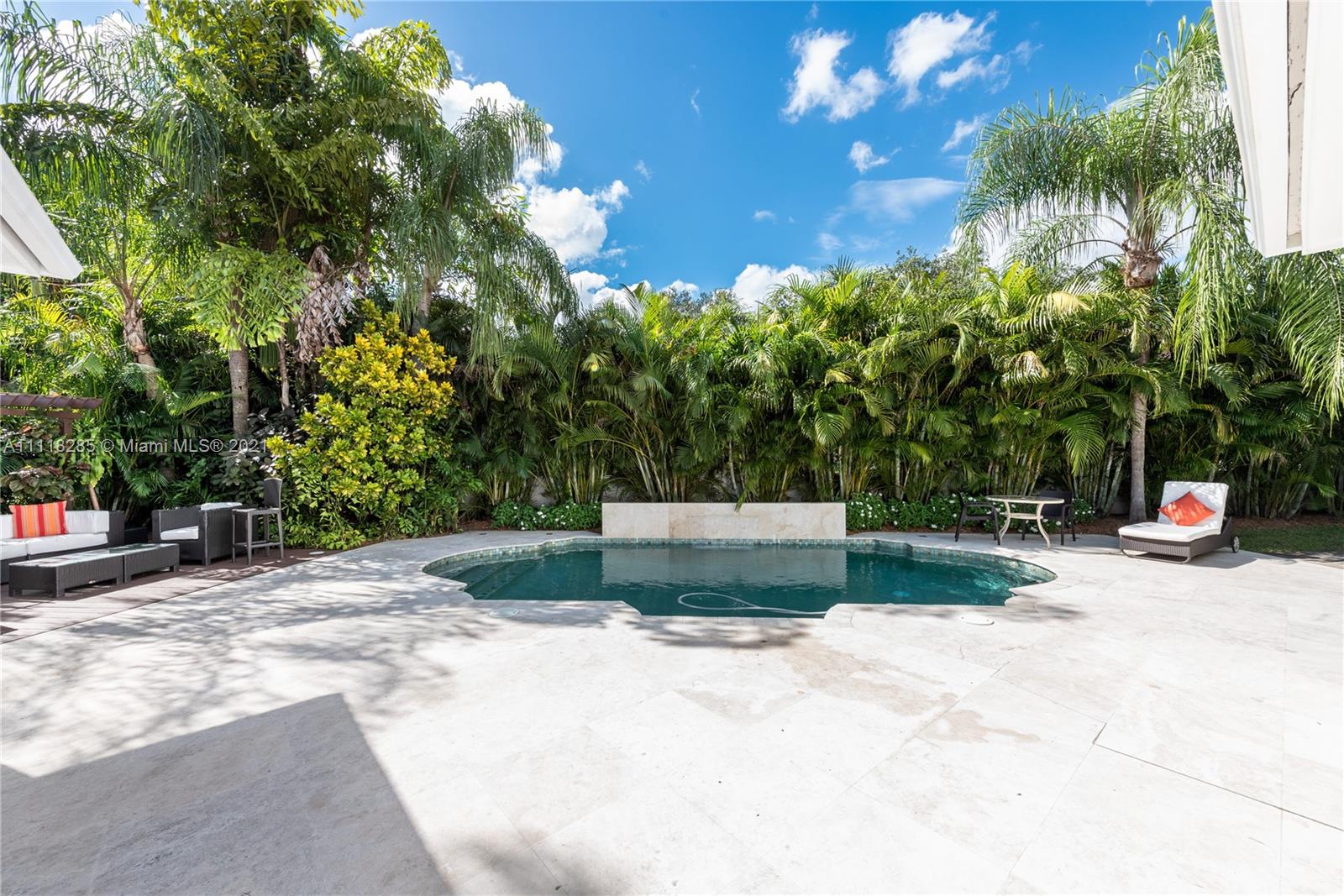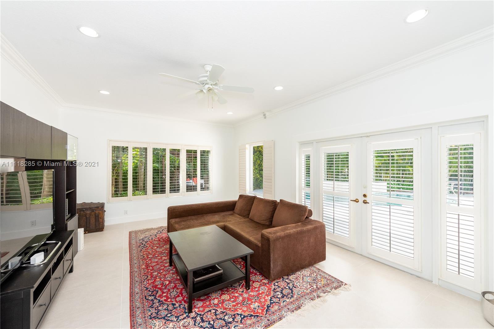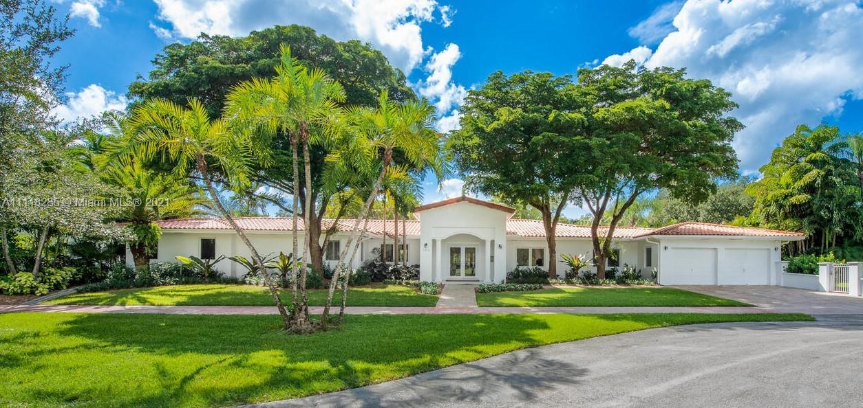 Stunning new listing on historic Country Club Prado. Enlarged in 1995 by Ramon Pacheco this five-bedroom, four-bath home has over 3800 adj. sq. ft. and sits at the end of a cul de sac (near the corner of Red Road and Coral Way) on a large lot with generous parking space for major entertaining. Double front doors to foyer. Living beyond with all family bedrooms off the hall to the left. French doors from Fam. Rm open to the spacious pool/patio. Formal DR. New kitchen with breakfast area. Laundry room. Oversized two-car garage. There is also a maid's room and a full bath. Large office/game room off LR. Huge master suite with separate desk area, walk-in closet, gorgeous new bath. Home would be good as a consulate because of its floor plan/abundant parking... Light, bright, and move-in ready.