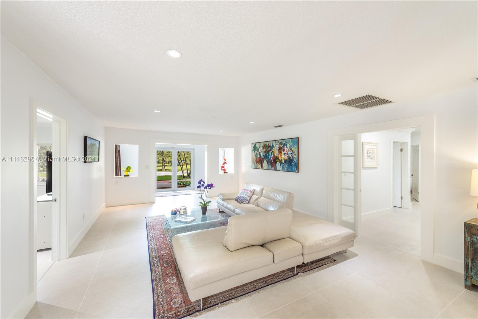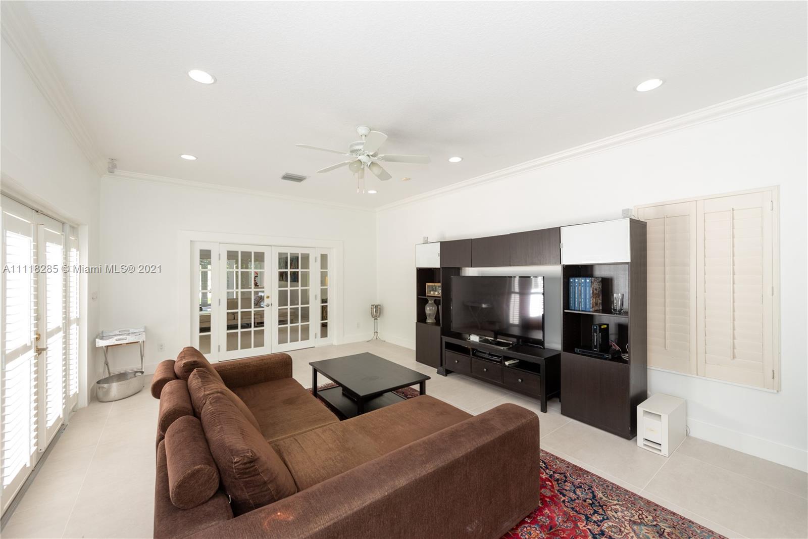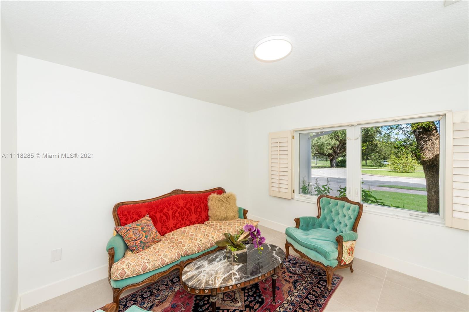 Stunning new listing on historic Country Club Prado. Enlarged in 1995 by Ramon Pacheco this five-bedroom, four-bath home has over 3800 adj. sq. ft. and sits at the end of a cul de sac (near the corner of Red Road and Coral Way) on a large lot with generous parking space for major entertaining. Double front doors to foyer. Living beyond with all family bedrooms off the hall to the left. French doors from Fam. Rm open to the spacious pool/patio. Formal DR. New kitchen with breakfast area. Laundry room. Oversized two-car garage. There is also a maid's room and a full bath. Large office/game room off LR. Huge master suite with separate desk area, walk-in closet, gorgeous new bath. Home would be good as a consulate because of its floor plan/abundant parking... Light, bright, and move-in ready.