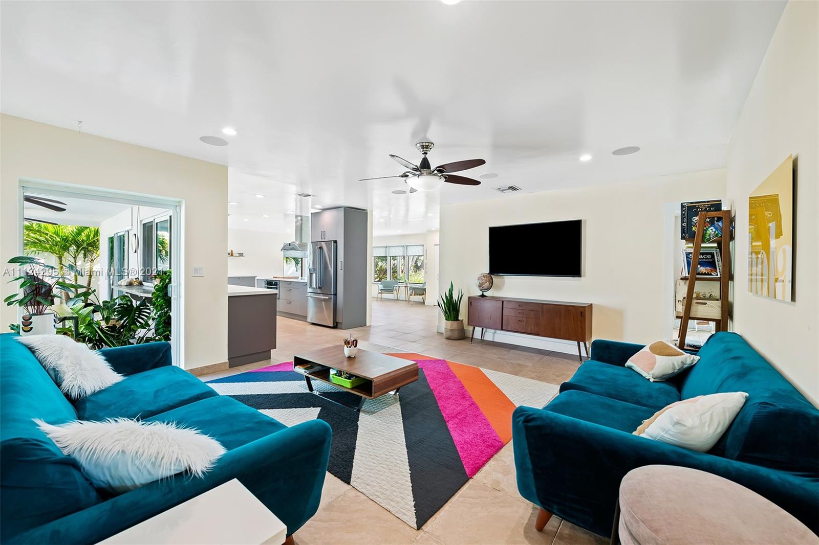 Stunning updated home with 55 feet of tranquil waterfront in East Fort Lauderdale’s sought after Lake Estates neighborhood. Step inside to an open and spacious kitchen which flows between the living and dining room. Recently updated kitchen with new SS appliances, including a double convection oven, reverse osmosis system, wine refrigerator, quartz countertop and windows overlooking the salt water pool and canal. Bright and light from every room, tile flooring, and hurricane impact windows accentuate the beauty of this home. This 4 bed 2 bath home features: 14,000 lb boat lift, dock, pilings, and seawall done in 2016, metal roof, new AC 2021, 2 car garage w/ charge point level 2 charger, pool deck pavers completed in 2018, & a circular driveway. This is a home you don’t want to miss!