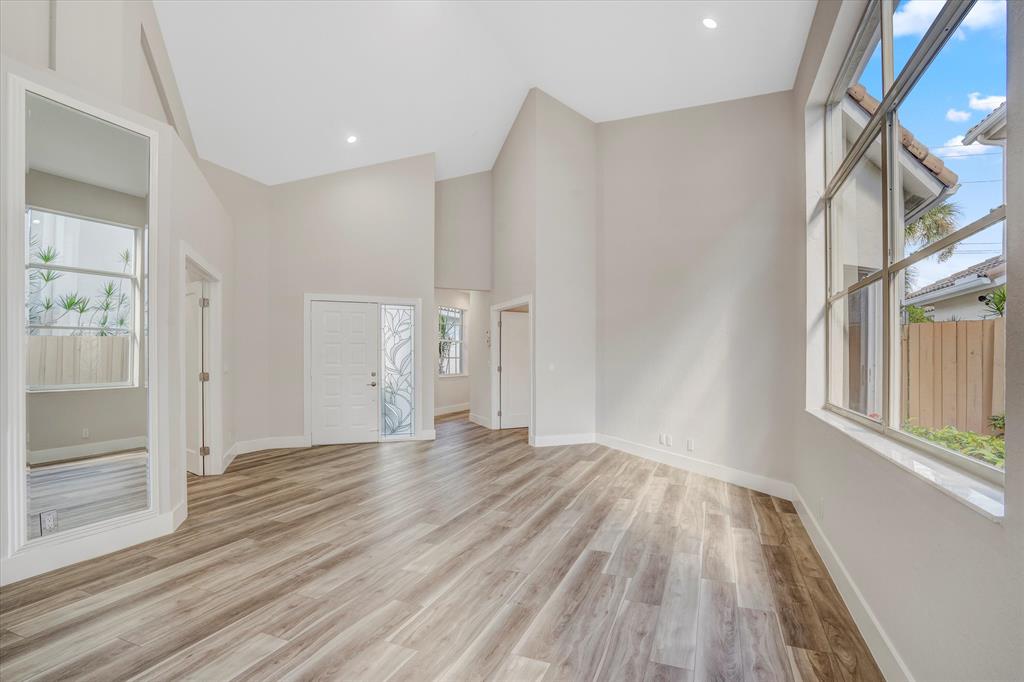 Completely renovated single family home with 2 bedrooms, 2 bathrooms and a GORGEOUS lake view! New kitchen with LG stainless steel appliances, beautiful tile backsplash and quartz countertops. Other features include: brand new A/C, volume ceilings, premium vinyl plank flooring throughout, screen patio + an open patio, new exterior paint, new epoxy garage floor, 2014 roof, 2021 water heater. This house is located in the desirable subdivision of The Banyans in Broken Sound.