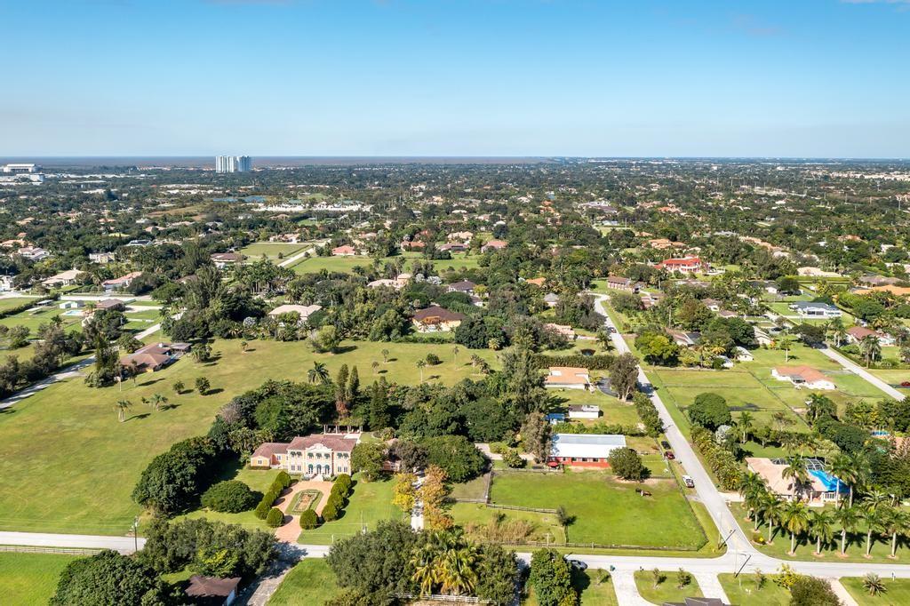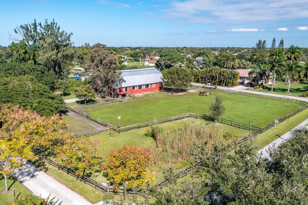 Custom French Provincial estate in equestrian-friendly Plantation Acres spans almost 3 acres with meticulously maintained grounds. The 7700SF, 5BR/5.2BA home features library, billiards room, marble flooring, cedar beams, impact glass, and chef's country kitchen. It welcomes with two private drives, a Chicago-brick main that leads to front entrance with grand staircase. The other, a long, tree-covered drive that divides house and barn, showcasing the residence's true splendor. A classic red barn boasts 14 stalls. Its 3,071TSF features a 2BR/2.5BA guest house that is just as impressive as the main. Idyllic grounds, lush foliage, 50-year old canopy trees and fruit trees, private pond, fenced paddocks, beautiful pool, provide a perfect backdrop for this turn-key, move-in ready estate.