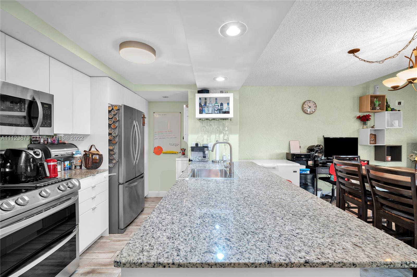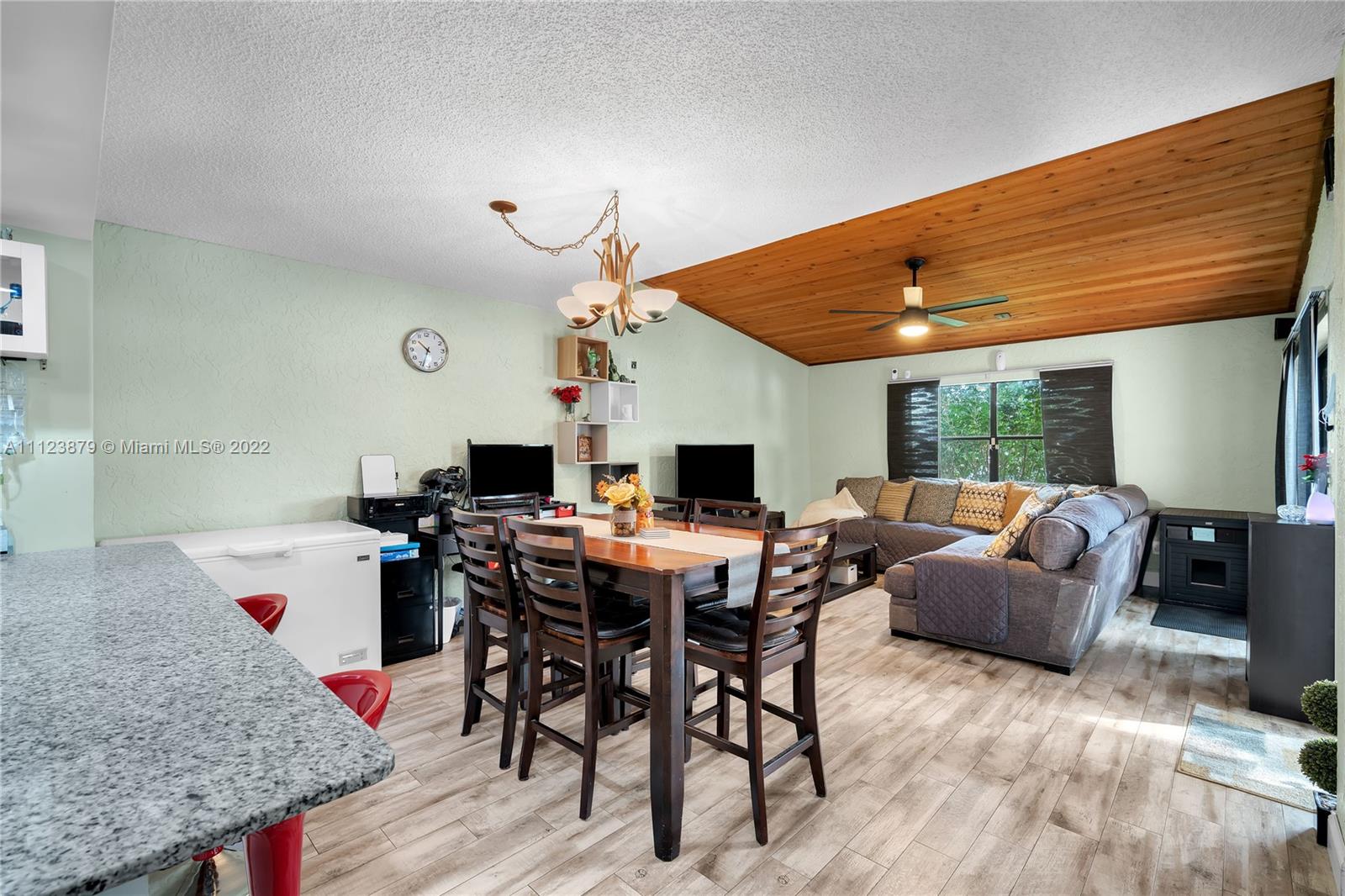 Great, upgraded CORNER starter home with a screen-in patio with wide lake views! 1 full bed and bath with a large great room downstairs with the Primary bedroom and bath upstairs. Upgraded kitchen, baths, and flooring. Flamingo Villas is a Guard gated community with LOW HOA fees which include but are not limited to a community pool, playground area, and fitness room. It is conveniently located in the heart of Pembroke Pines near shopping, restaurants, parks, golf, Memorial hospital, and schools.