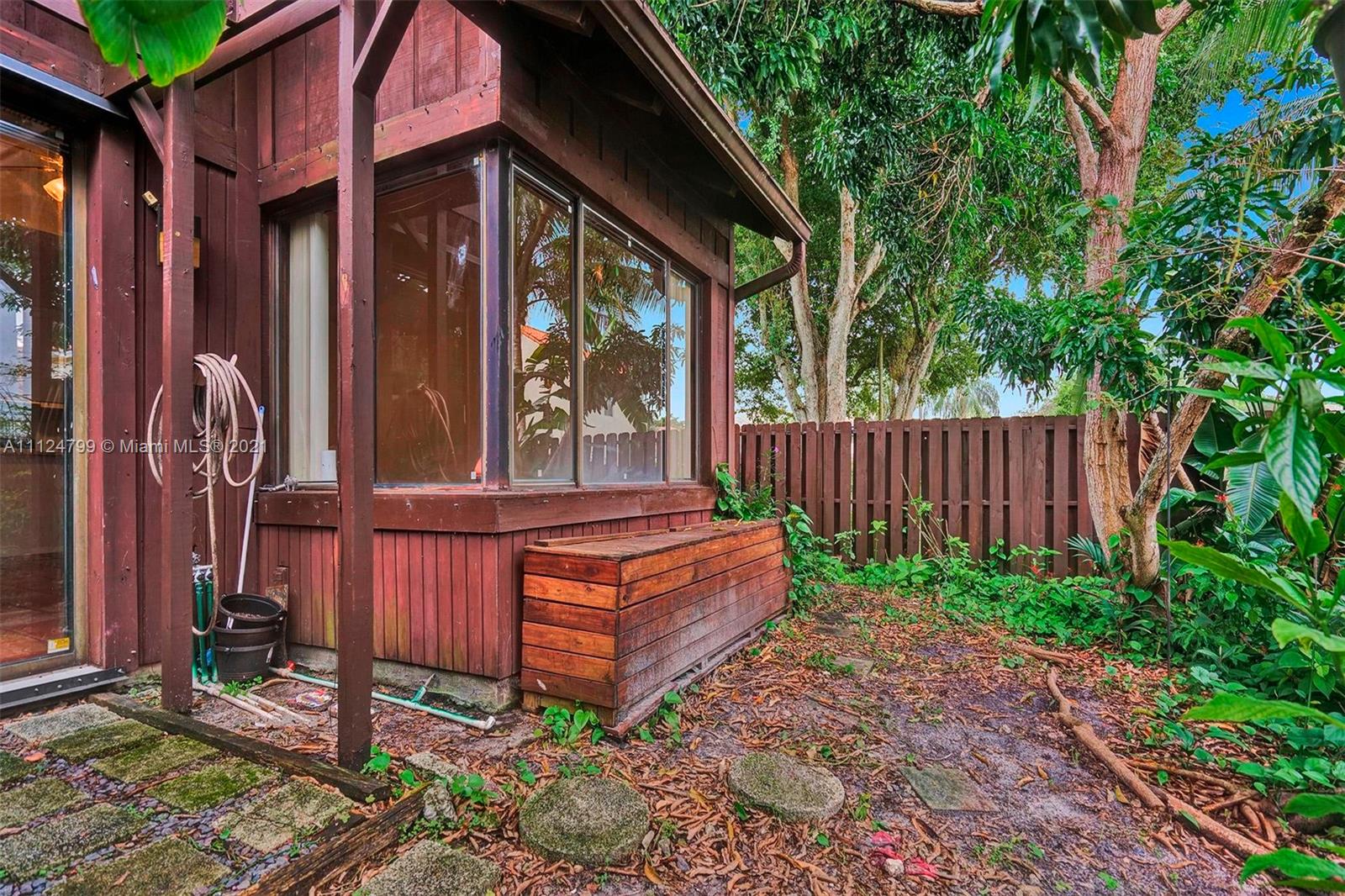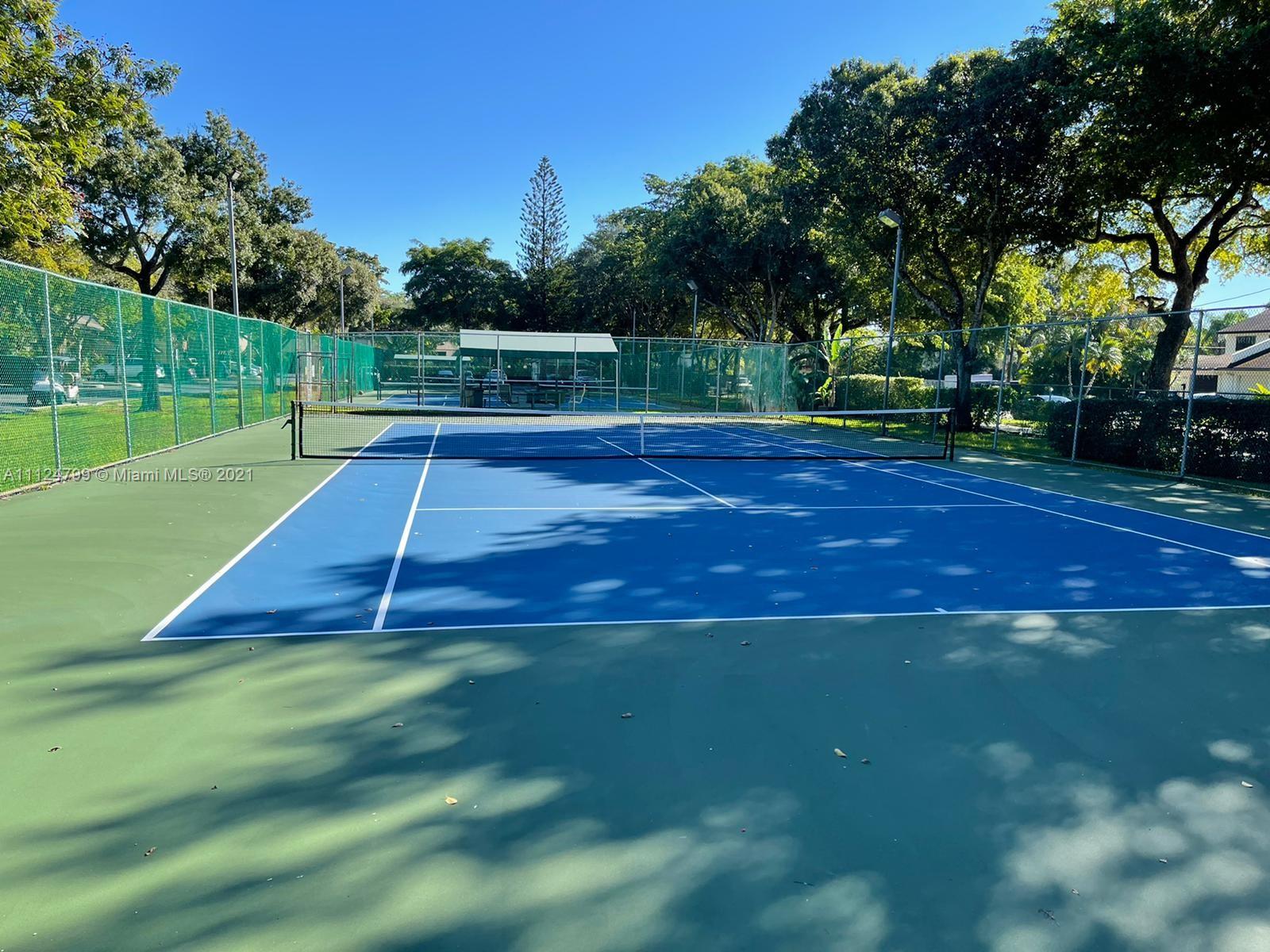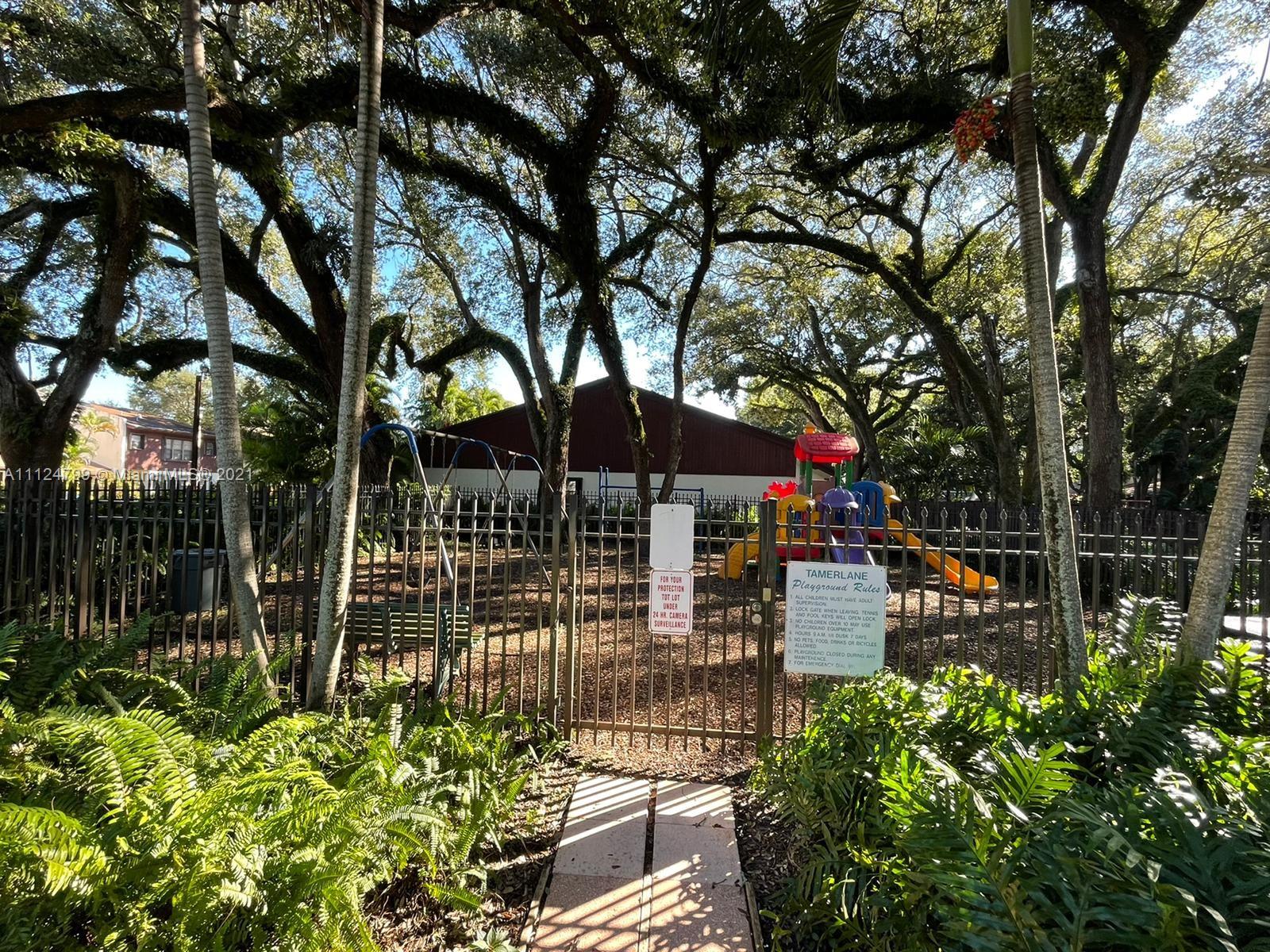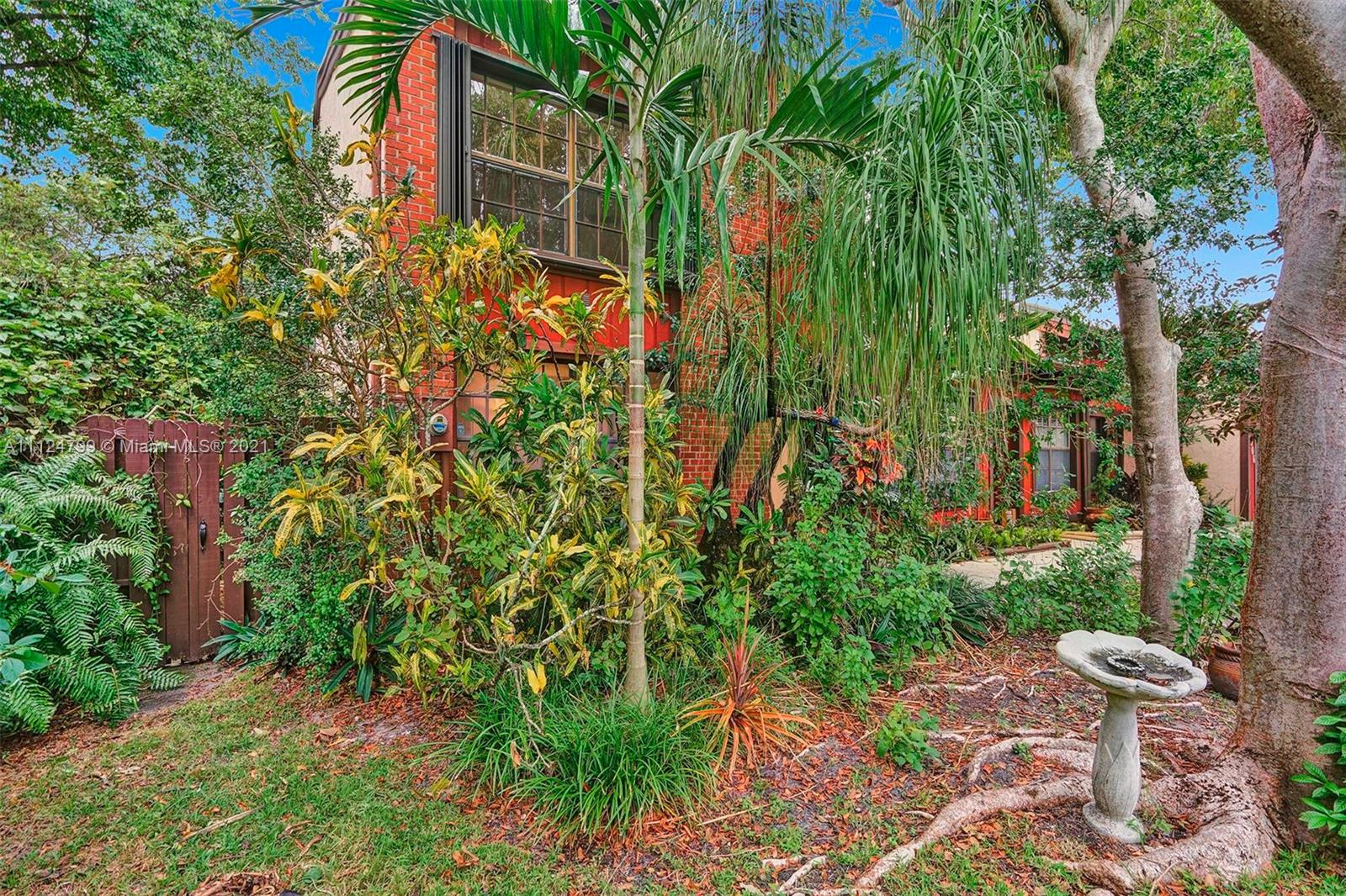 Spacious and bright 3/2 townhouse in a beautiful, leafy community across the street from TY Park in Hollywood. Quiet end unit with tall wood beam ceilings, great for entertaining and relaxing. Literally backs up to the association's private dog park, tennis court, pickle ball courts, basketball court, and steps to the swimming pool and playground. Walk to nearby houses of worship, restaurants and stores, and a short drive to Dania Pointe, Oakwood Plaza, Downtown Hollywood and Hollywood Beach. Exceptional landscaping and amenities in a well-maintained community with low monthly maintenance. Windows upstairs and downstairs look out to many big trees and shrubs. Perfect home for nature lovers, families, dog lovers and active lifestyles.