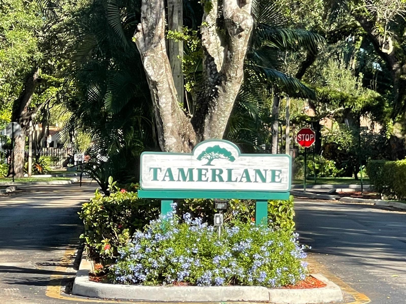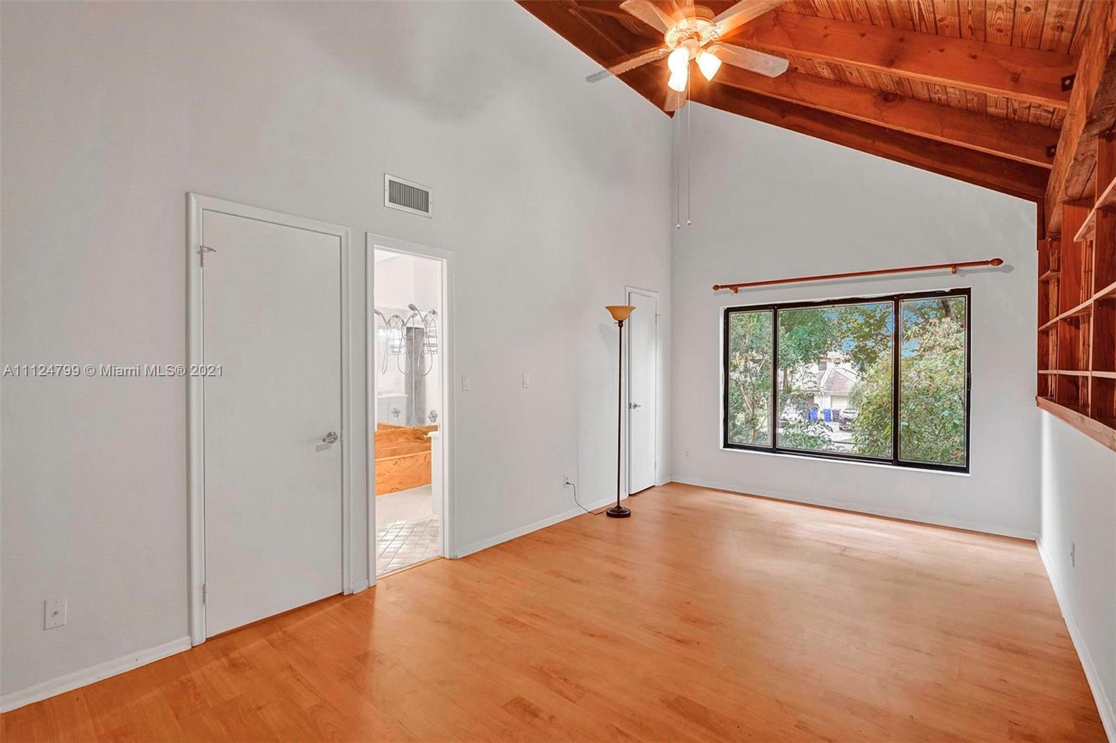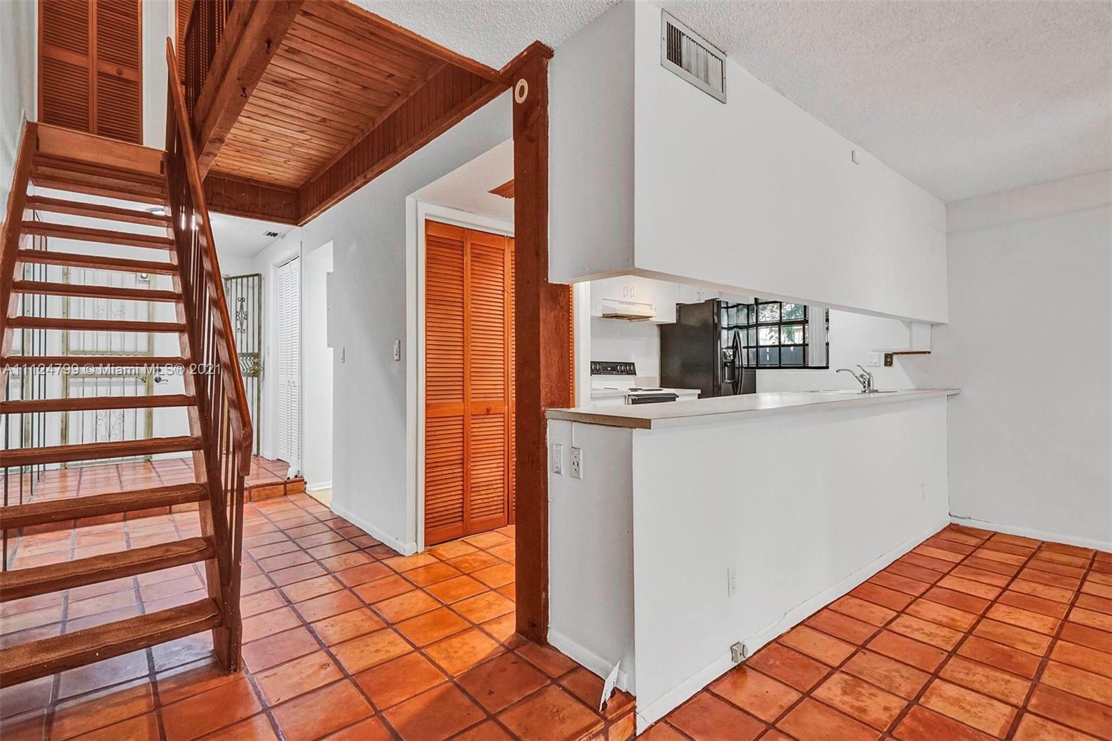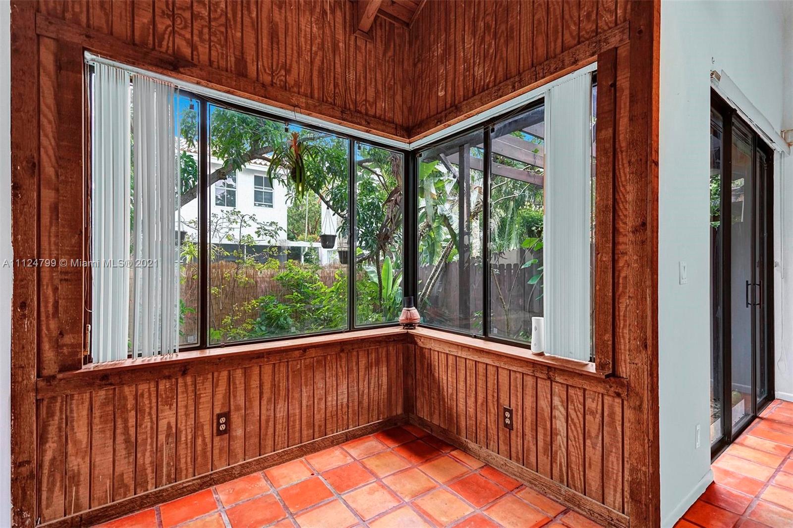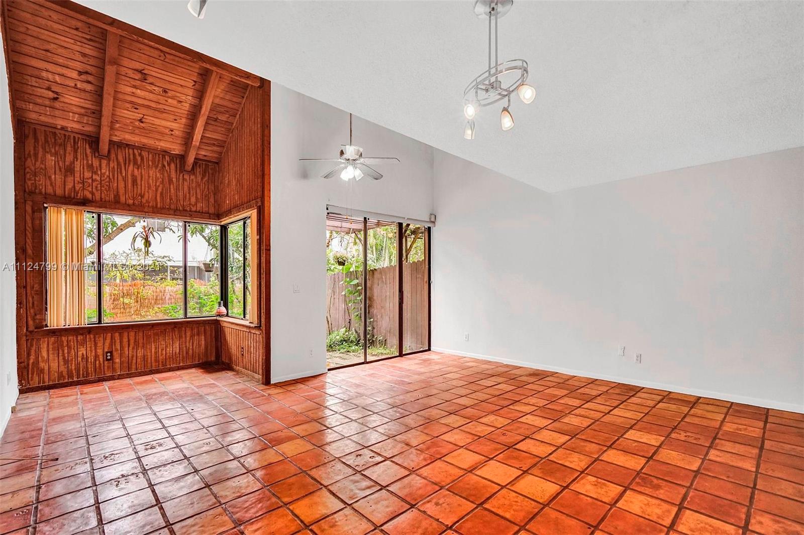 Spacious and bright 3/2 townhouse in a beautiful, leafy community across the street from TY Park in Hollywood. Quiet end unit with tall wood beam ceilings, great for entertaining and relaxing. Literally backs up to the association's private dog park, tennis court, pickle ball courts, basketball court, and steps to the swimming pool and playground. Walk to nearby houses of worship, restaurants and stores, and a short drive to Dania Pointe, Oakwood Plaza, Downtown Hollywood and Hollywood Beach. Exceptional landscaping and amenities in a well-maintained community with low monthly maintenance. Windows upstairs and downstairs look out to many big trees and shrubs. Perfect home for nature lovers, families, dog lovers and active lifestyles.