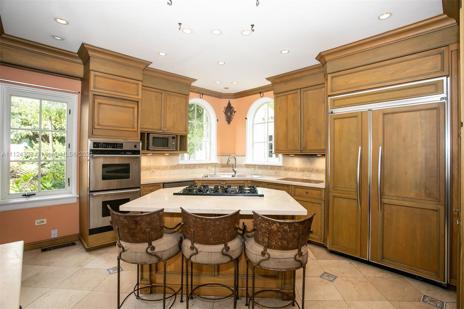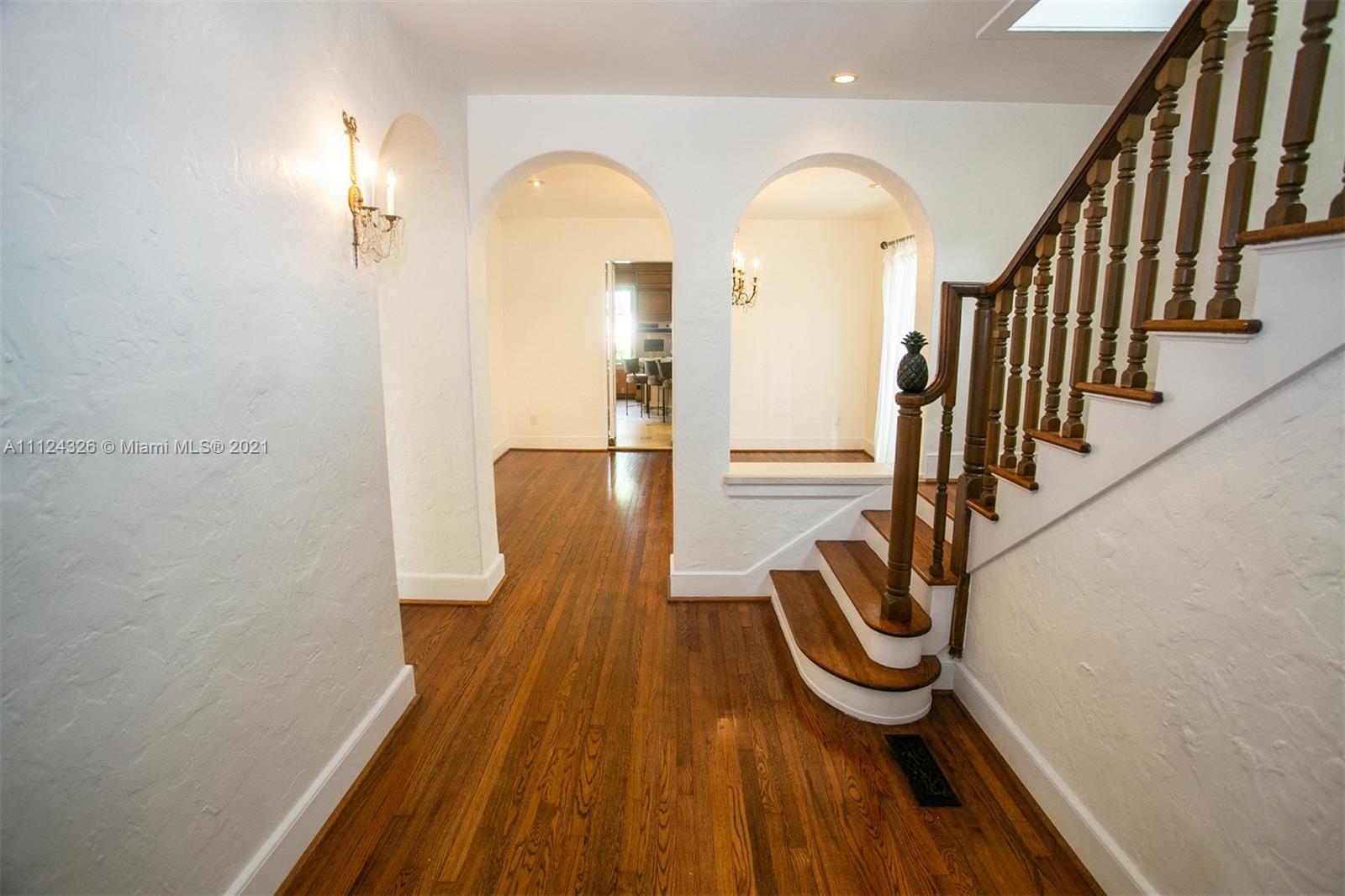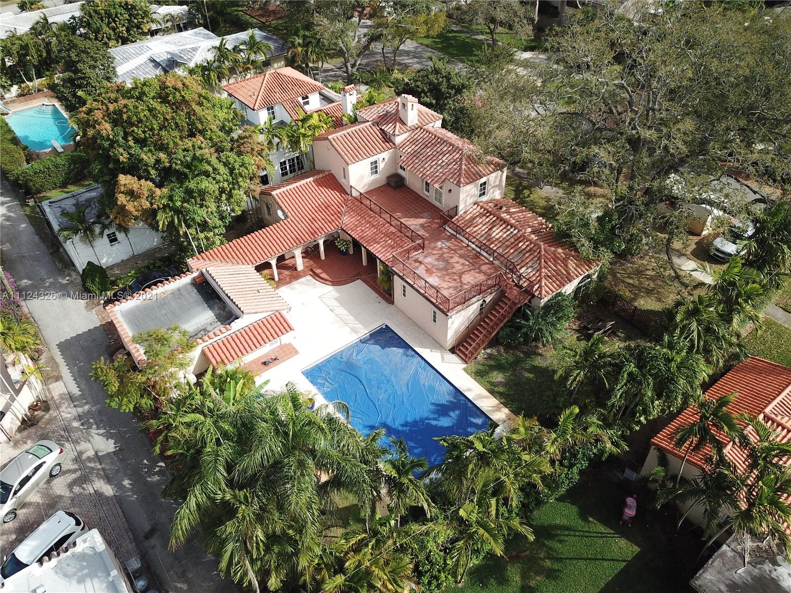 Astonishing Mediterranean home is a National Historic Landmark. 5 beds, 4 1/2 baths home nearly 4000sf on oversized 11.5K sf lot with garage. Fully renovated & modernized. Impact windows & doors. Spacious kitchen w/center island, granite counters, upscale steel appliances, dual oven & gas cooktop. Hardwood floors throughout. Spacious living room w/floor to ceiling windows & a fireplace. Formal dining w/elegant crystal chandelier. 2 Master bedrooms w/ his & hers closets. Master bath has upscale tile & open walk-in shower. Extra large heated pool, w/waterfalls & adjustable color lighting. Beautifully landscaped w/ greenery & historic oak tree, completely enclosed. Guest house w/ full bath & covered veranda. Walk to restaurants, banks, cafes, stores, 5 min to Miami Shores Country Club & Golf.