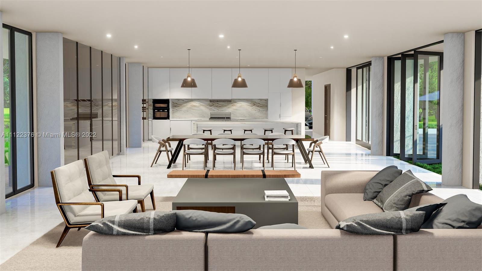 Unique and luxurious residence designed by award-winning architect is now under construction. Two-story house surrounded by lush landscaping, and water features. Situated close to the best schools in the heart of Pinecrest. Kitchen from Italkraft, Miele and Sub Zero appliances, Duravit and Hans Grohe fixtures, cabana bath, and exterior shower are some of the features.
