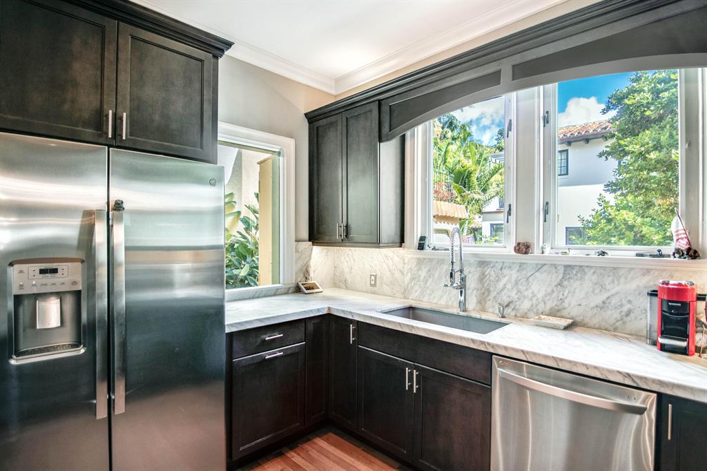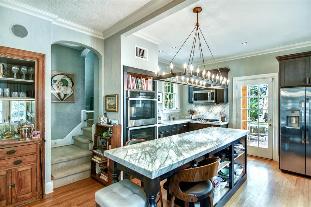 A feeling of sophistication and elegance abounds throughout this fabulous El Cid masterpiece. Located on the Lake block with Intracoastal views, this home has been cleverly updated to retain the charm and uniqueness of the roaring 20's while incorporating the best of modern components, far exceeding today's expectations. Spacious rooms with soaring ceilings, leaded glass windows with ornate hardware, a cast stone fireplace, a dual staircase, and museum quality hardwood with decorative floors all work harmoniously to make this home spectacular. The gourmet kitchen has been completely redesigned with custom cabinets, custom lighting, beautiful marble countertops, and the finest appliances all co-existing with the original architectural details from the Mizner era, leaving