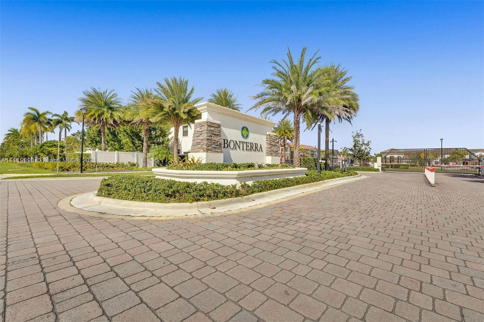 This beautiful & spacious home at Bonterra features a fantastic layout, a spacious kitchen with granite counter tops, wooden cabinetry & stainless steel appliances. Bright & airy, neutral tile on first floor and carpet upstairs, fenced backyard and hurricane shutters. Bonterra offers amazing amenities including clubhouse, pool, gym, game room & kids play room. Guard gated community with plenty of visitor parking spaces. Excellent location with easy access to I75, Turnpike & Palmetto Expressway.