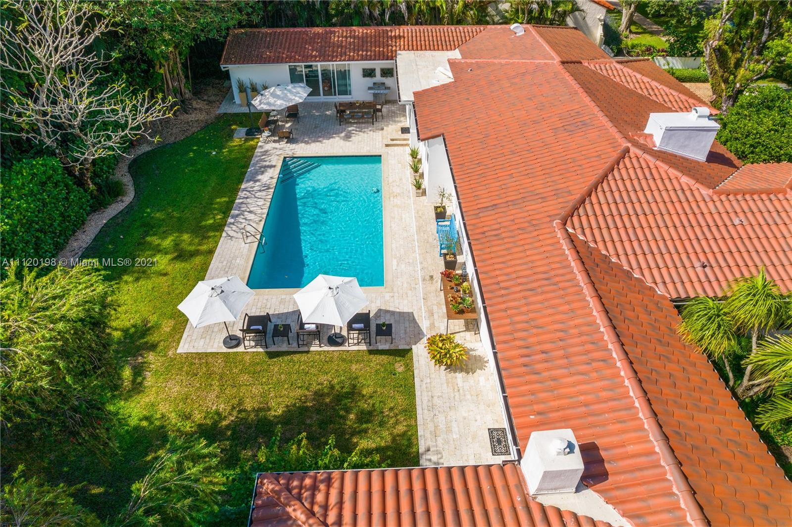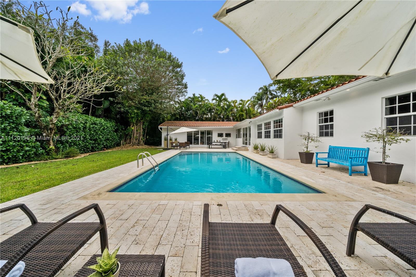 This beautiful 1940’s home sits on an 18,750 SqFt corner lot in one of Coral Gables most desirable neighborhoods just blocks away from Granada Golf Course, Salvadore Park Tennis Center, Biltmore Hotel & Golf Course and Coral Gables historic landmarks. Home features 3 bedrooms and 4.5 bathrooms in the main house, laundry room that can be converted back in a 4th bedroom (it has closet and full bath), formal dining room, living room, family room, breakfast area, library and a Den perfect for an office space with beautiful views of the garden & pool area. Large master bedroom with his & hers spacious walk-in closets. In addition a large cabana w/ full bath & closet. Two car garage, new roof (2021), high impact windows, original wood flooring. *3D Virtual Tour available*.