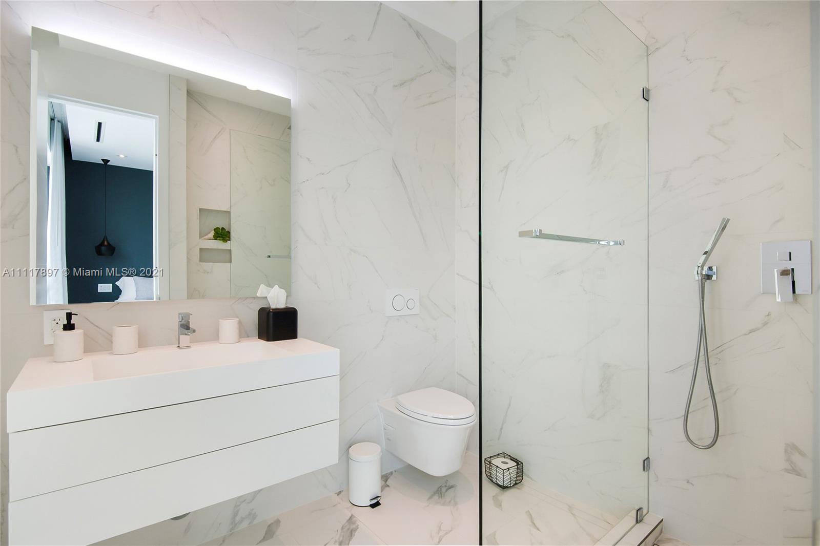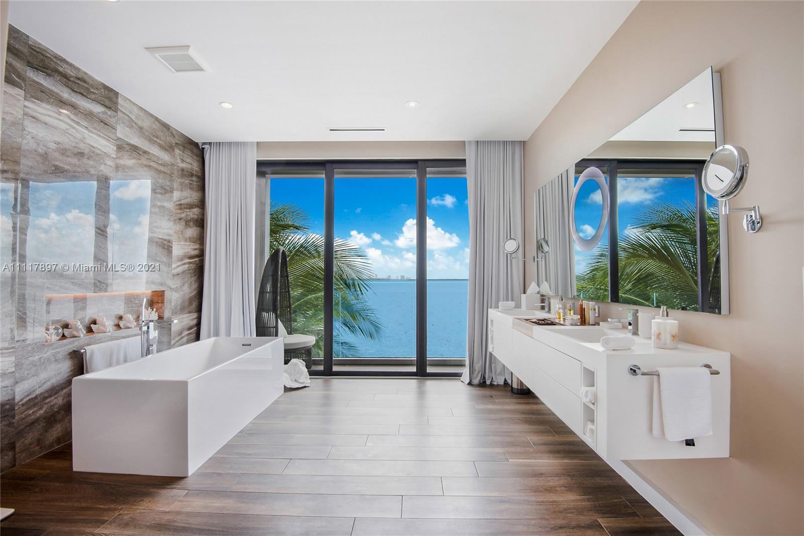 60Ft of wide open bay & downtown Miami skyline views. This modern masterpiece was built in 2019. Top of the line finishes, appliances and equipments. Spectacular living area, oversize outdoor patio and master bedroom with large his and hers closet. Pool is heated. No rental restrictions.