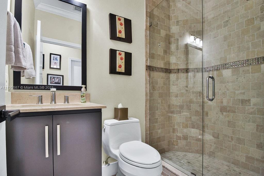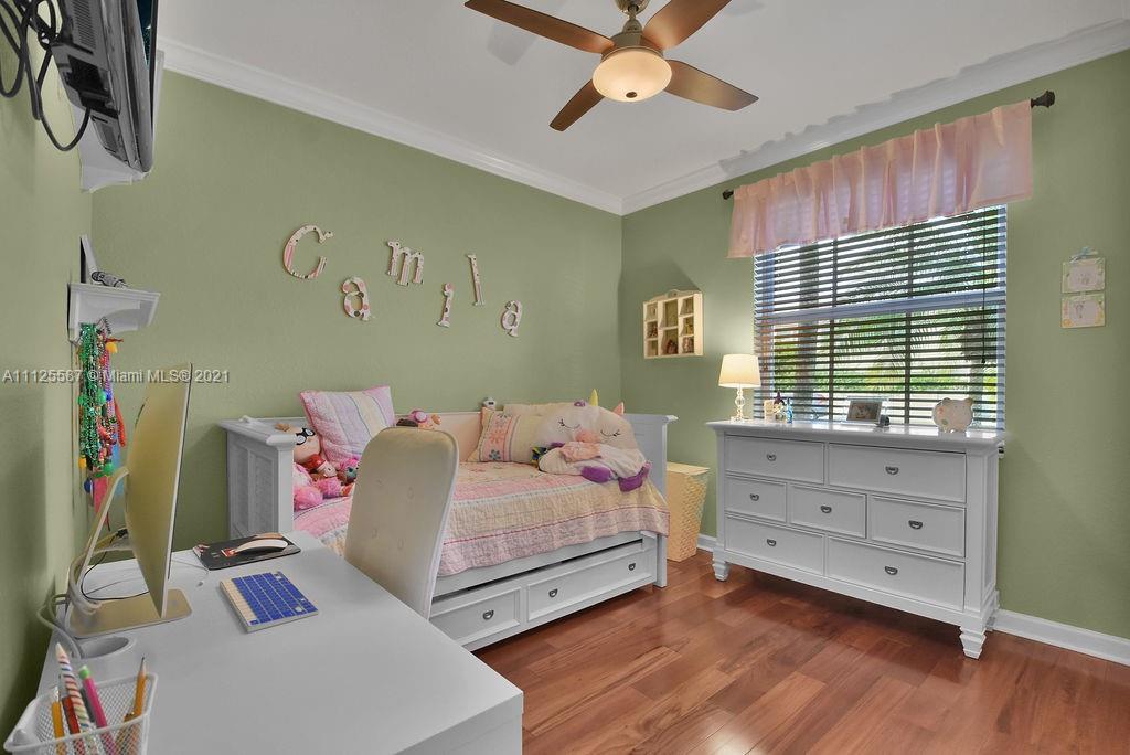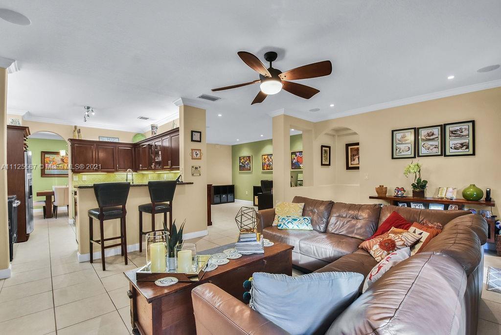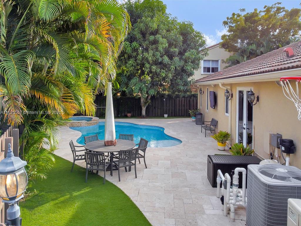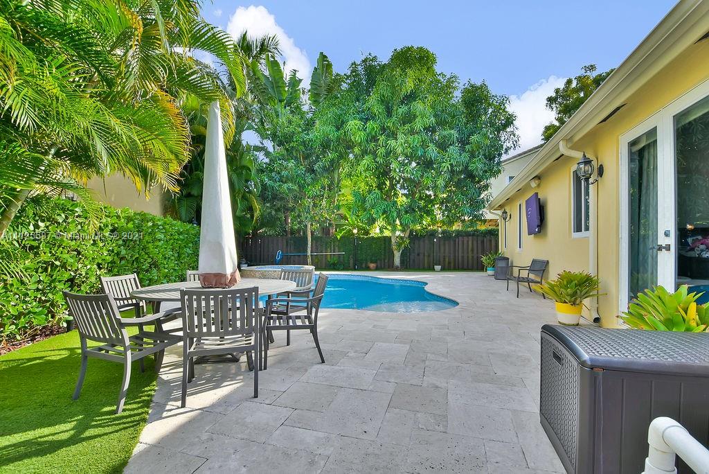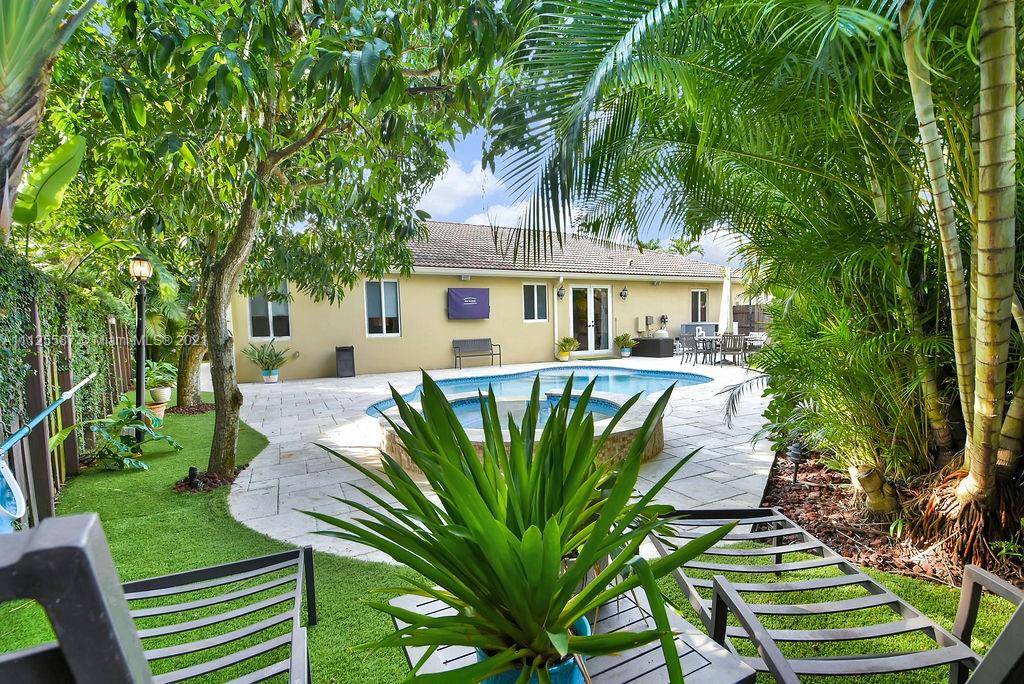 Beautifully updated and impeccably maintained 1 story POOL home 4/3 in exclusive Goldvue Estates. Property features include spacious living areas and bedrooms, IMPACT WINDOWS & DOORS, SALT WATER HEATED POOL & SPA, TRAVERTINE PAVERS, ARTIFICIAL TURF & LARGE YARD. Updated Kitchen with granite, and newer stainless steel appliances. All bathrooms tastefully remodeled. Tile & hardwood flooring in bedrooms. Crown molding. Speaker system and house fully wired with ethernet. Too many upgrades to list. Community features include 24/7 guard at gate, pool & kids playground. Low hoa of $260 a month!