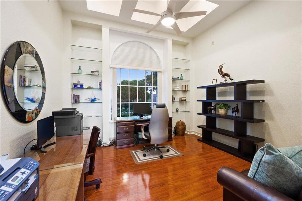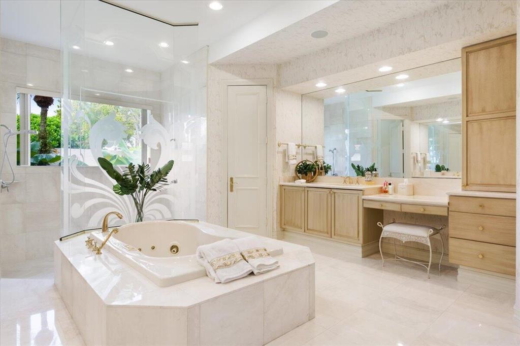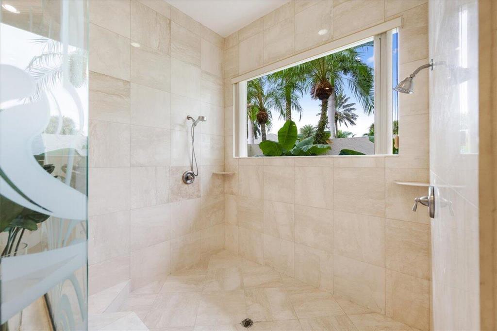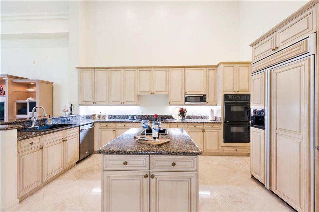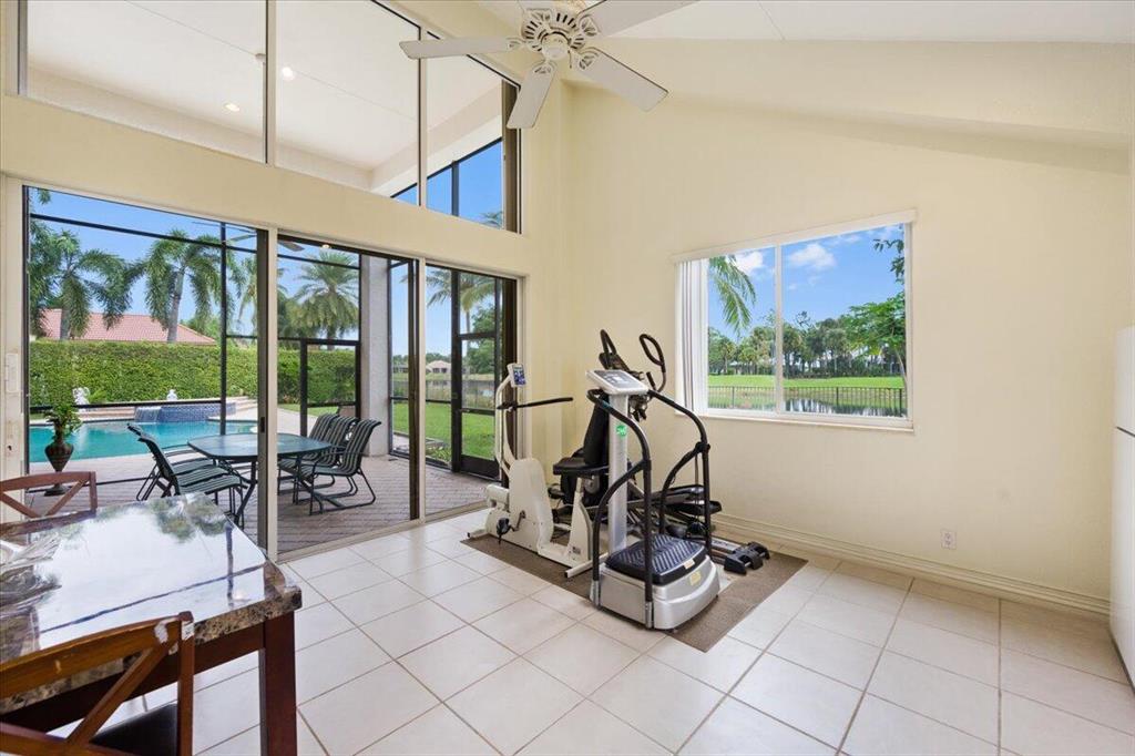 Prime location in beautiful gated community of Breakers West in West Palm Beach! Located on premier cul-de-sac street with stunning water & golf views along the Breakers Rees Jones 11th green. Elegant circular driveway leads to this spacious home with almost 4,800 AC Living Area and 4 BR, Office, 4.5 BA and full 3 car Garage with side entry. New tile roof installed 2016. Impressive Living Room with floor-to-ceiling windows overlooking pool, 16 ft ceilings & marble fireplace. Marble floors in main living areas & wood floors in bedrooms. Lg center island kitchen has 2 sinks, double ovens, granite countertops and pantry closet. An additional catering kitchen for entertaining was added with separate refrig, oven & sink. This flexible space could also be used as an art studio or home gym.