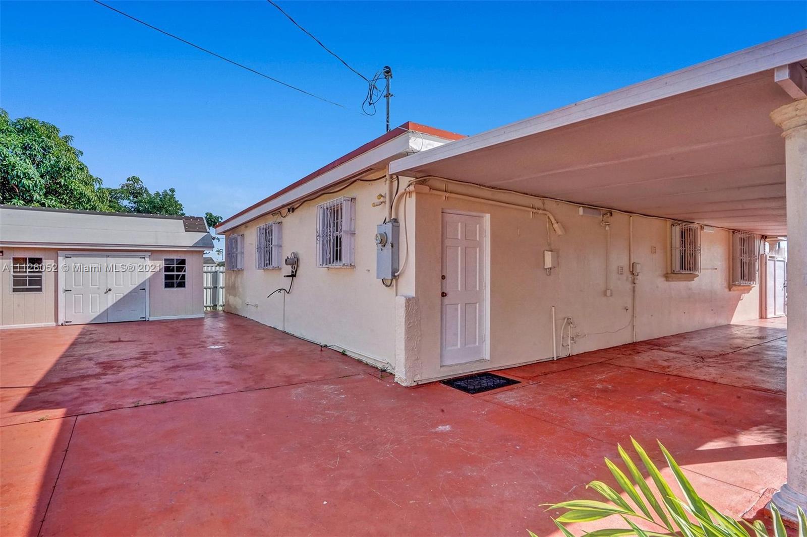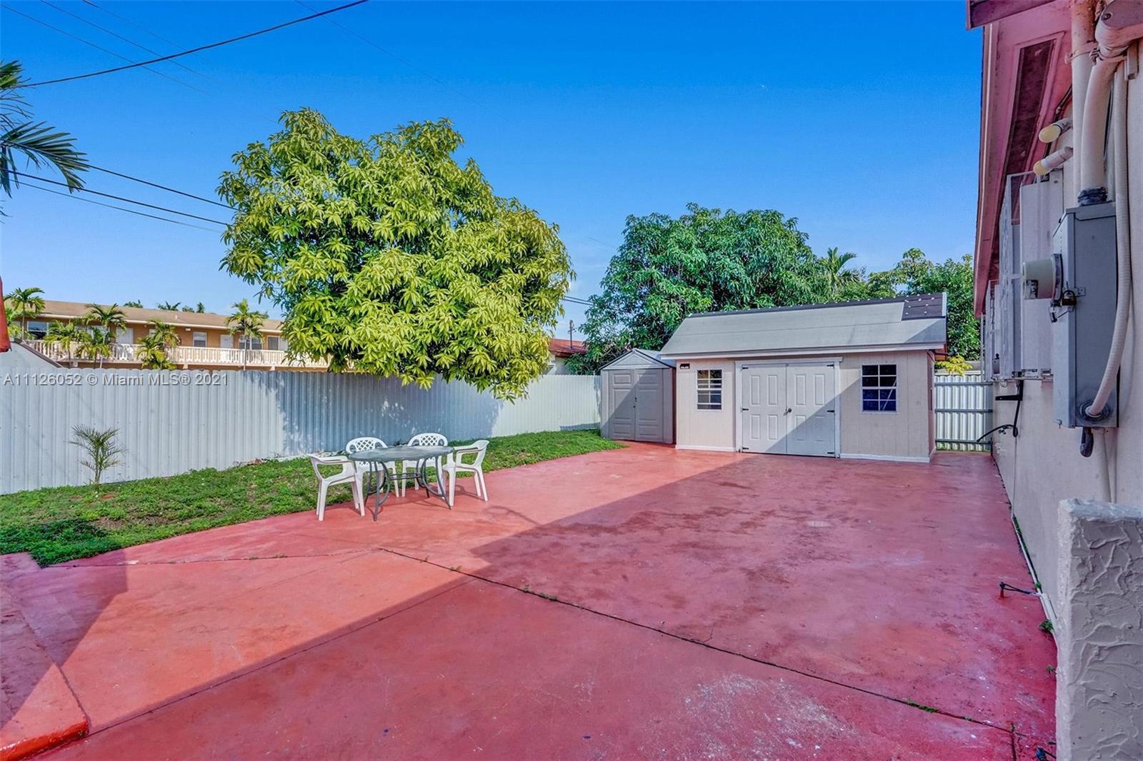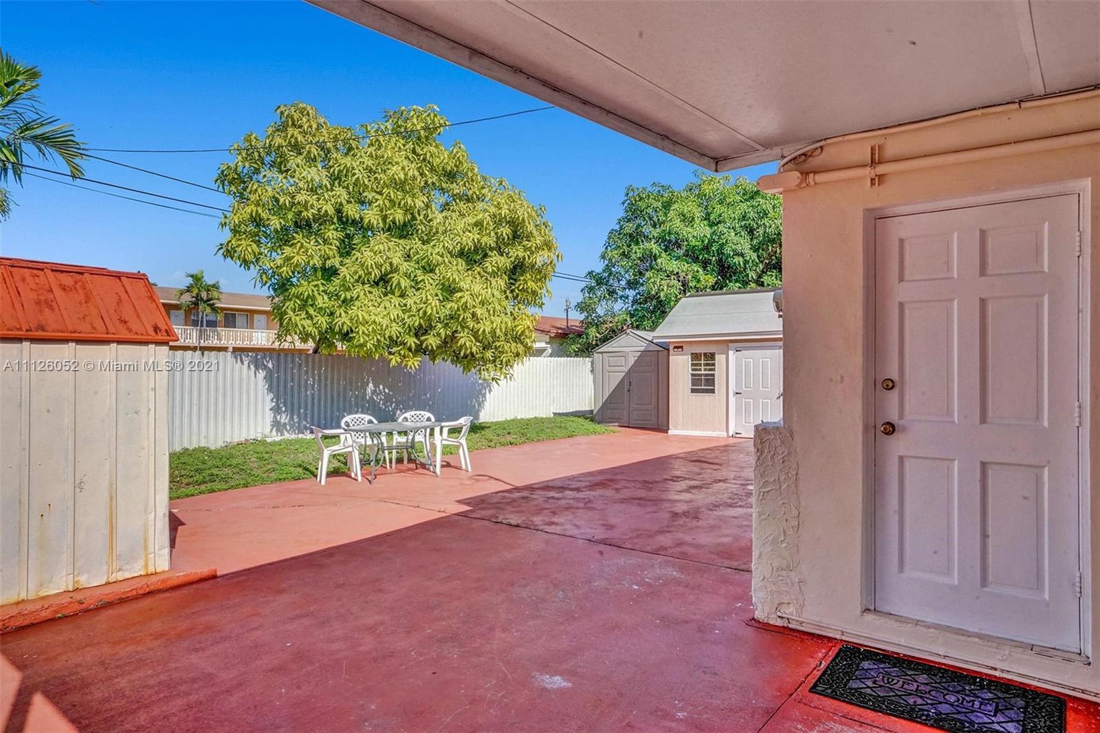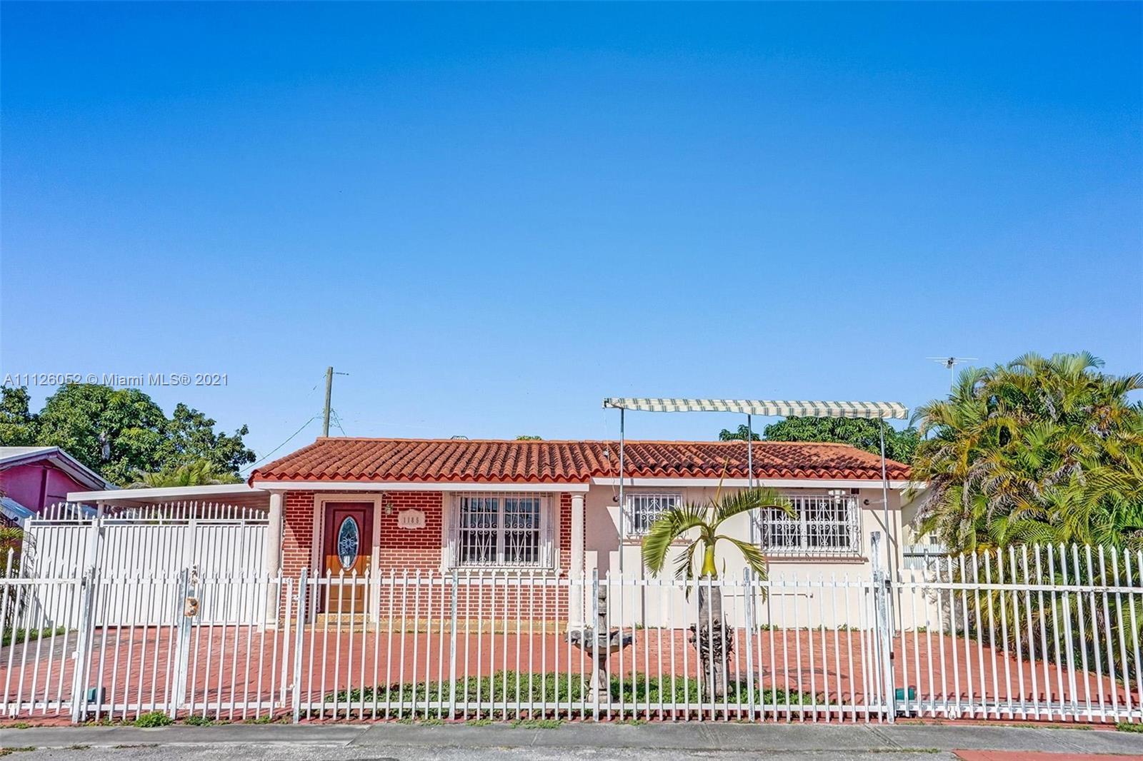 Upgraded, Spacious, Full-featured 4/2 Single family residence in desirable Hialeah. Fully fenced with 6ft galvanized aluminum fencing, dual remote control gates, concrete stamped driveway, car porch 3 spaces, huge backyard with 3 sheds for storage, backyard has concrete floor great for hosting, updated tile roof and exterior features like columns, wall texture/paint, window frames and facia. Upgraded wooden cabinets and granite countertops in the kitchen. matching modern appliances. solar panel, accordion hurricane shutters. Interior has been upgraded with knockdown texture in walls and ceiling. freshly painted. Beautifully tiled flooring. Upgraded master bathroom with new wall tiles, shower, vanity, and toilet. Oversized Florida room! Impact rated windows/doors. Proof of Funds w/ contract