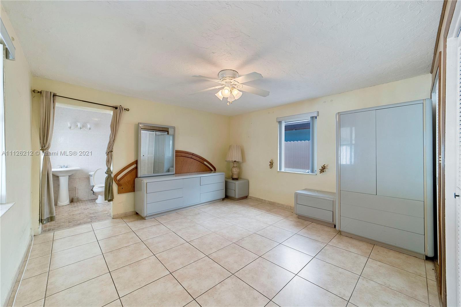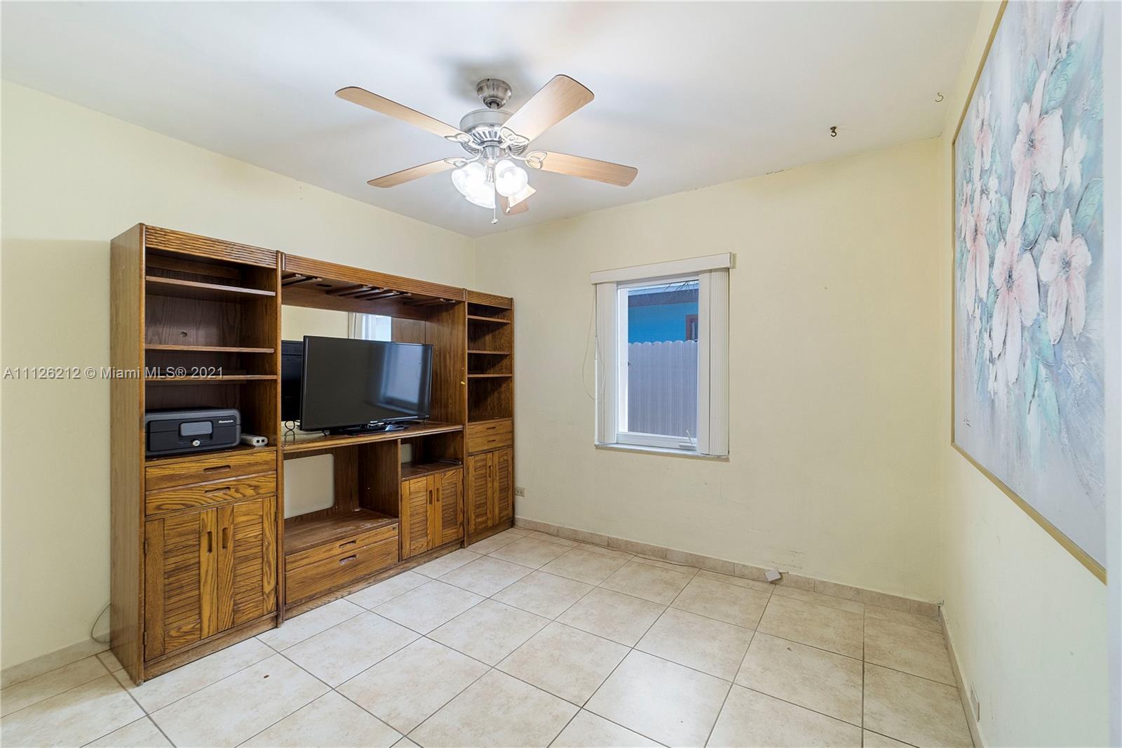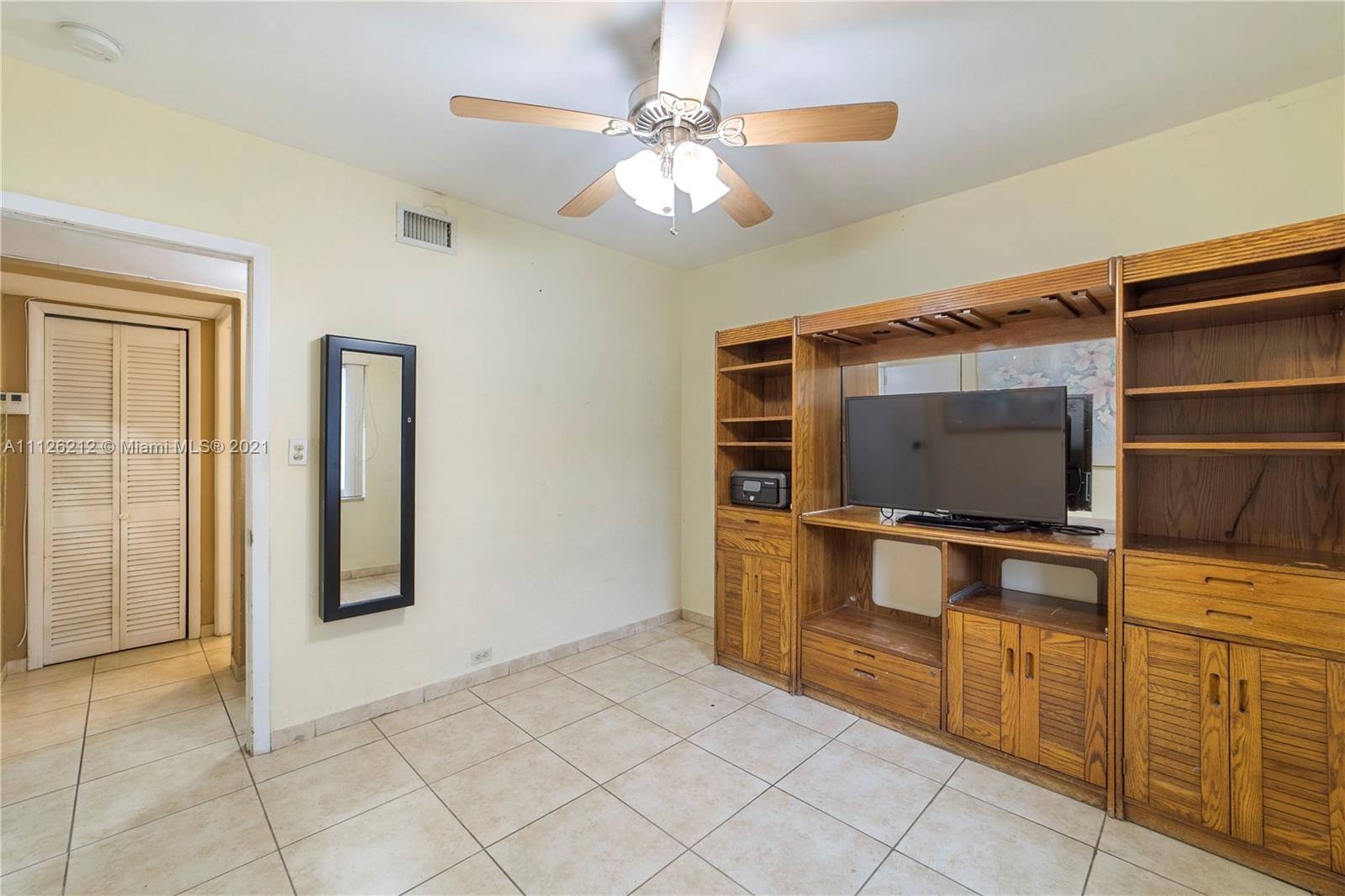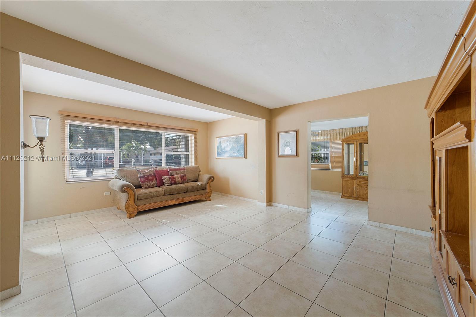 Spacious single-family home centrally located in the east of Hialeah! Features include tile floors, open front porch, storage room with exterior access, aluminum terrace in the backyard, washer/dryer are about a year old, accordian shutters throughout the property, handicap accessible master bathroom, aluminum fence around the backyard, plenty of parking, large backyard with avocado tree, entrance on both sides of the property, spacious family room and/or dinning room. Plenty of windows throughout the home provide natural lightning. Conveniently located down the street from an elementary school and close to grocery stores, restaurants and Miami International Airport.